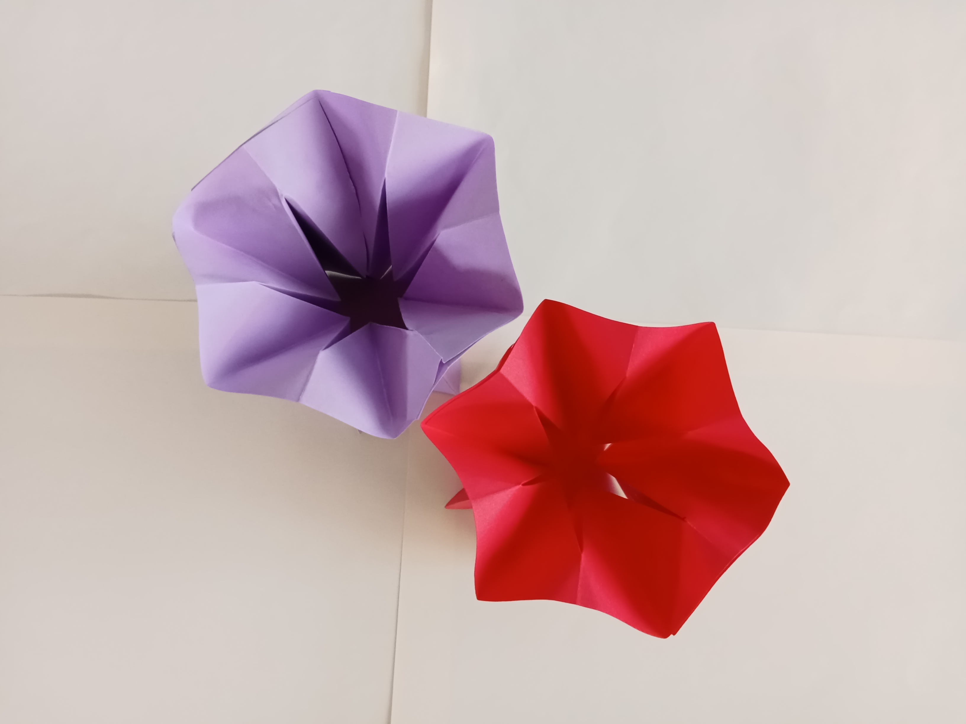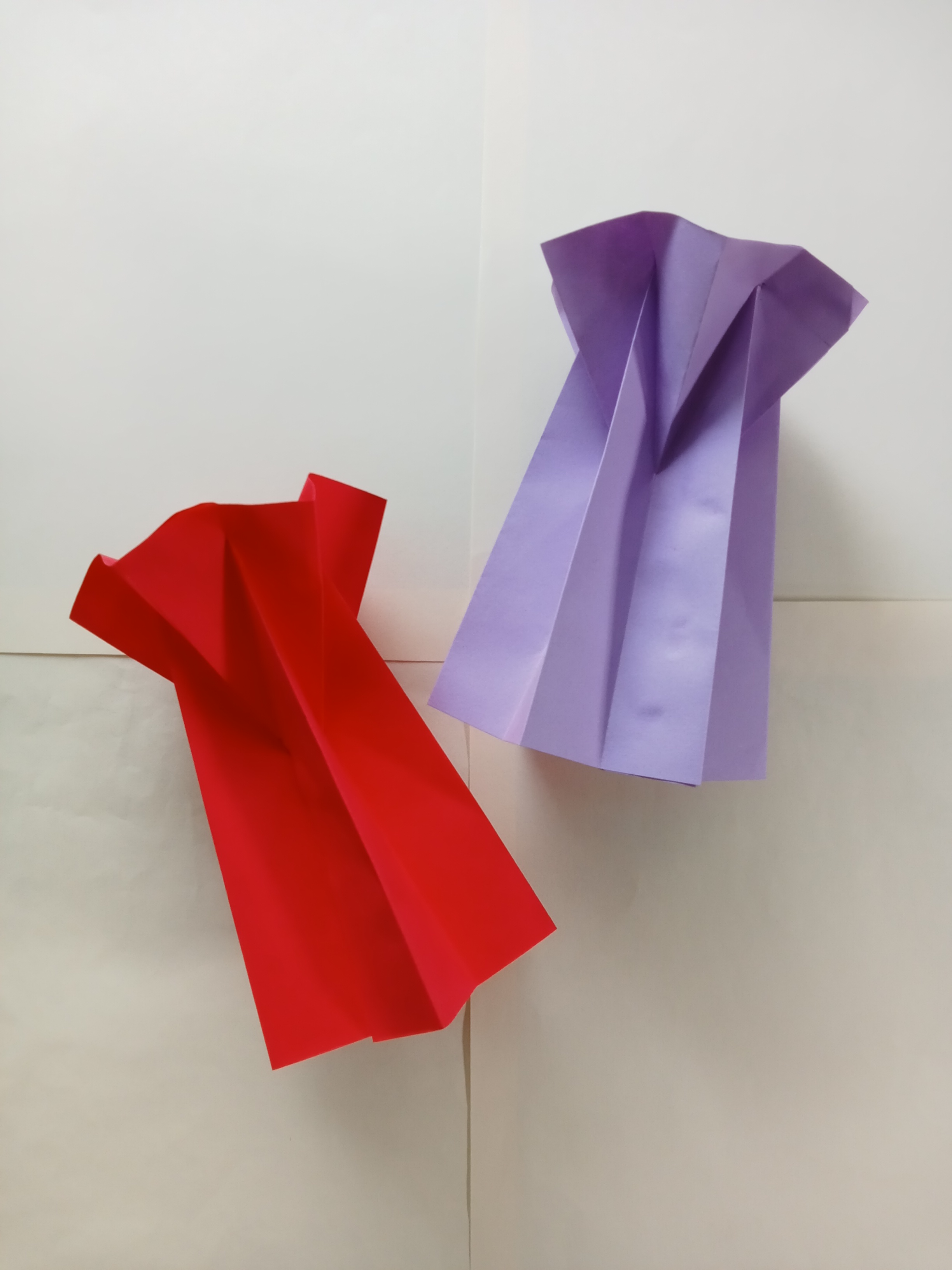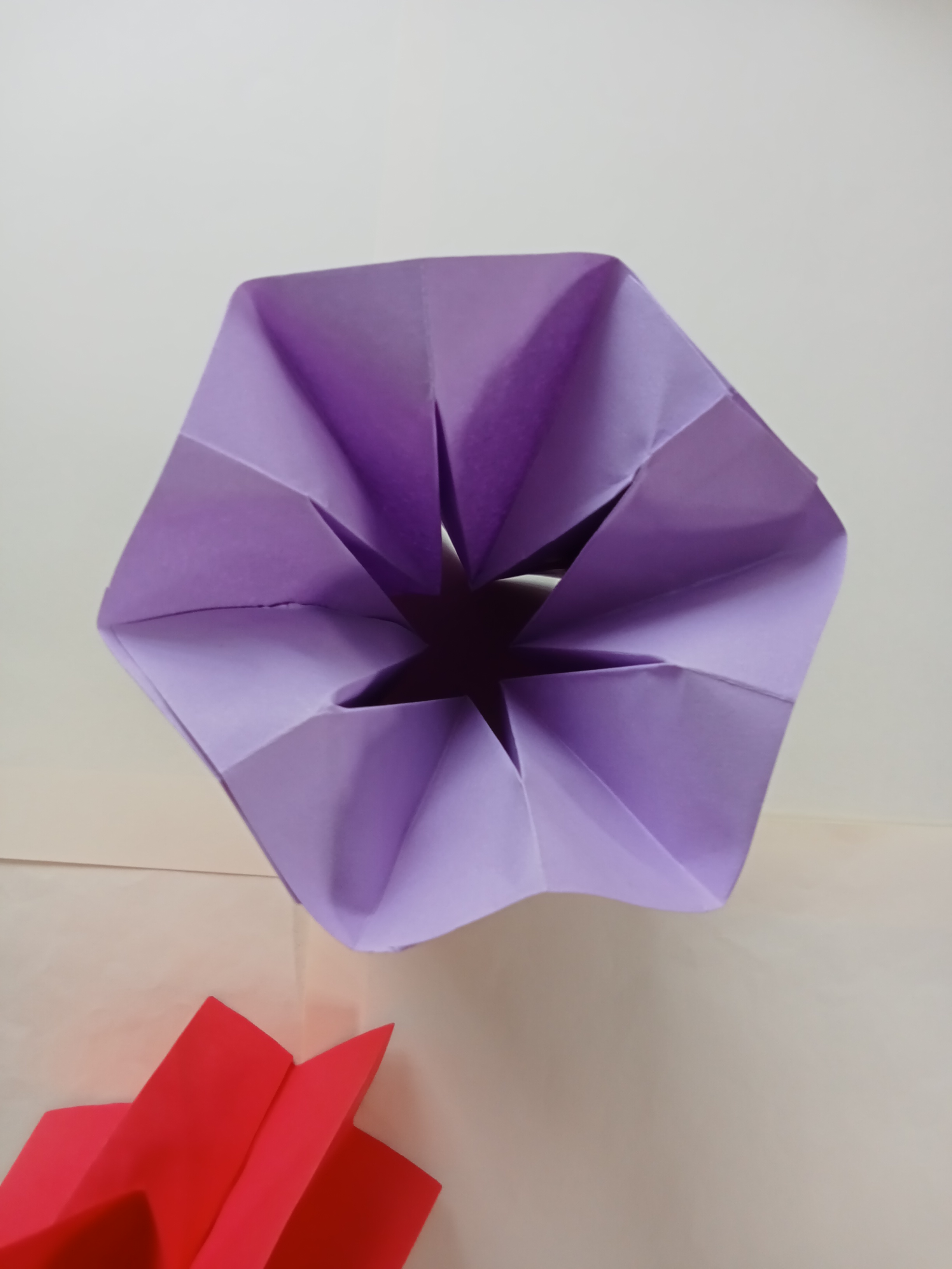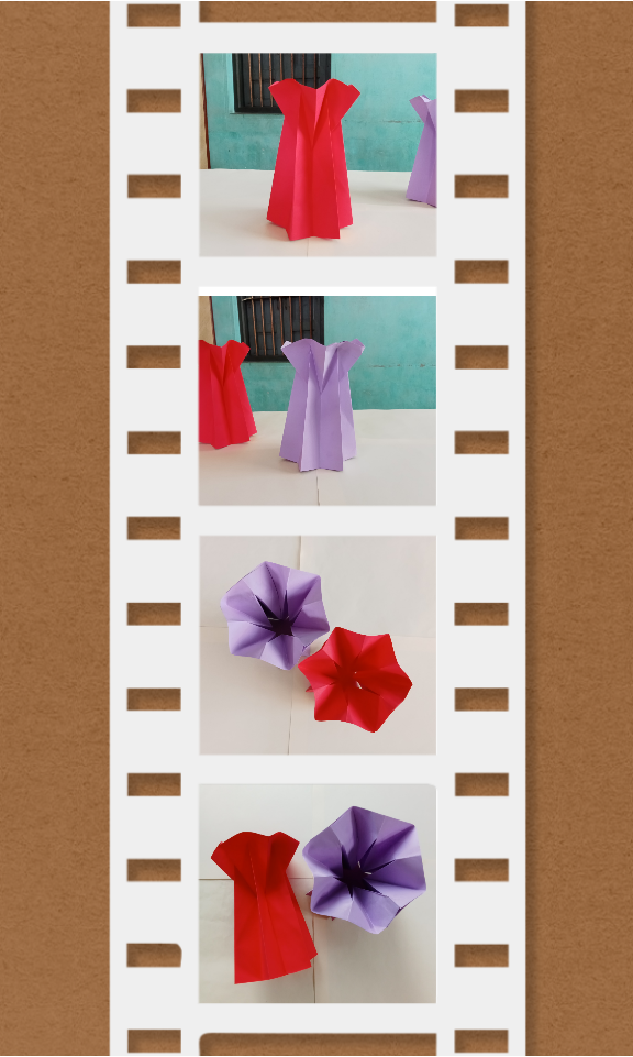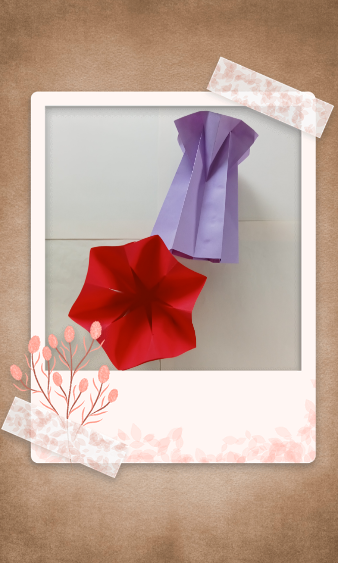 Make another one and attach the two sides. Continue gluing the remaining two sides to make a vase shape. Another vase is made with red paper.