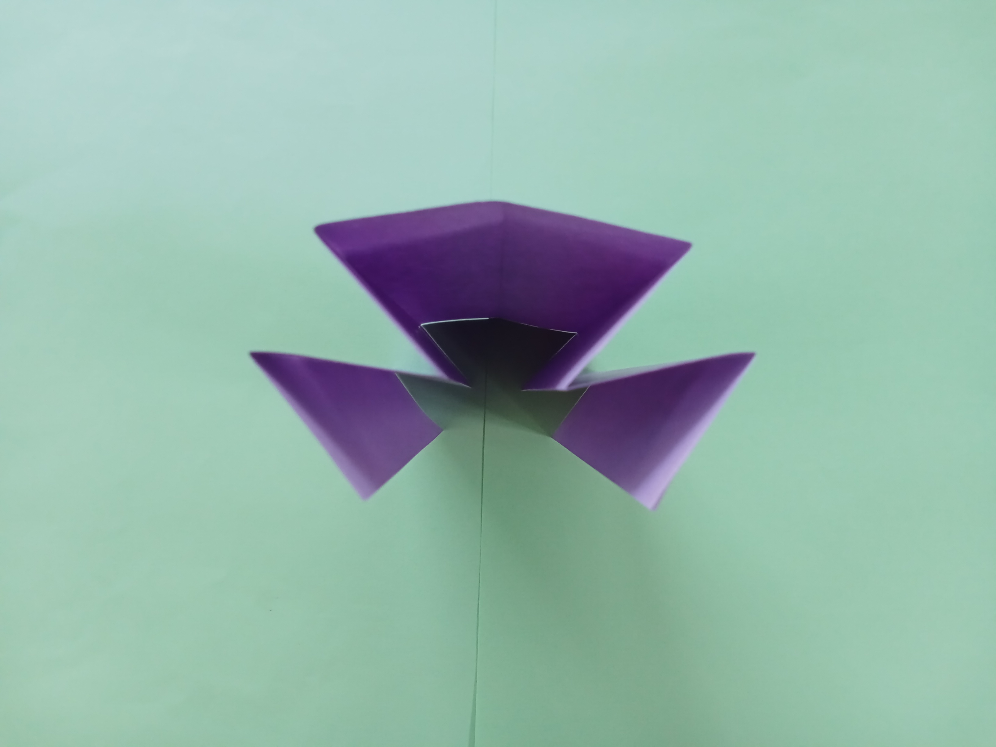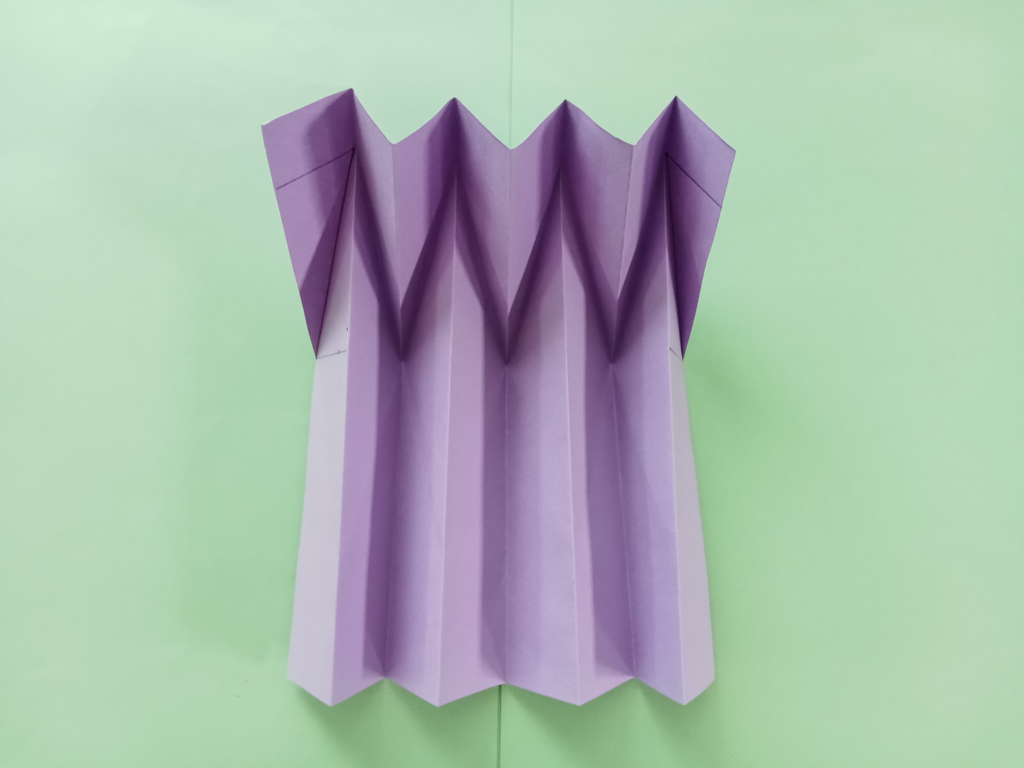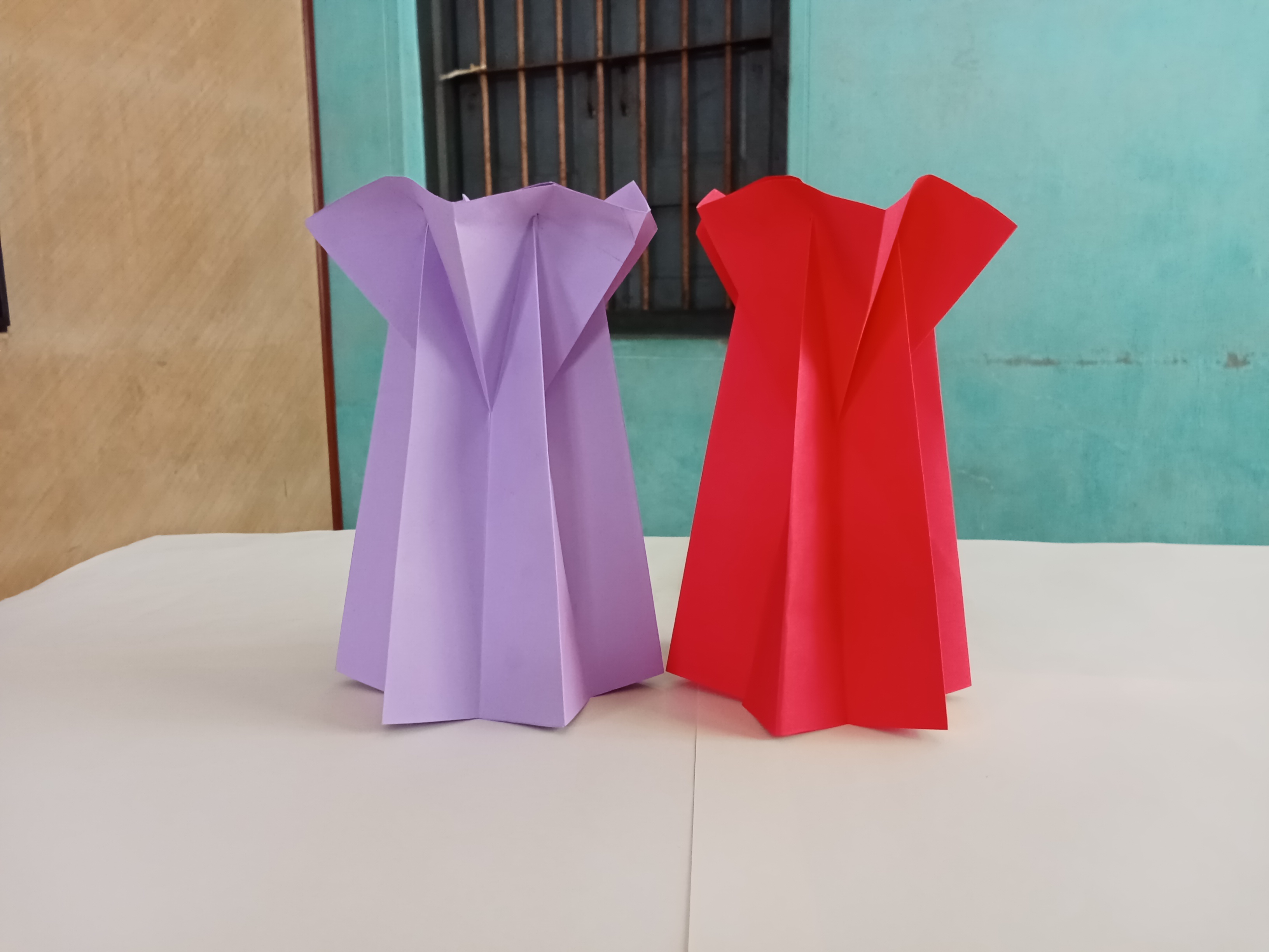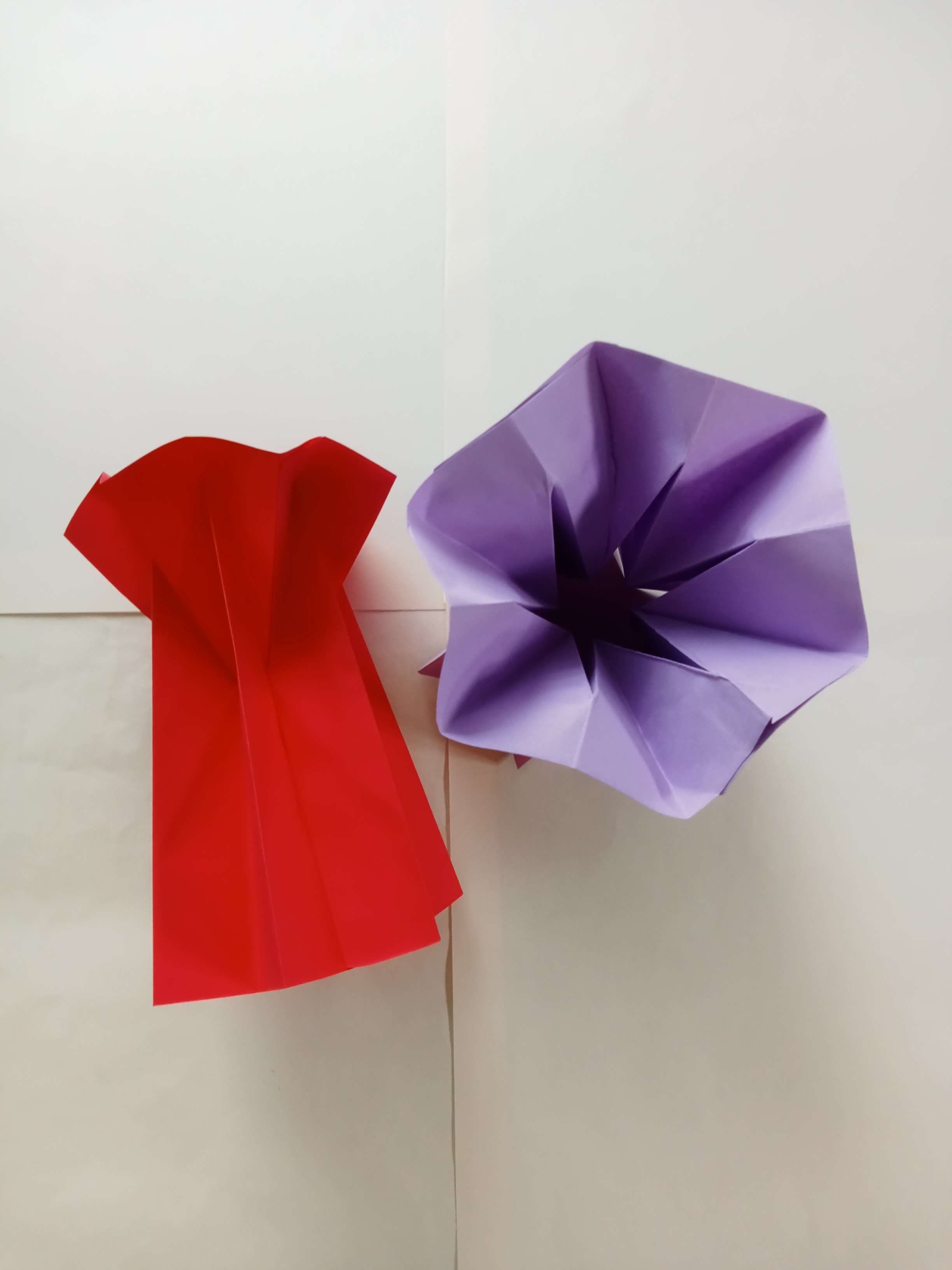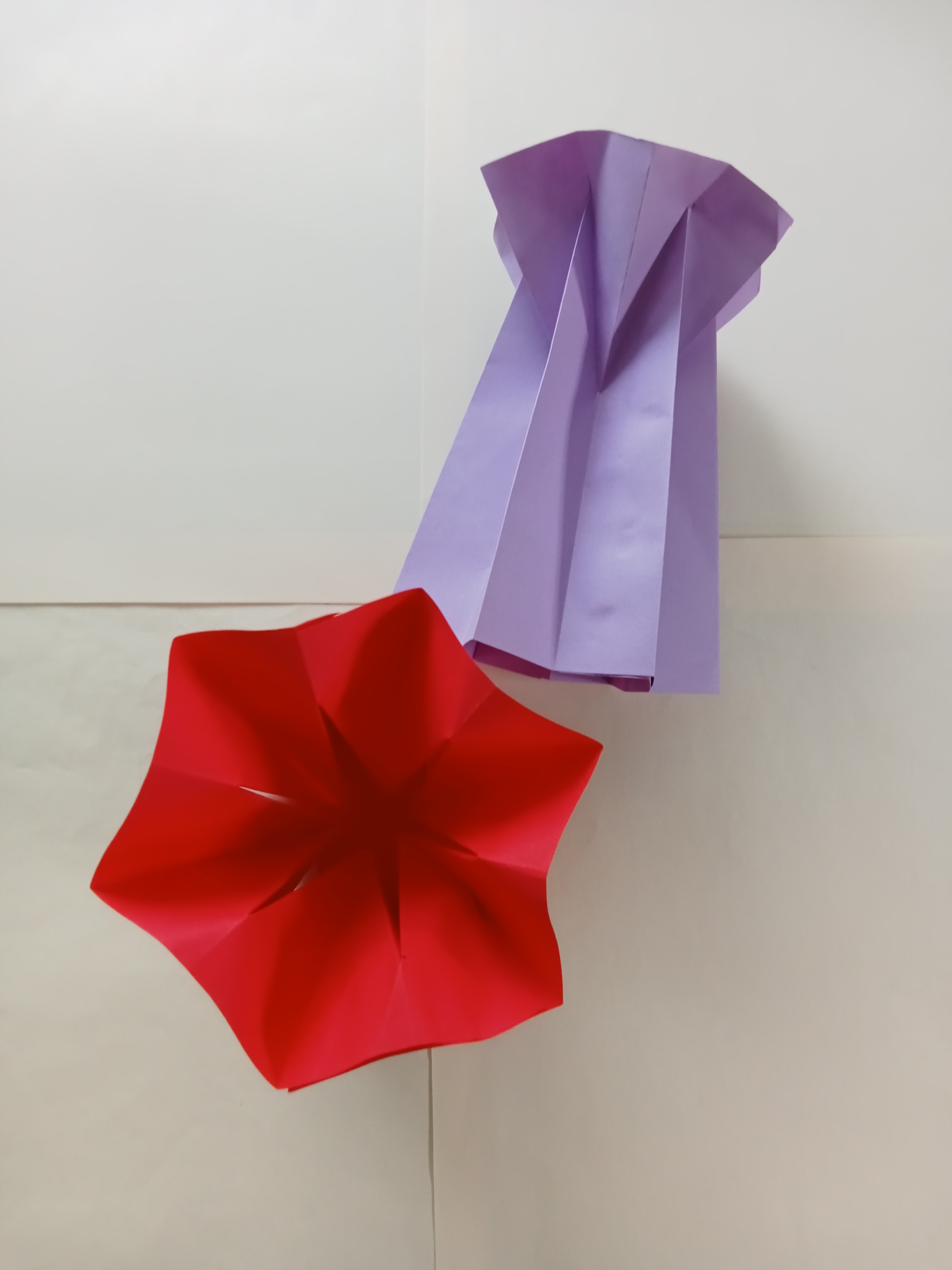 Make another one and attach the two sides. Continue gluing the remaining two sides to make a vase shape. Another vase is made with red paper.