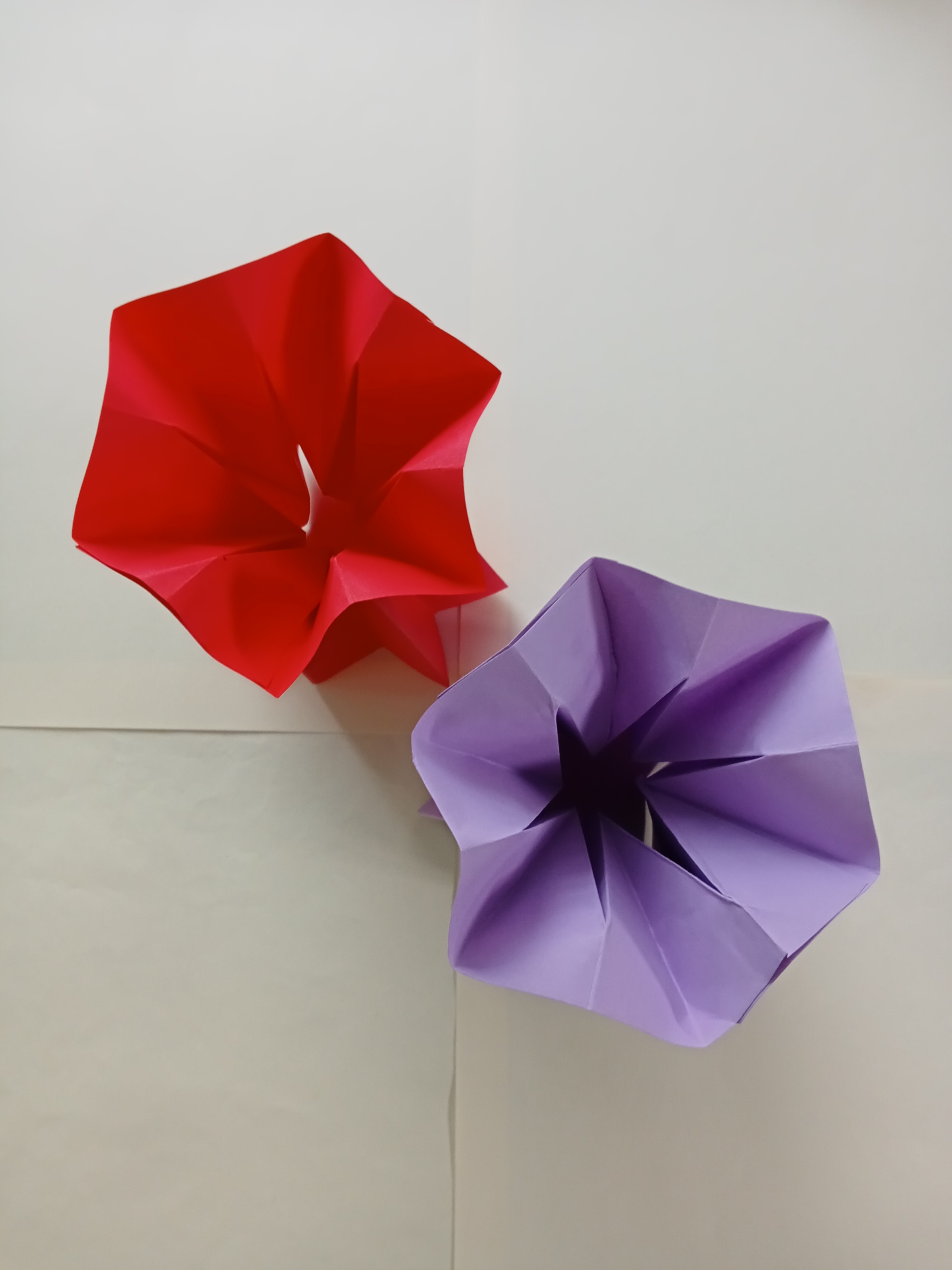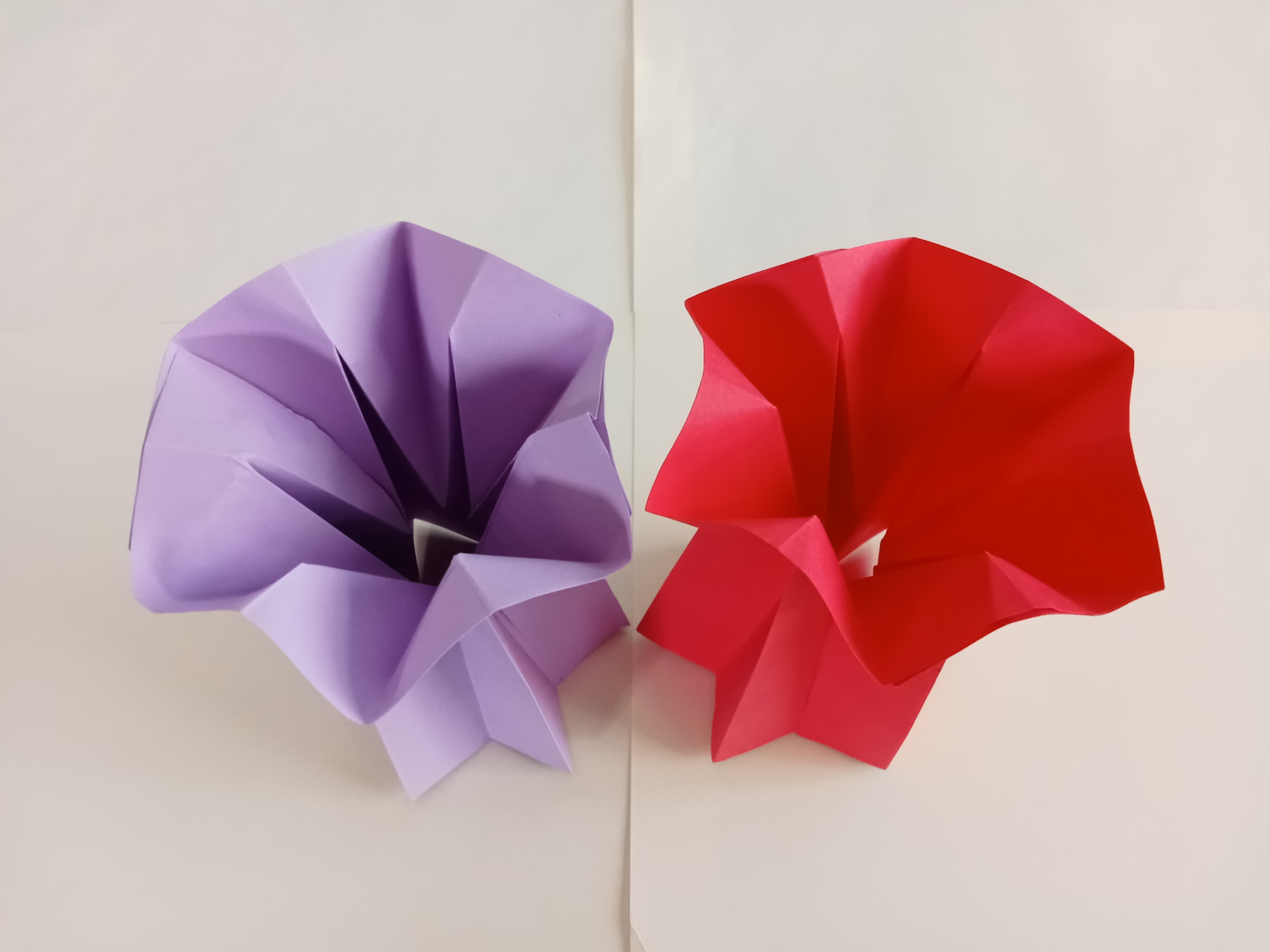 Today I make two beautiful paper vases. Each one is made with two pieces of paper of the same size. I think the vase looks like a flower. I make them with different colors. Write with texts and you can see with pictures on how to make it step by step.