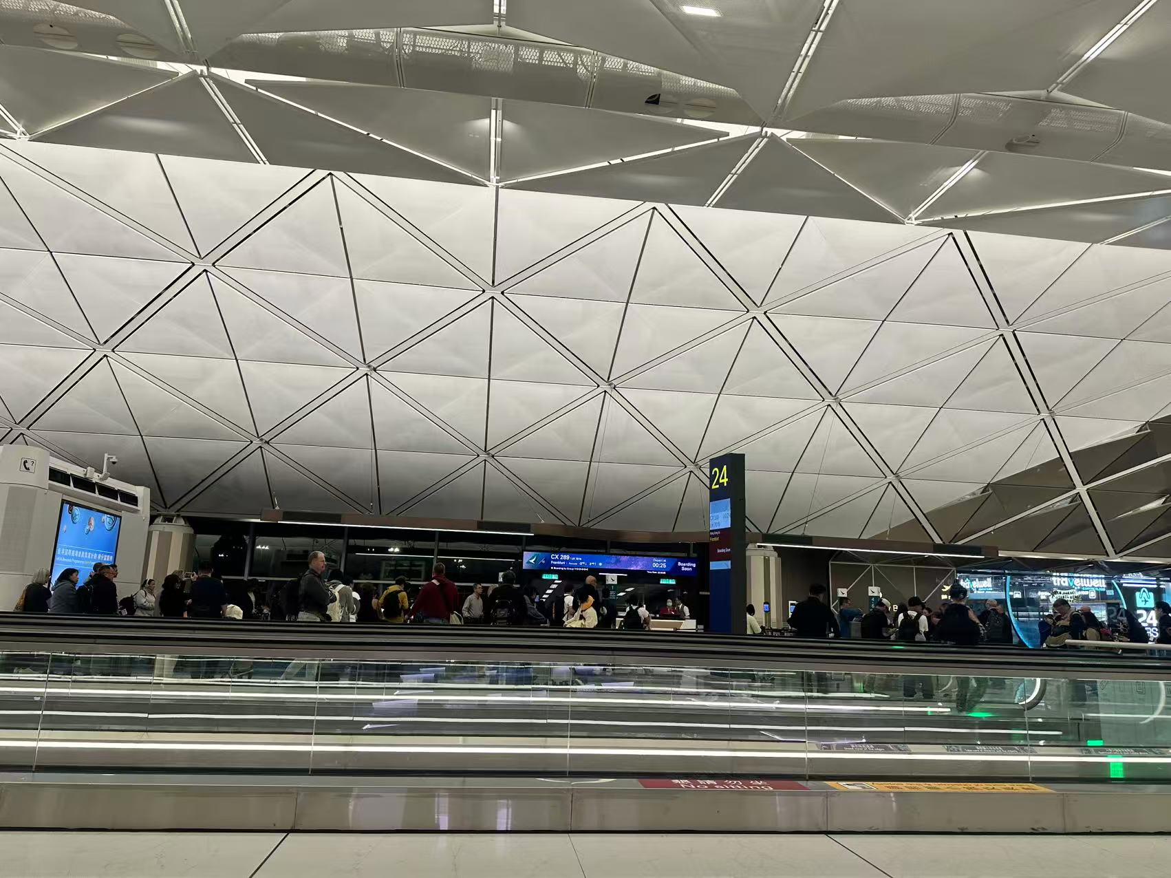 這個lounge 的東西也不錯, 吃了些沙律, pasta, 喝了杯可樂, 差不多了, 不想吃太多喝太多, 在飛機上上廁所嘛. 等到晚上12點多, 大家齊齊登機, 經過十三個半小時之後, 總算到德國法蘭克福機場. 這次入境好麻煩, 要先去自助那邊錄取指紋信息, 再排隊過海關.