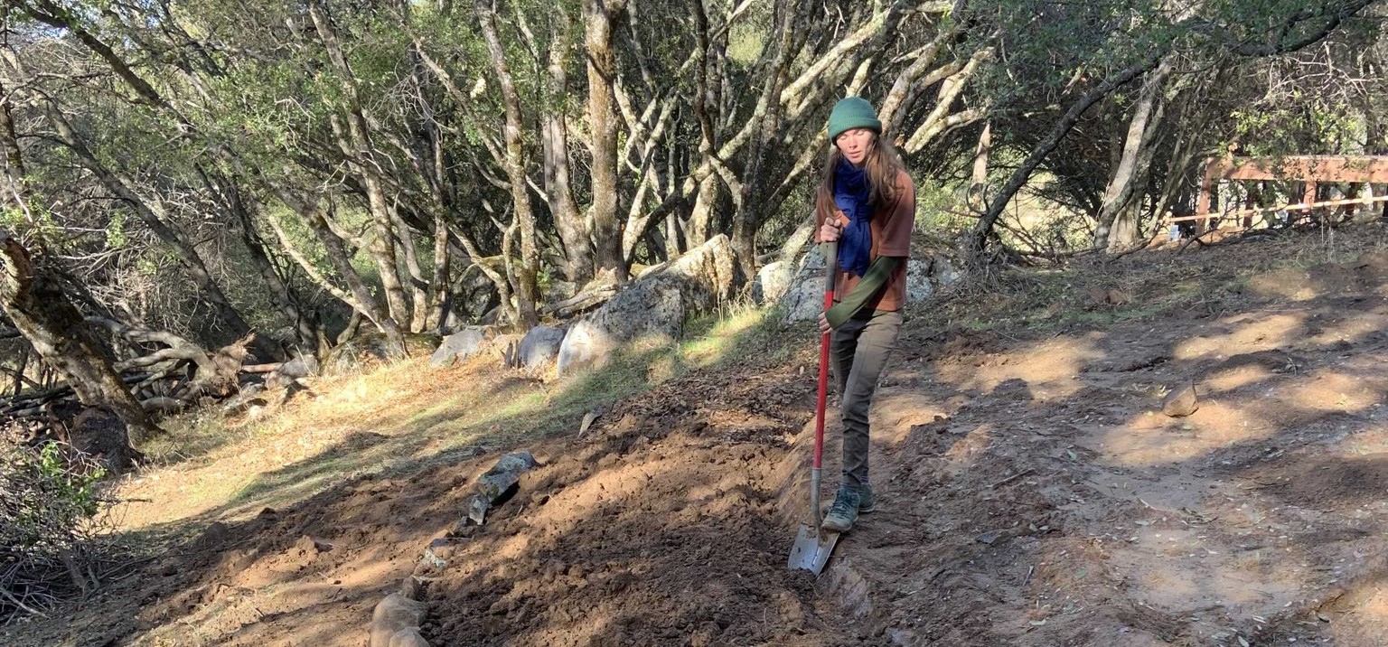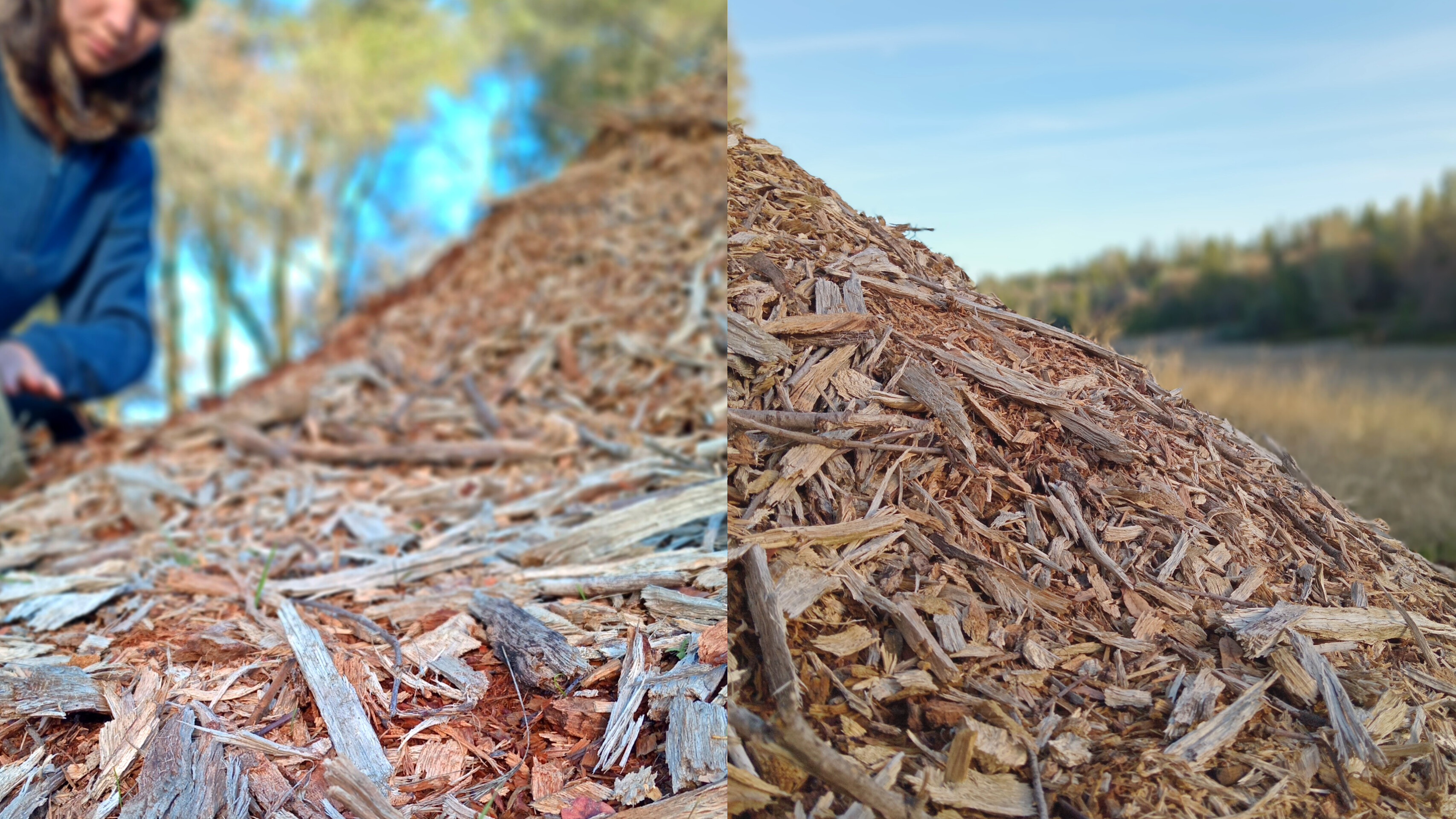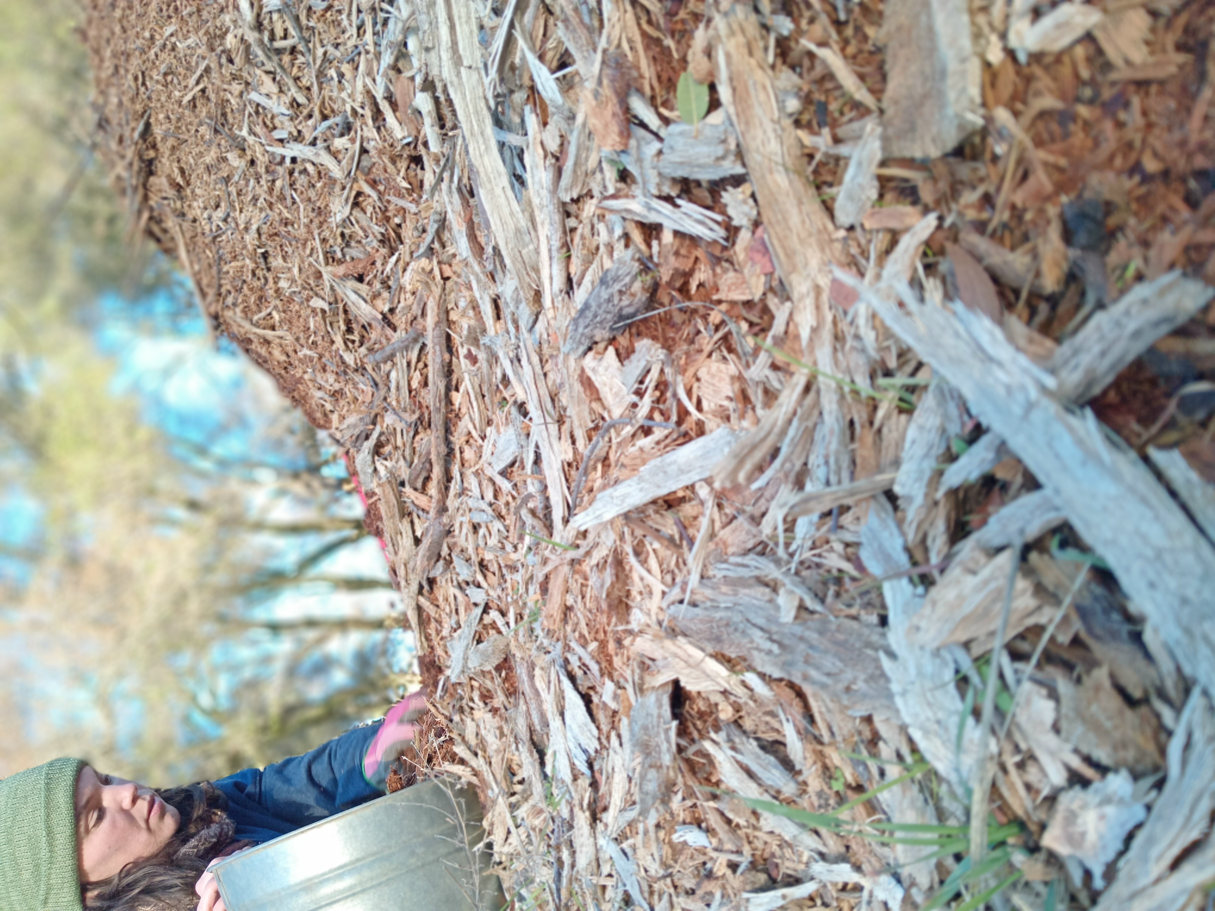 As it is the heart of winter in the Sierra Nevadas of California, the main chore of the day is to replenish the soil with a nice layer of earth & a protective covering of bark from the forest itself.