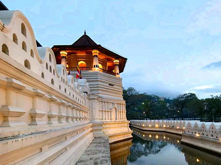 Dusk slowly fell covering the sky with soft colors as the old temple building stood majestically like a guardian of history. The classical royal style architecture looks elegant, with layered walls and sturdy pillars decorated with beautiful ornaments. The yellow lights that burn on each balcony arch give a warm impression, as if bringing to life old stories that once lived there.