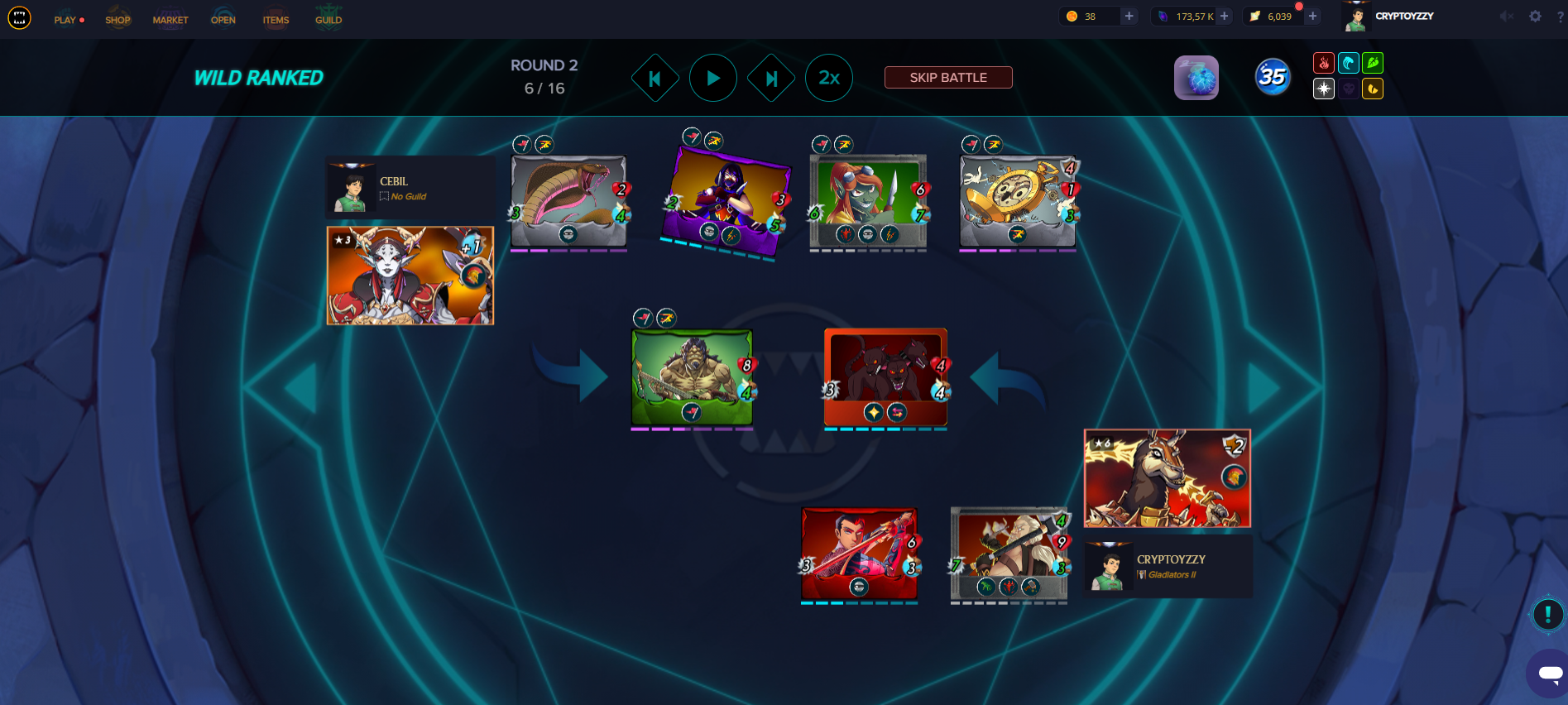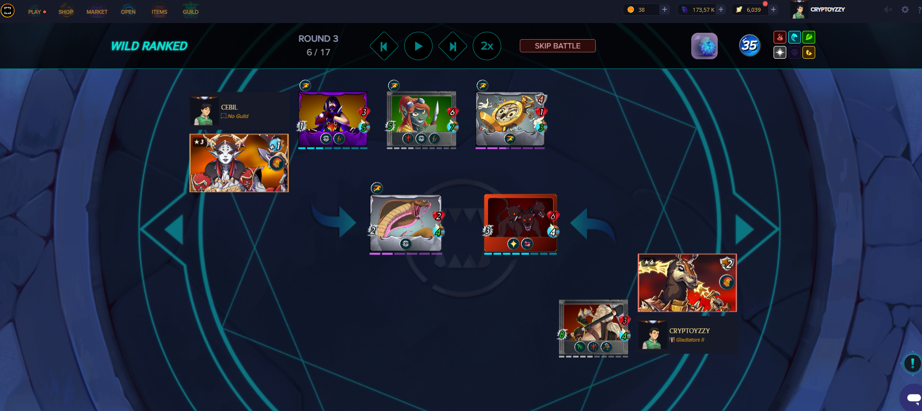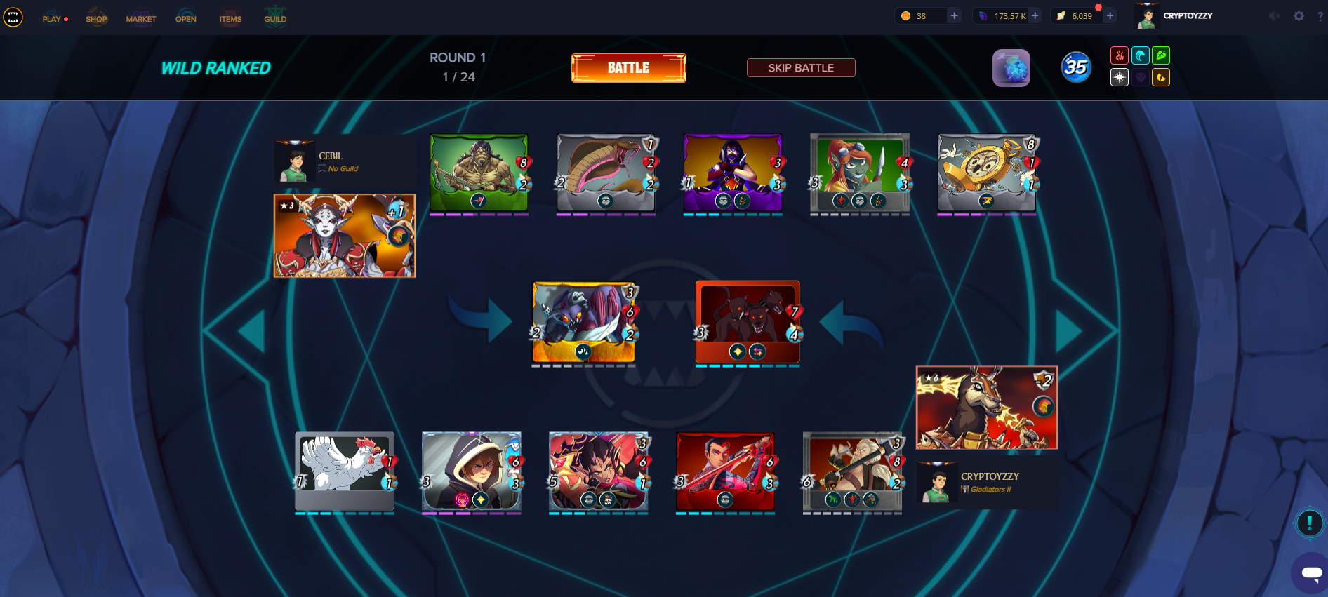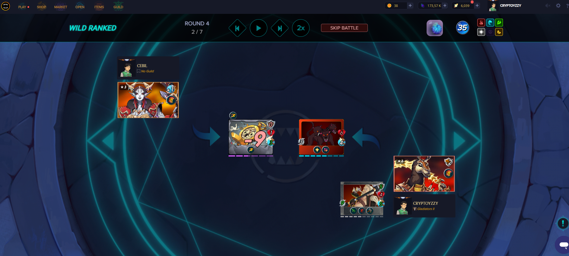 Dès le deuxième tour le ménage est radical et sa carte qui a un bloodlust à une attaque de 6 maintenant.
