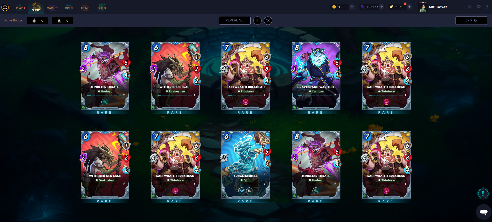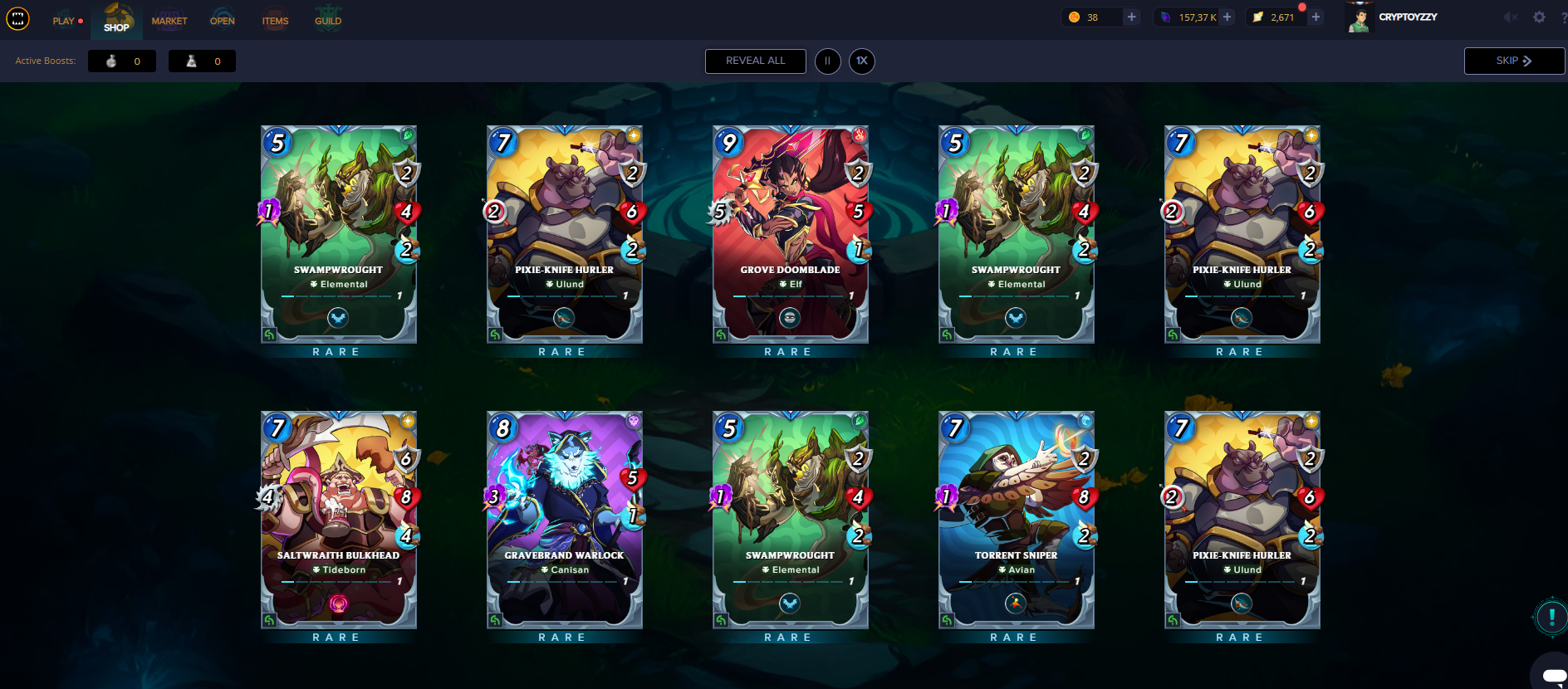 un nouveau tournoi de league commence et j'ai encaissé mes GLINT ce qui m'a permis d'acheter 20 nouvelles cartes reward rare.