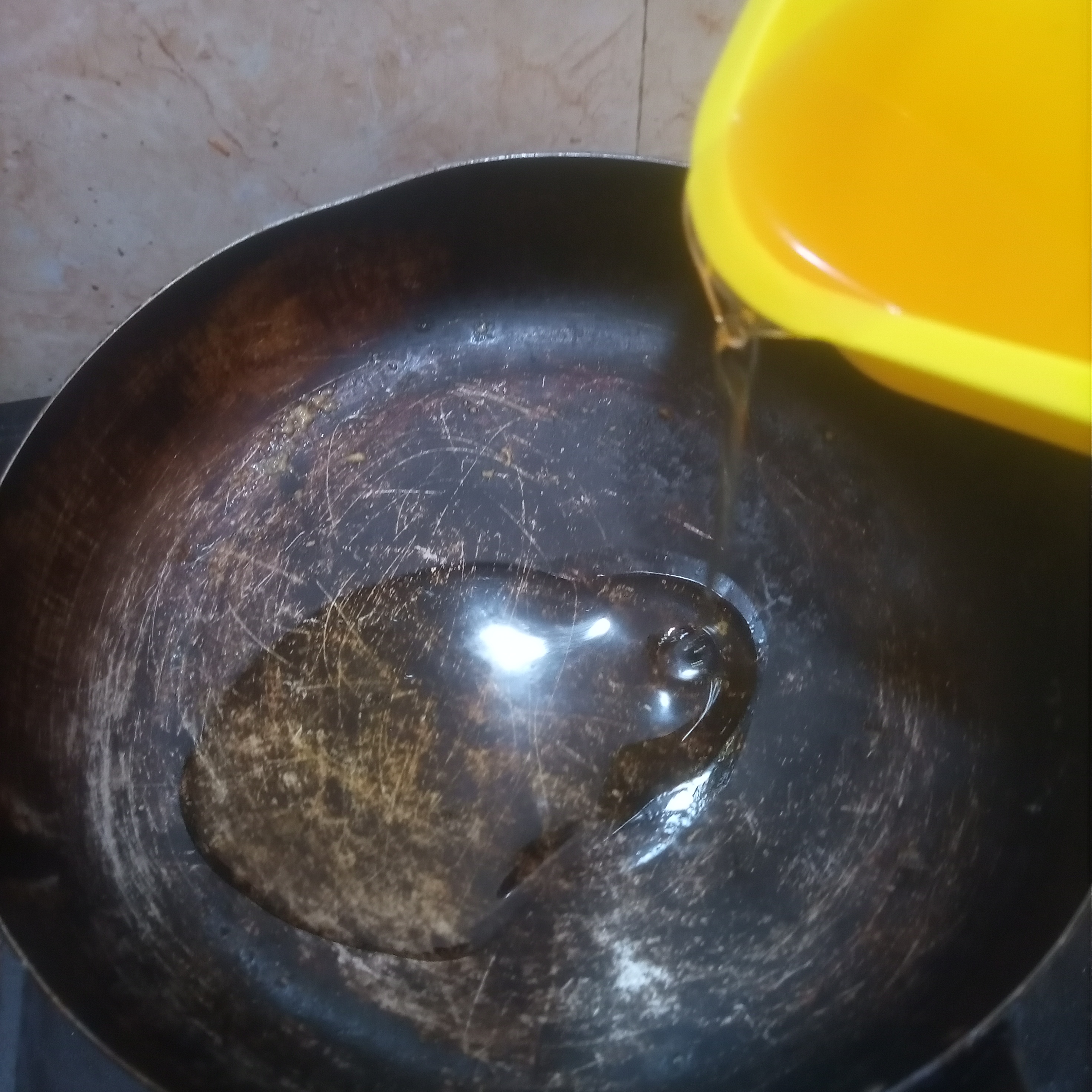 Place a clean frying pan on your stove, add groundnuts oil inside your pan then allow it to heat for 2 minutes.
