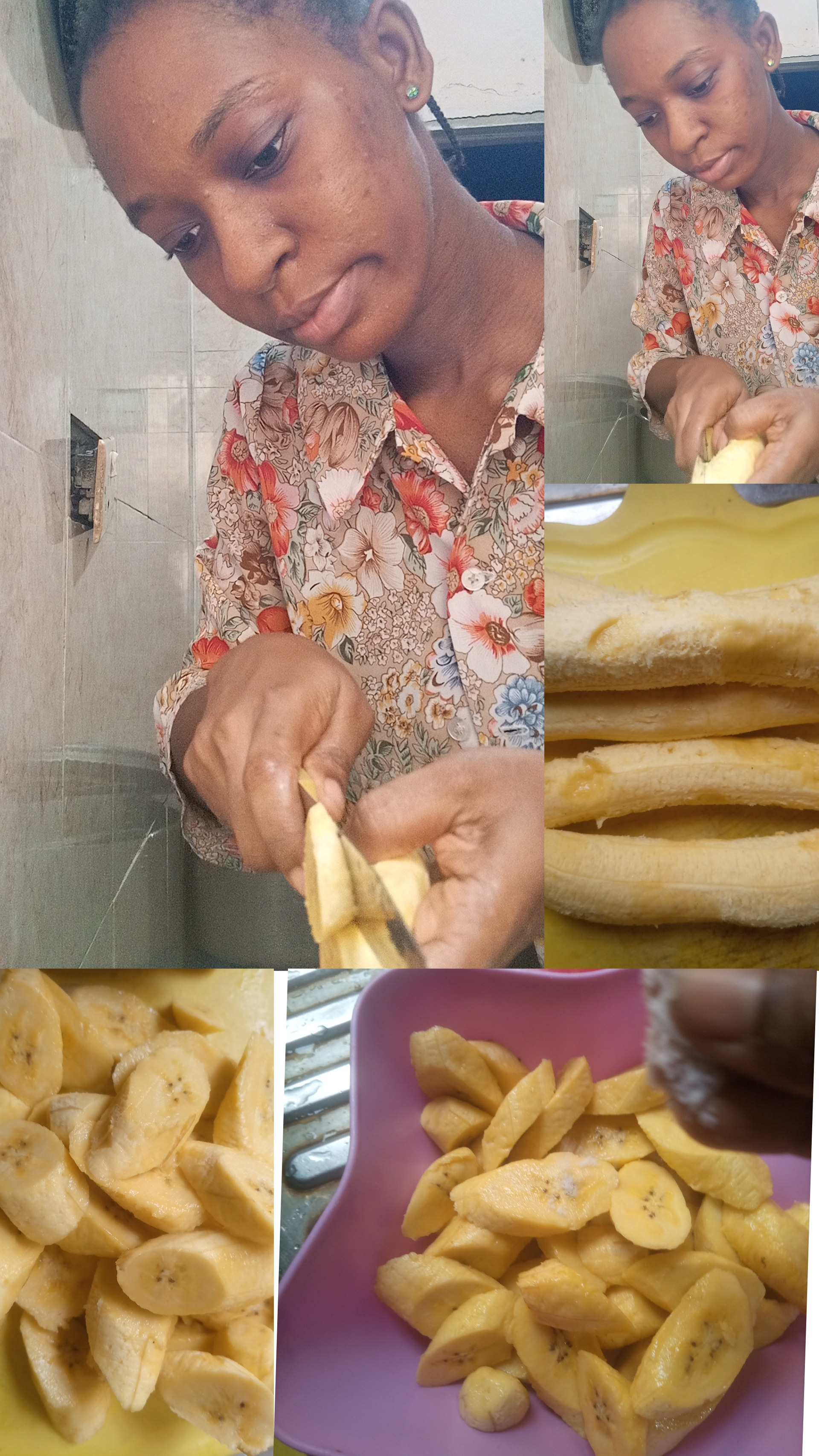 Wash your plantain before piling off the back of it , then slice it in your desire shape add little salt and stir with your clean hand then place aside.