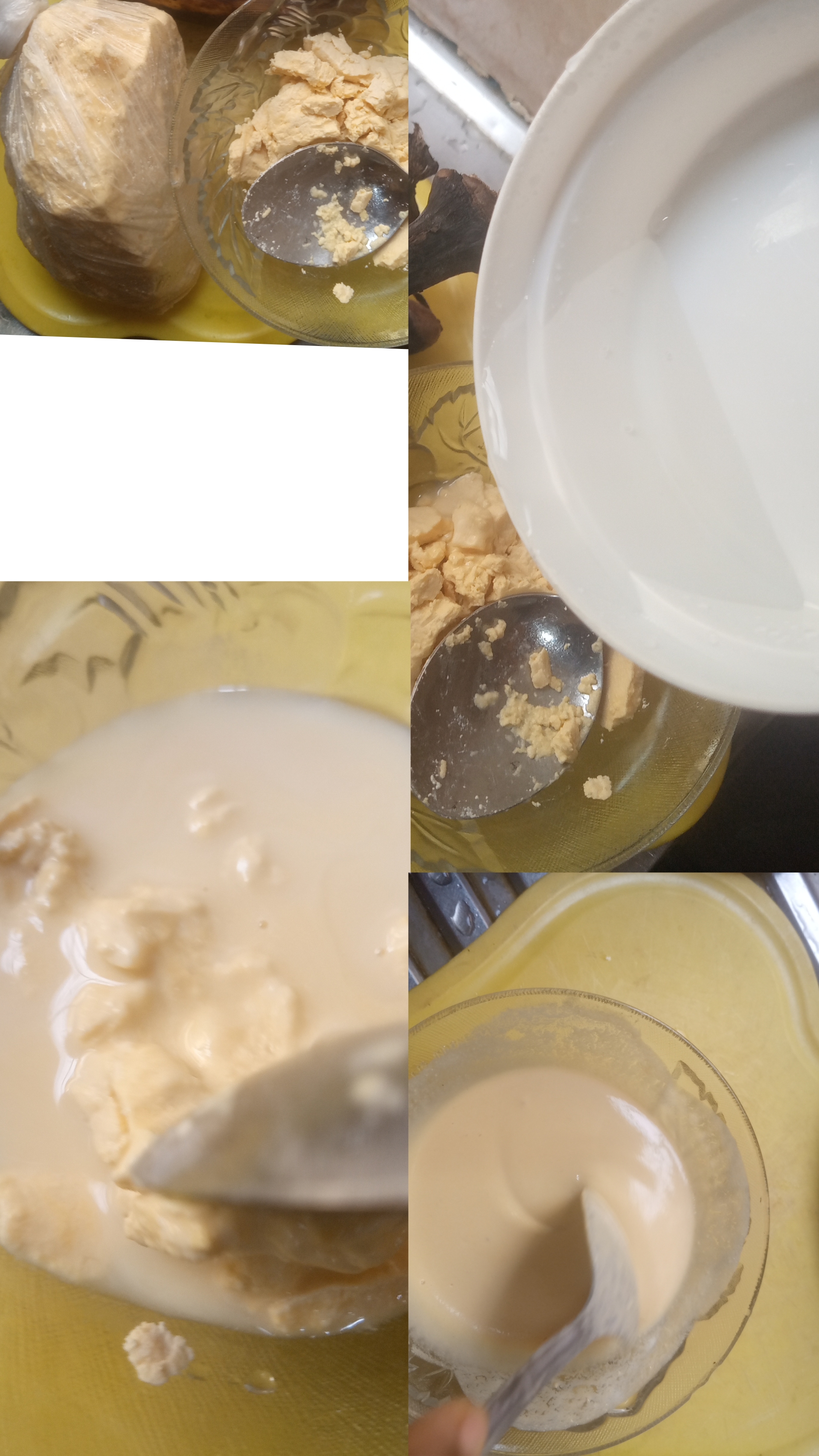 Bring out your grounded corn pour a little quantity on your plate, add room temperature water mixed very well then place aside.