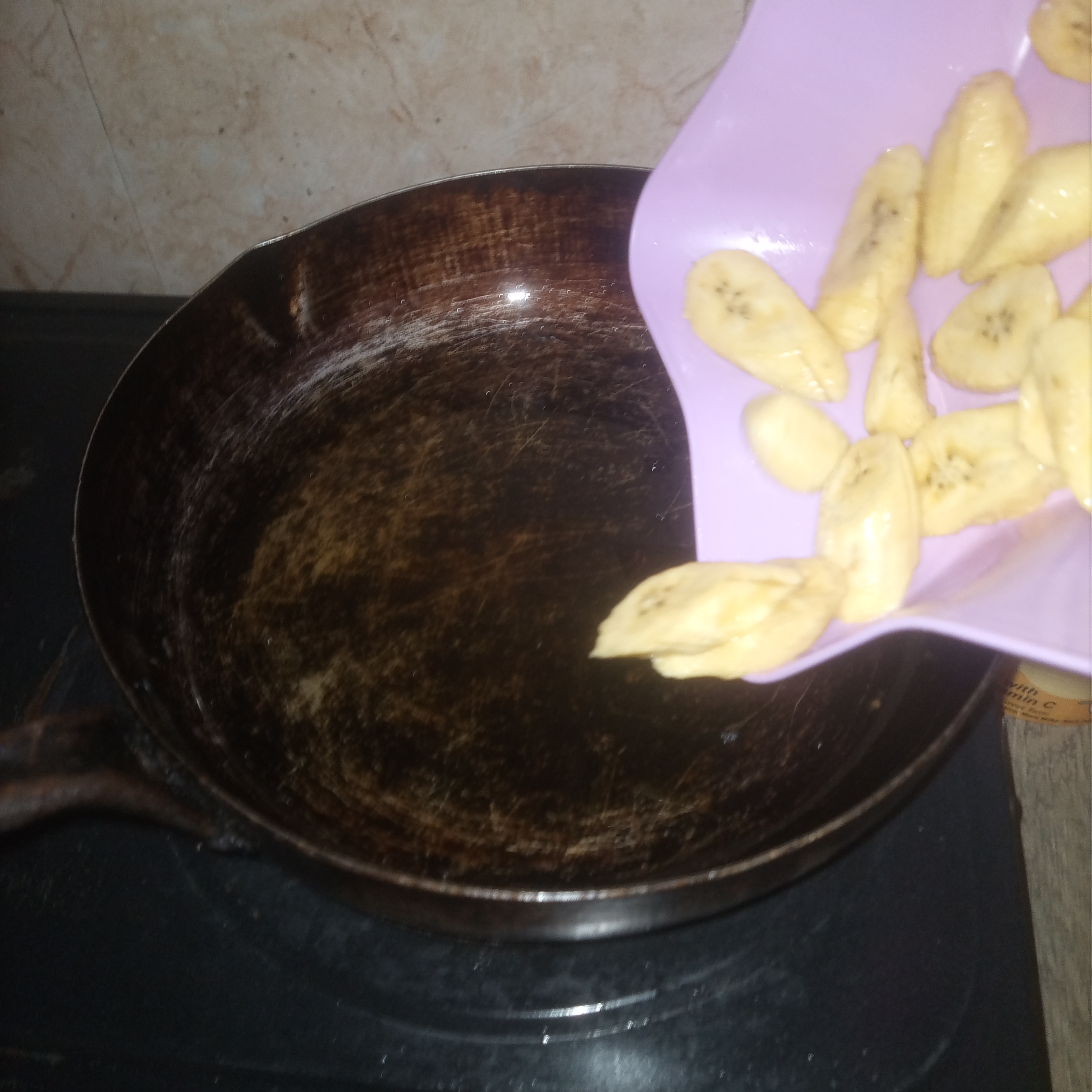 Pour your plantain inside the hot oil , fry till golden brown