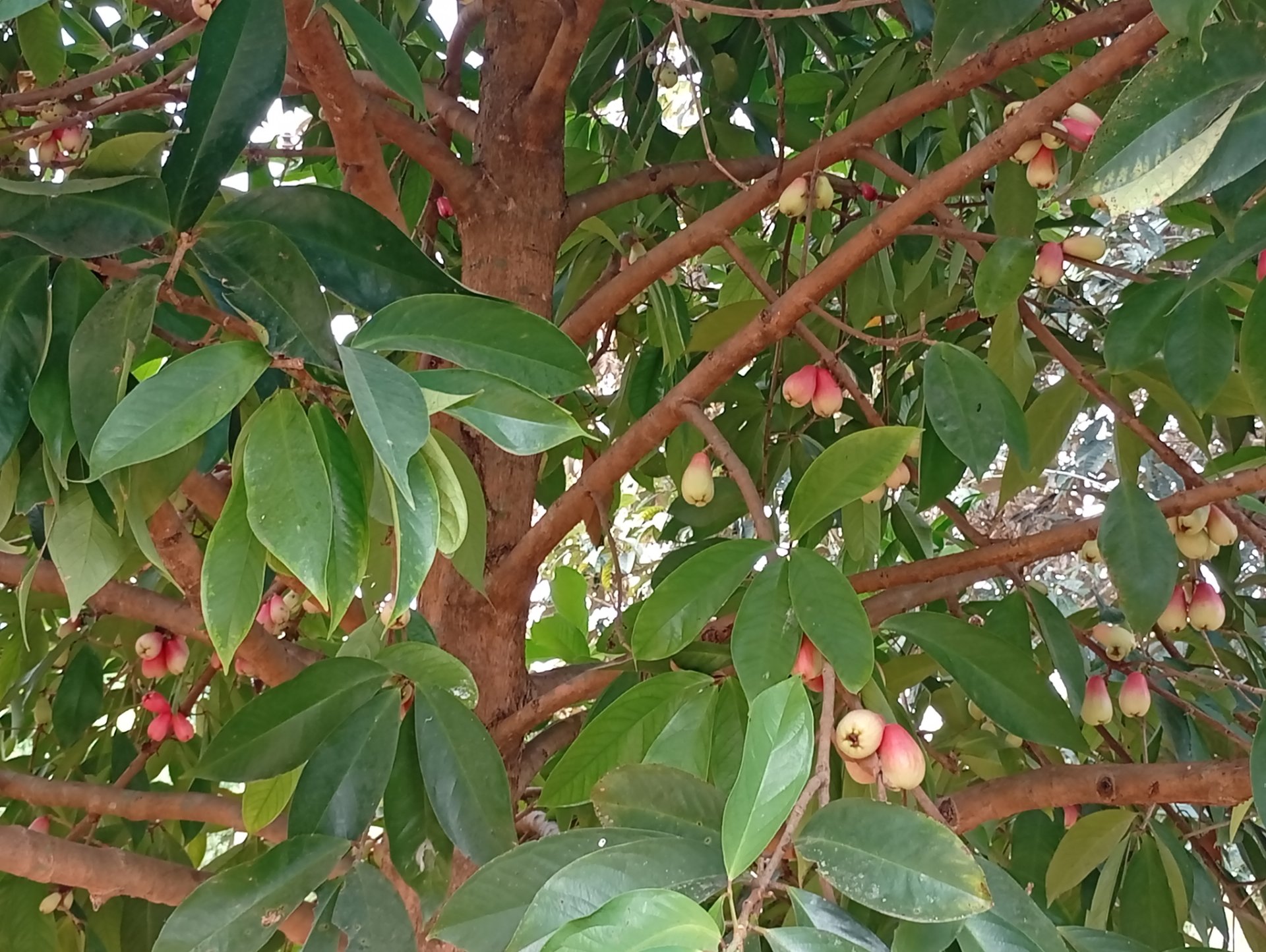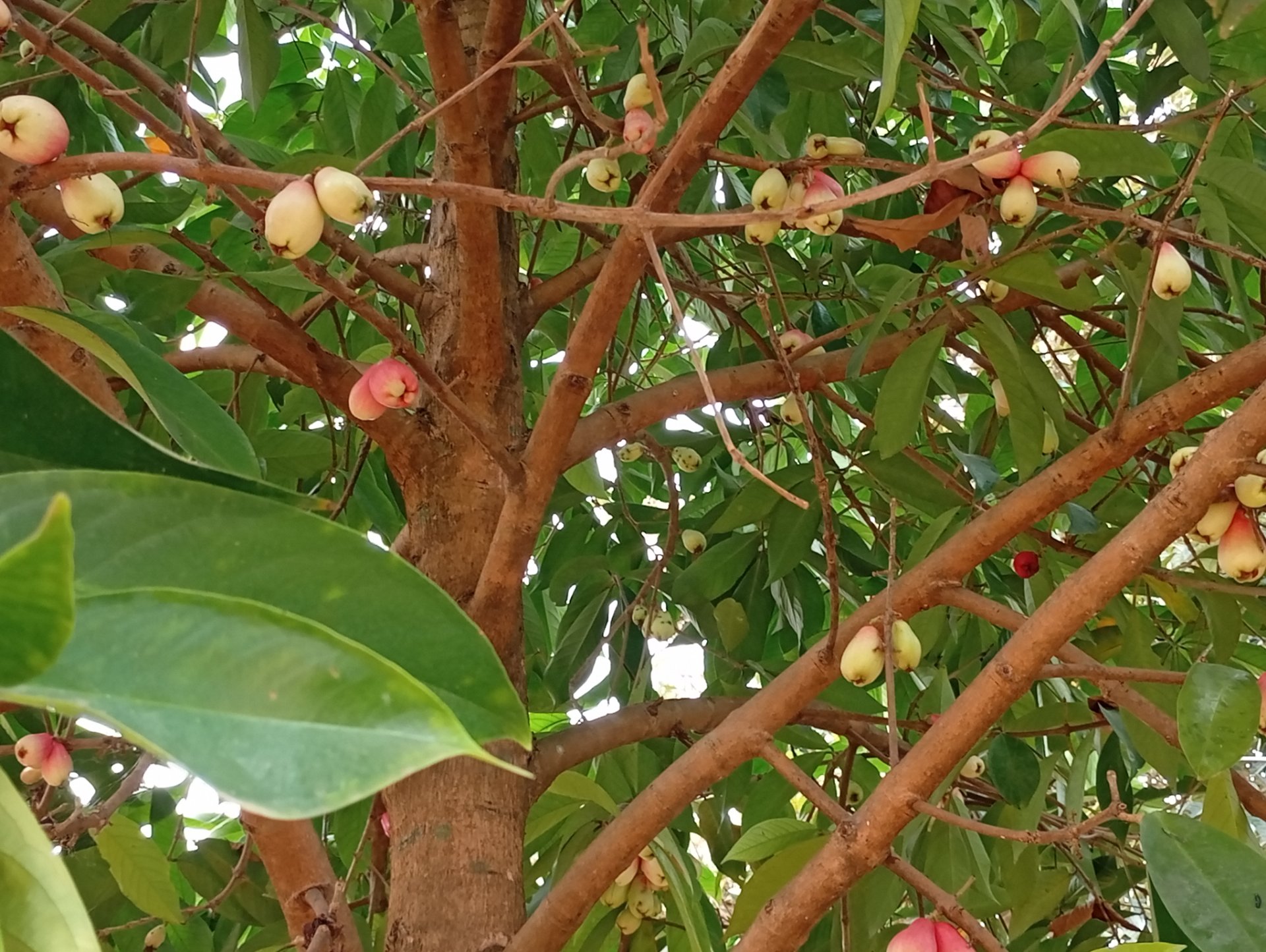 I saw a tree full of fruits. Out of curiosity, I went closer to see what kind of fruit. When I came closer I noticed it's an apple fruit. Although it's referred to as local apple.( That's what the people call it) I know we have many varieties of apples in the world, but I can't even Identify this one.
