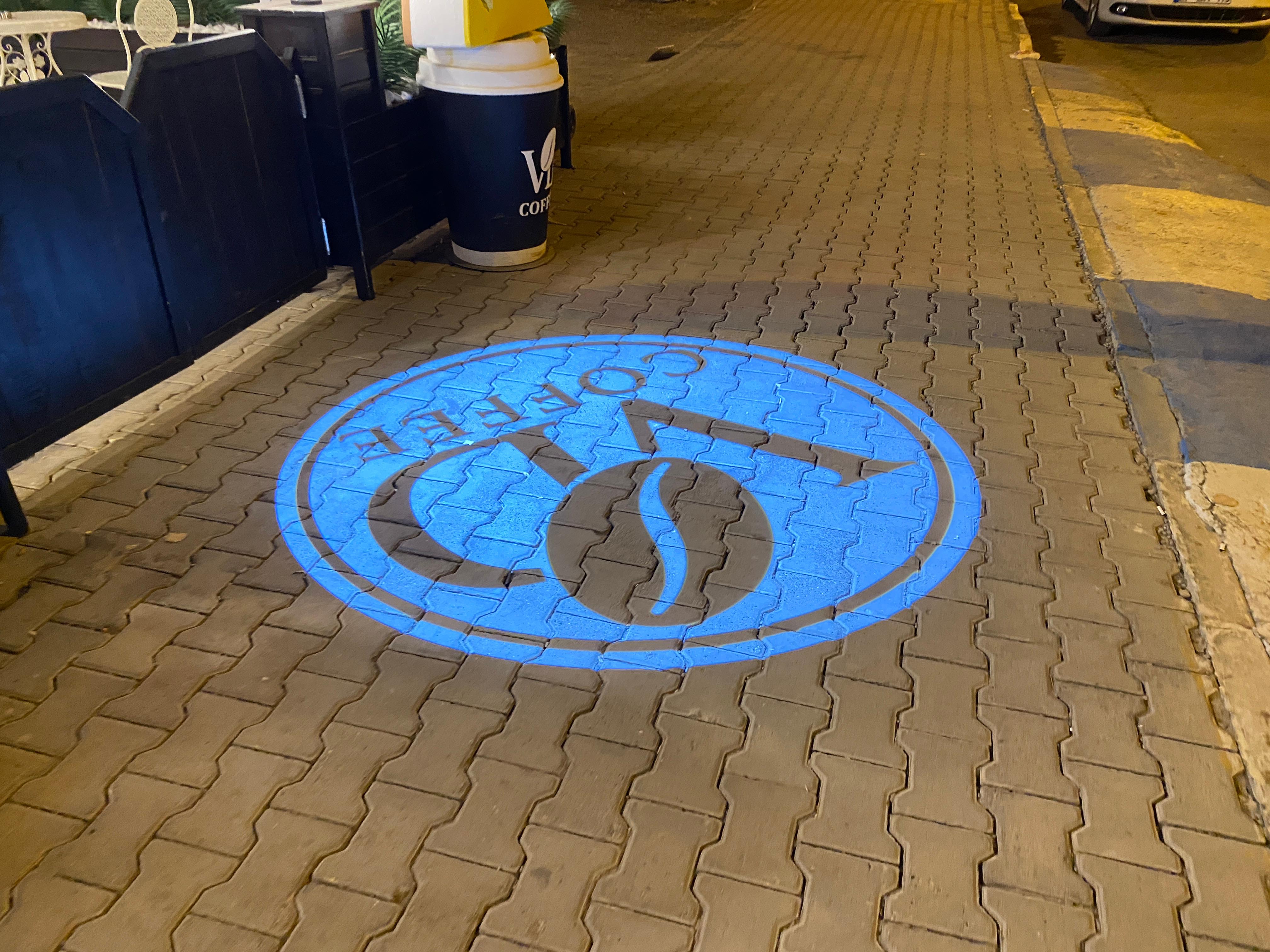 Kafenin dışında yere ışıkla logolarını yansıtıyorlardı. Bu yeni bir şey değil ama güzel görünüyor. Küçük detaylar cezbedicidir.
