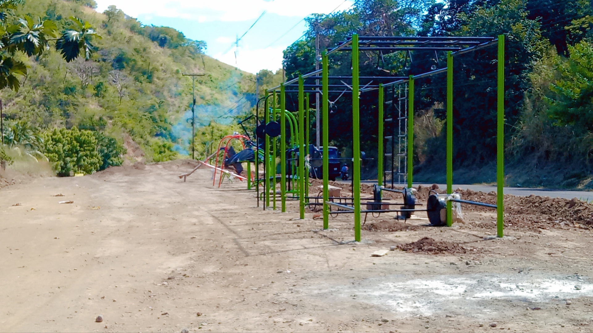 And therefore, the bus stop area is usually very sunny when waiting, so we were surprised to see this small space being set up, which, as far as we understand, is still under construction since it lacks the equipment and other exercise machines before it can be inaugurated for free use. However, we were curious to see it and surprisingly, it is very well equipped with some structures for resistance training or strengthening the legs, although I feel and believe they should put something in the shade because, being made of steel or iron, they get very hot with the high temperatures that are common here in this area.