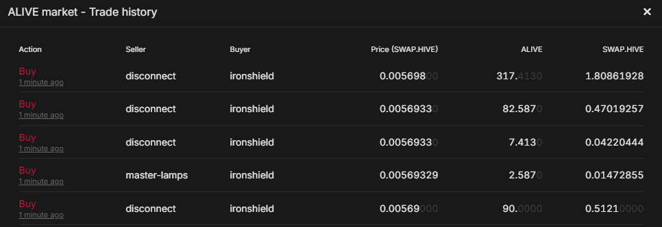 There were a couple sellers who surrendered their ALIVE tokens to me for SWAP.HIVE.