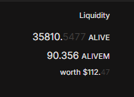 I have 35.8K ALIVE tokens in the pool, plus 90 ALIVEM tokens. My total ALIVE investment is just shy of 65K.