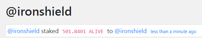 @logen9f! You Are Alive so I just staked 0.1 ALIVE to your account on behalf of [@ironshield.](/@ironshield.)