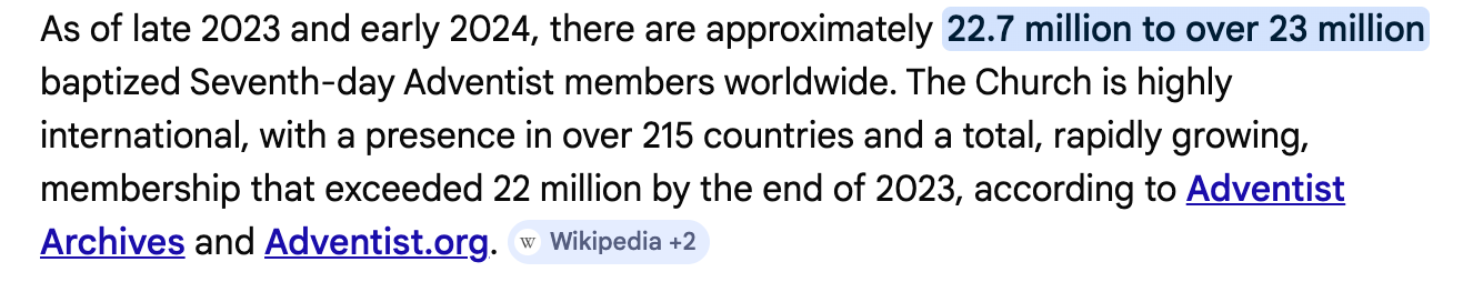 Now I go over to Google again and type in....How many Seventh Day Adventists is there?
