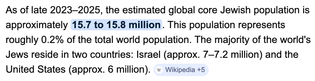 I did a quick Google search and asked 'How many Jews are on earth?'