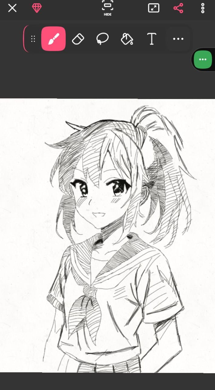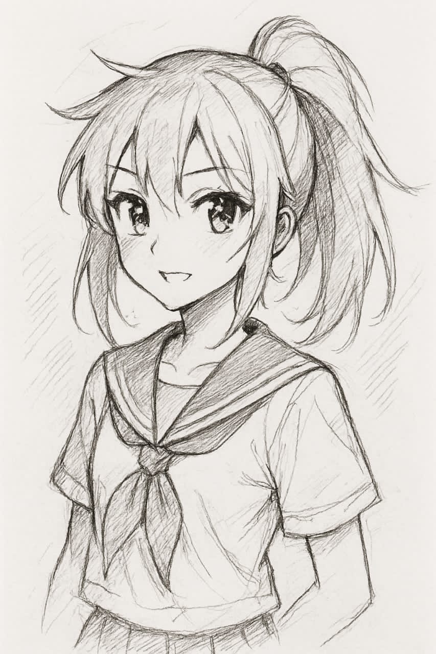 The image above contains the drawing of "Happy school girl', so you can open it to view the full sketch. I gave it a quirky amine/ manga style, blending the scientific vibe of an amine group with expressive character design..