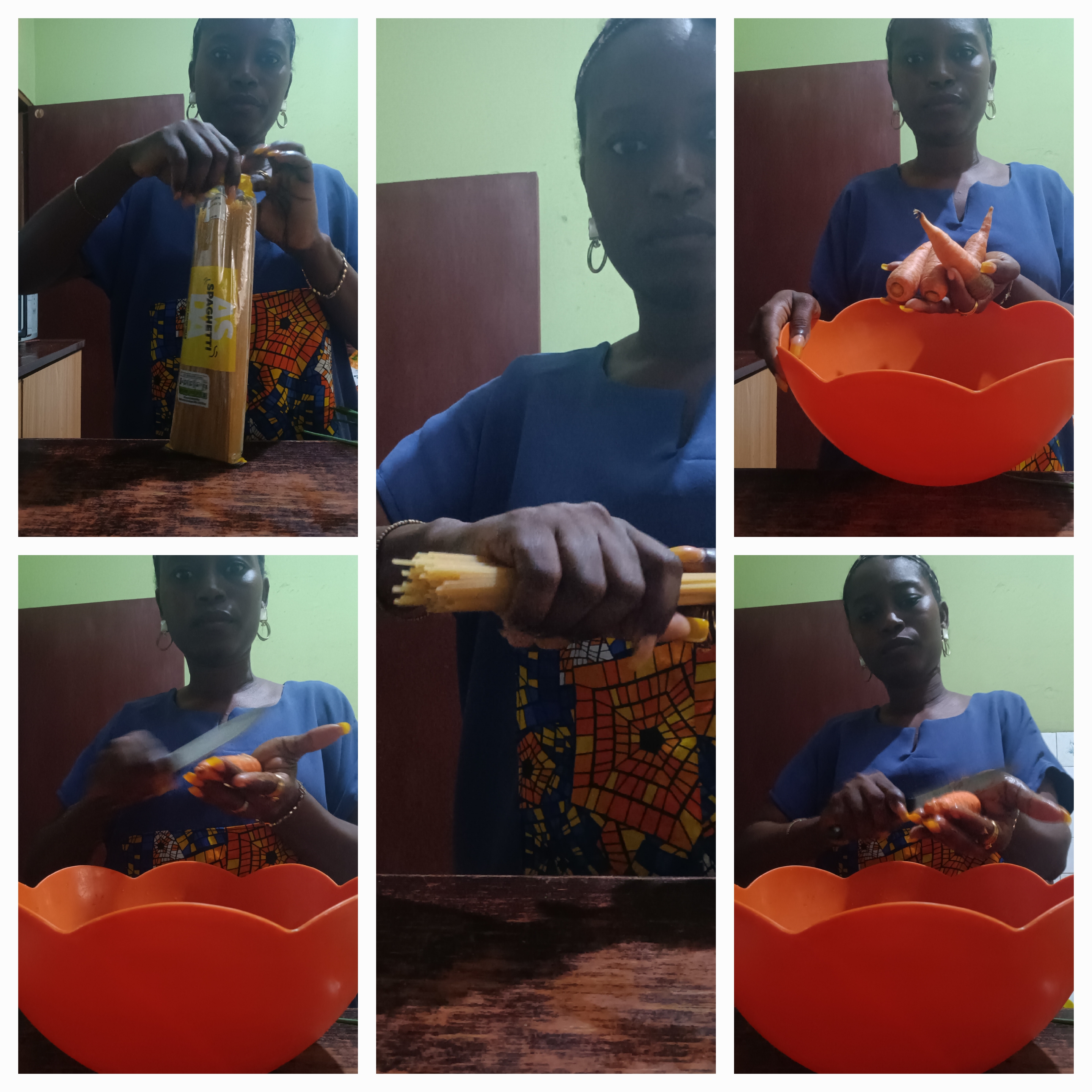 While pasta is cooking, wash and scrapes the carrots and keep them aside for dicing.
