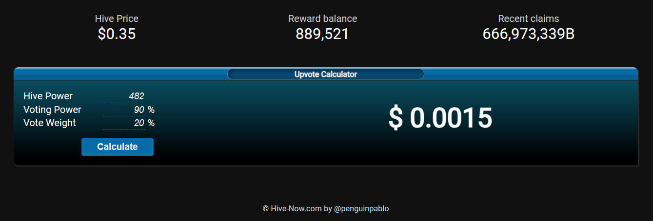 Um an eure eigenen Vote Power zu feilen empfehle ich Upvote Calculator.