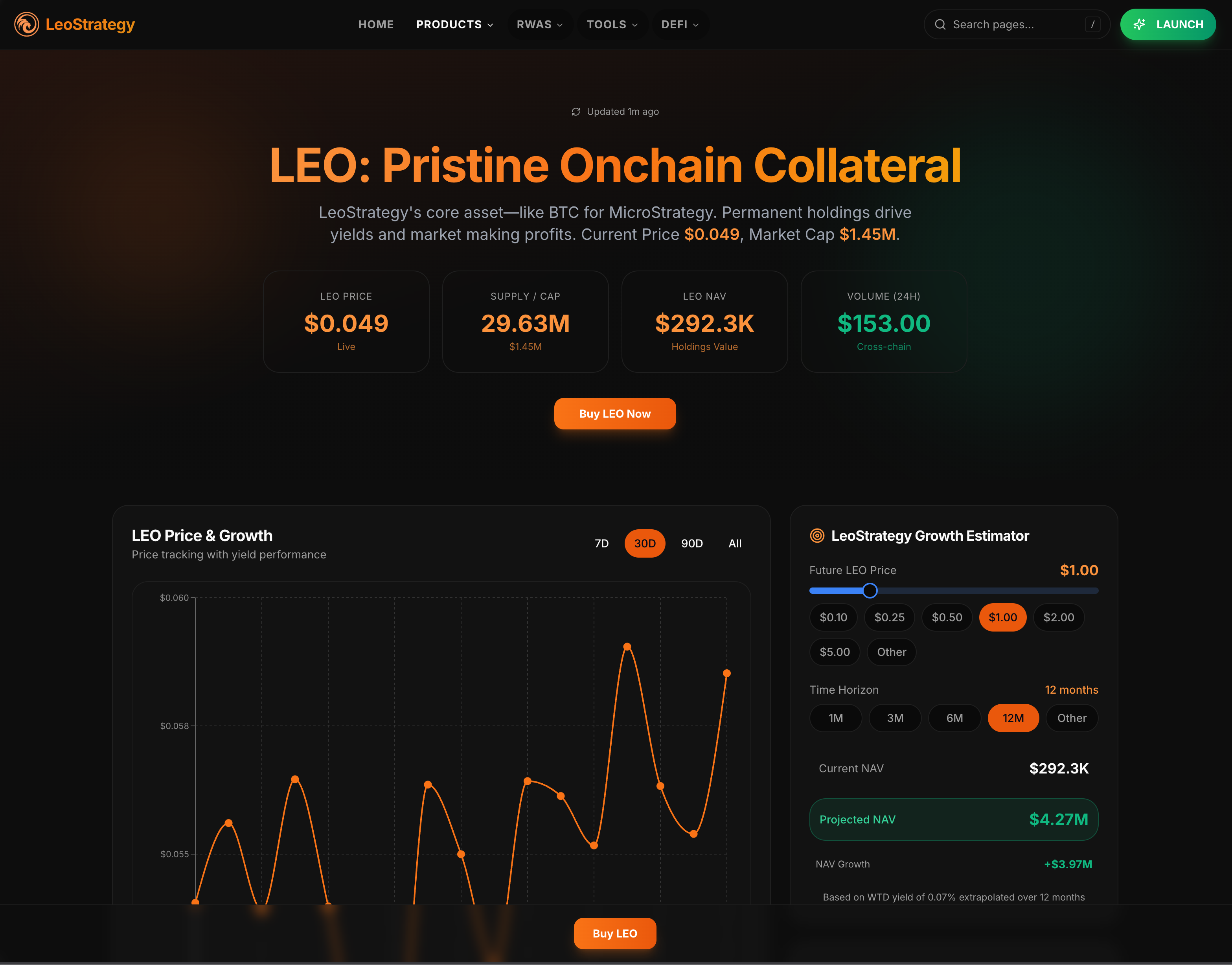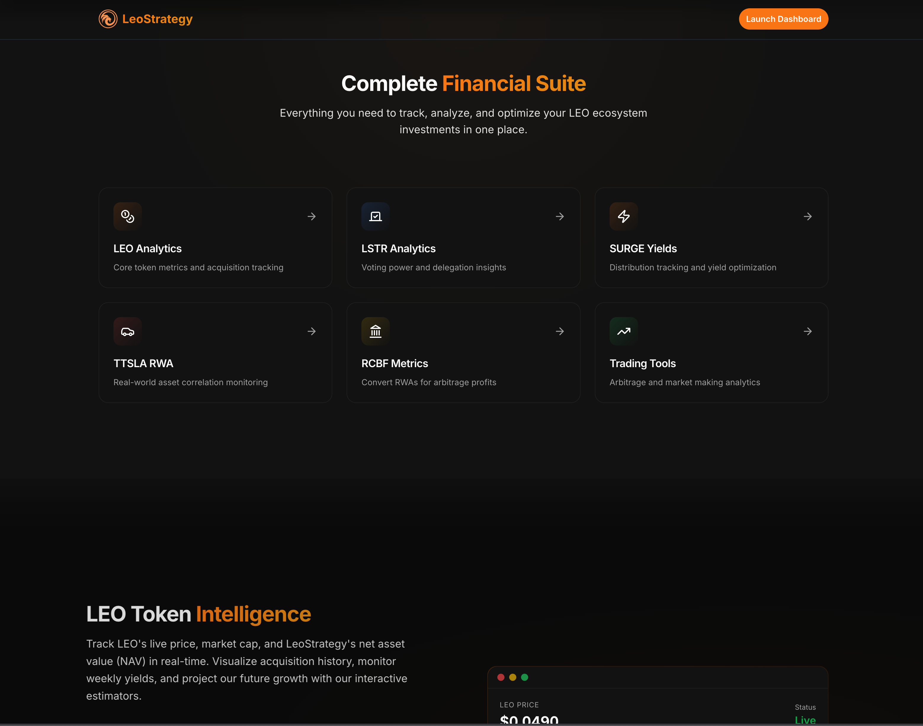 - https://leostrategy.io/portfolio -> The Portfolio tab will let you plug your wallet directly into the LeoStrategy Super App to track, manage and analyze your portfolio of LEO & LeoStrategy assets