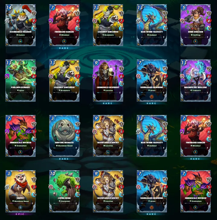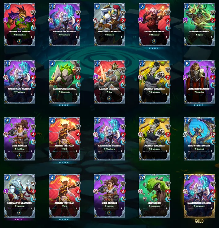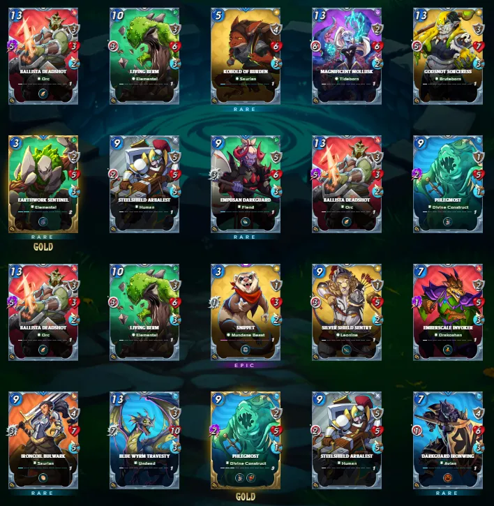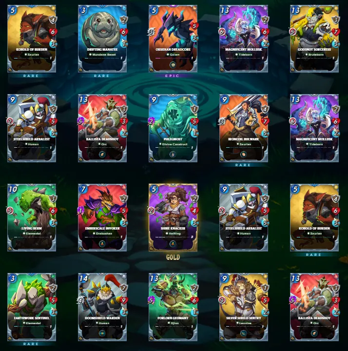 The first batch gave me an epic and a gold foil. For the rest, I can see these cards already being useful especially the Ballista Deadshot who deals five magic damage and Doomshield Warden taking my main tank position. Magnificent Mollust with six range damage and Gobsnot Sorceress will be my back line damage dealers.