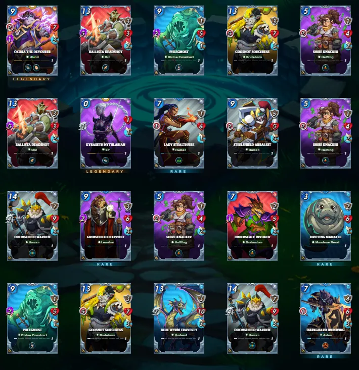 The last batch was the best. I got two legendary cards from this batch that I use in battles. Okora the Devourer deals dual damage of range and magic while Kyraseth Nythlarian is a zero mana elf. I mostly use the Earth archon with elven units so this one will surely find a spot in my line up.