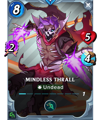 | 3. | https://d36mxiodymuqjm.cloudfront.net/cards_by_level/reward/Mindless%20Thrall_lv1.png | Another magic attack monster, but this one is more powerful with the 2 magic attacks, 5 health, and 4 speed. Also, there is a phase ability. |