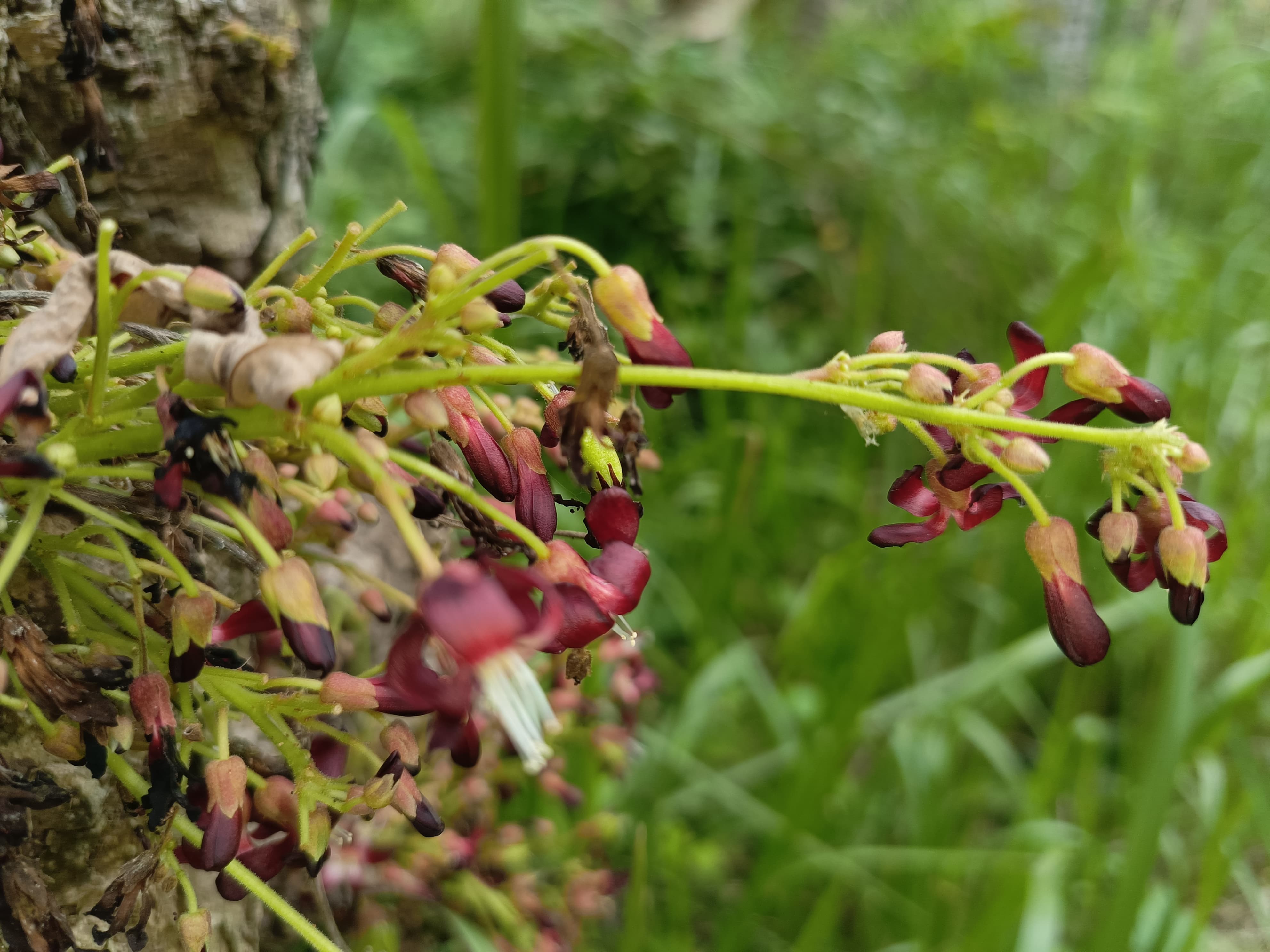 And this time I will share some pictures of starfruit flowers in my plantation, starfruit is known to be very useful for many people, especially for cooking flavors, starfruit itself has a very sour taste and maybe only a few people can eat it directly lol. It turns out that if we look at it from a close distance, the flowers of starfruit also look very beautiful, the main color is blackish red, and the flower stalks also look long. Even in my area there are many people who use starfruit to be made into sunti acid (dried starfruit) the benefit is so that the starfruit can last for a long time.