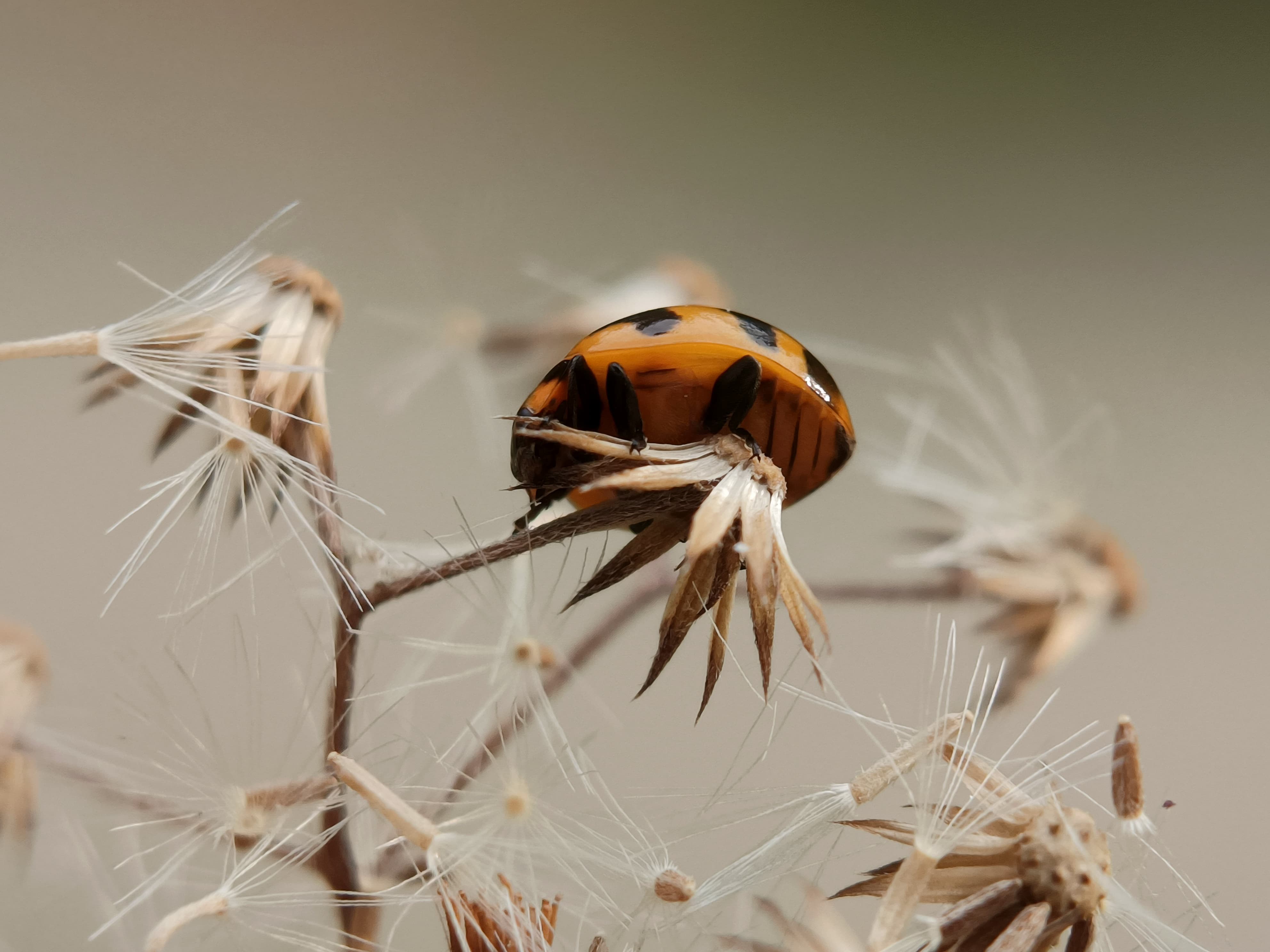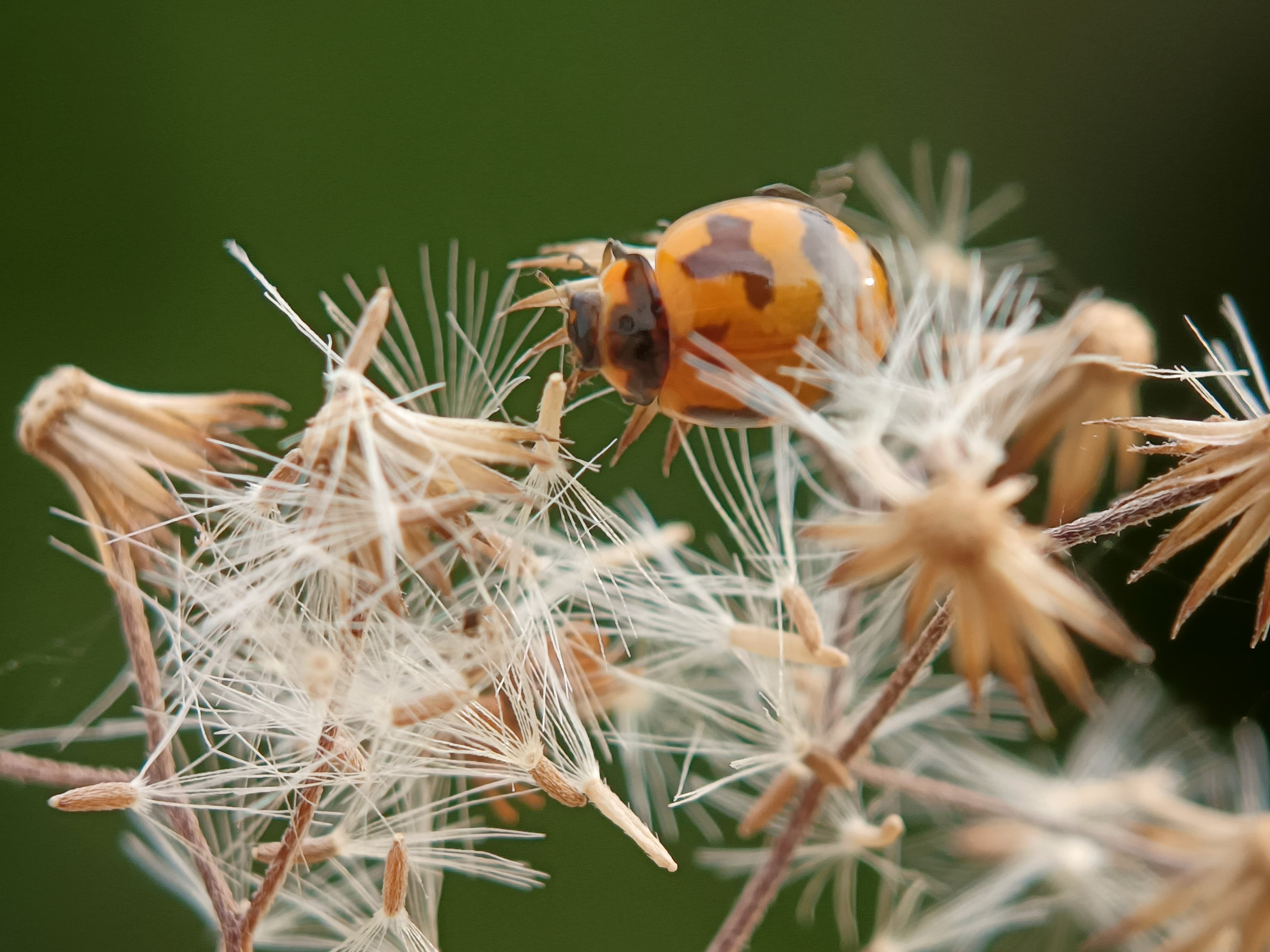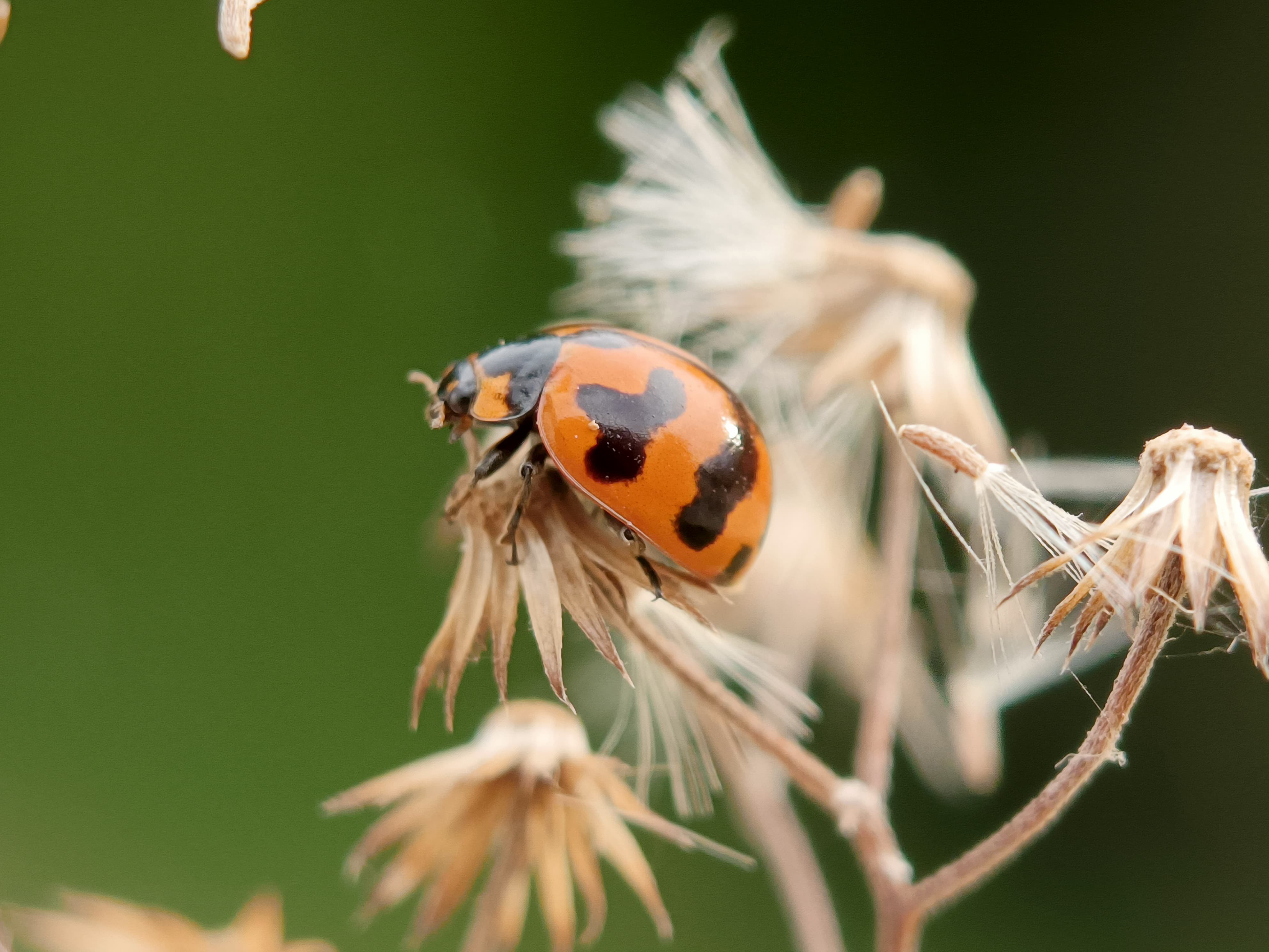 The population of the ladybug is increasing in my area and I can almost find it anywhere. Unlike the ladybug I photographed a few days ago, the difference is visible in terms of color, this one has black and orange, and that is a very striking difference,even though its size is relatively smaller in shape and color, I will always photograph this one wherever I find it. I managed to find this ladybug behind my house, at that time my brother and I were cleaning the back of the house from wild plants and grass, this one beetle perched on a wild plant.