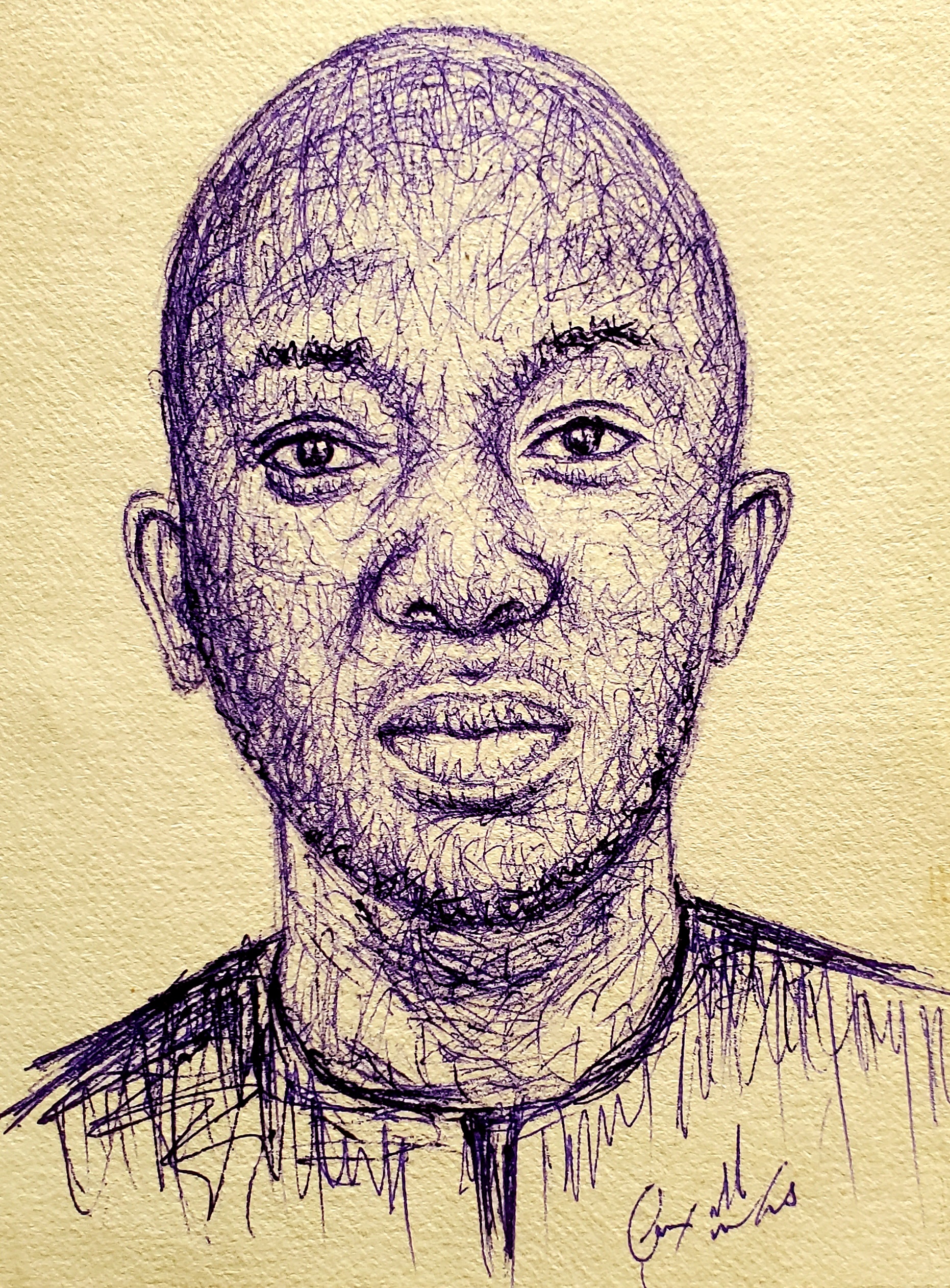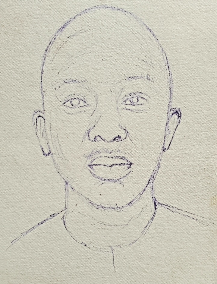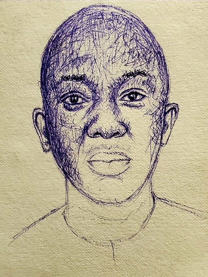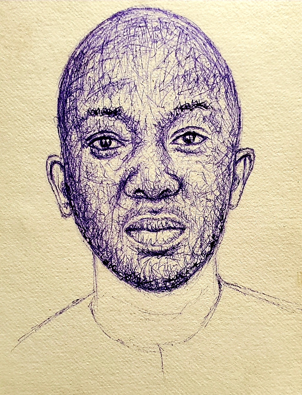 The portrait was done with a blue ballpoint pen on a cardboard paper. I used scribble technique to create this piece.