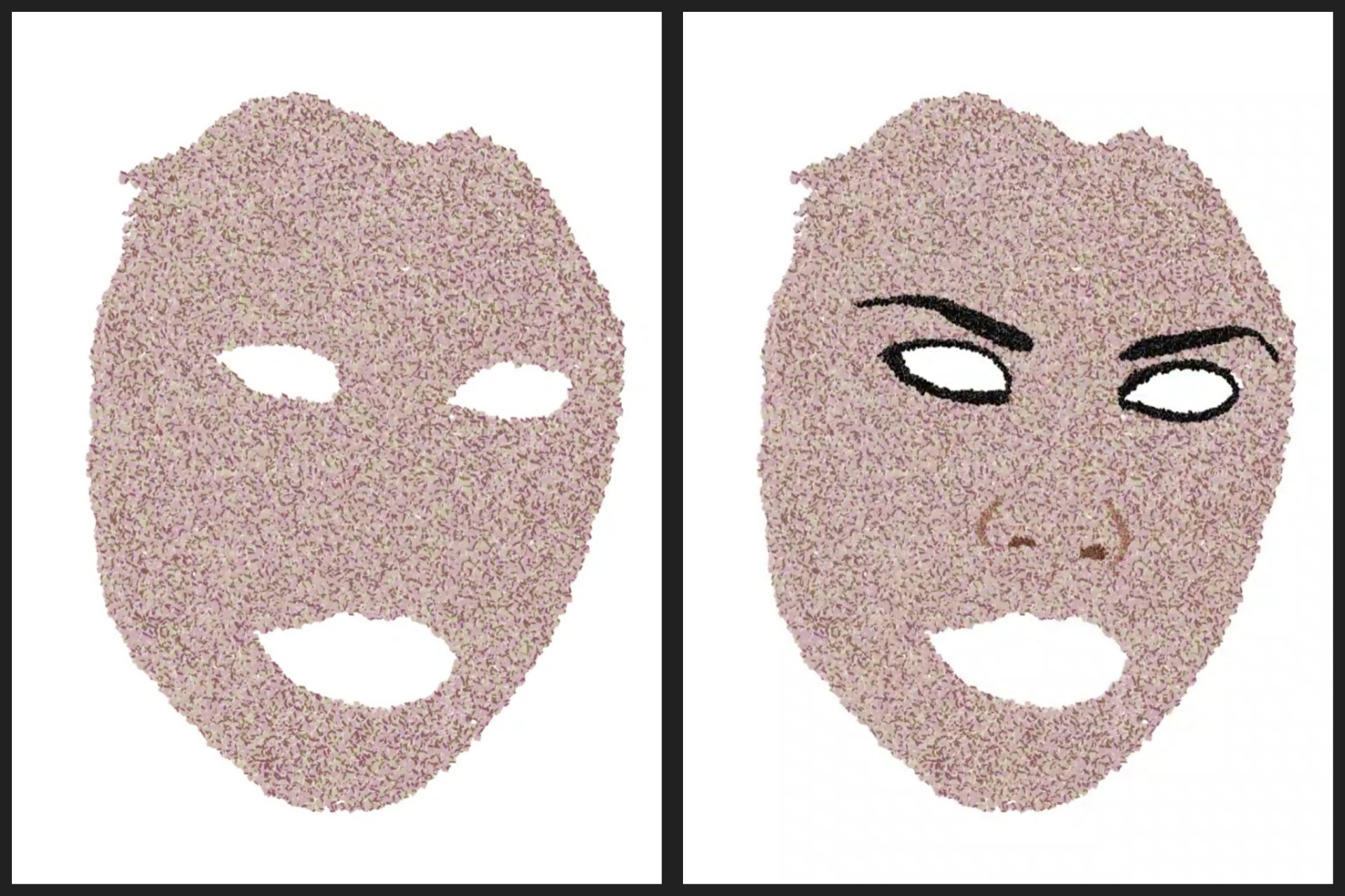 I created this illustration in stages. I did not use a sketch as such; I simply drew the shape of the face, leaving space for the eyes and mouth. Then, on a layer above, I highlighted the eyes and the shape of the nose, and then on the layer below, I began to apply the shading and highlights.