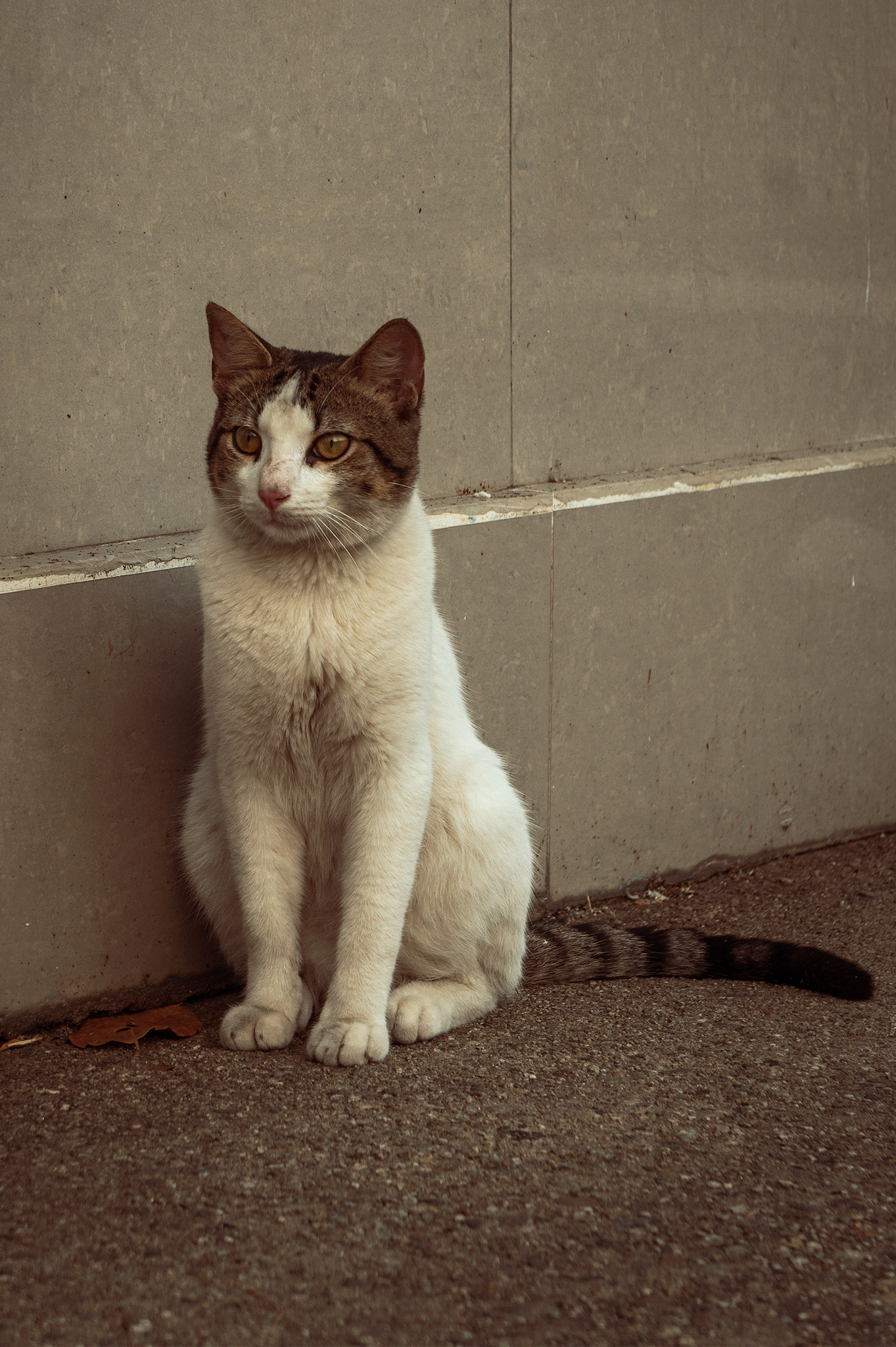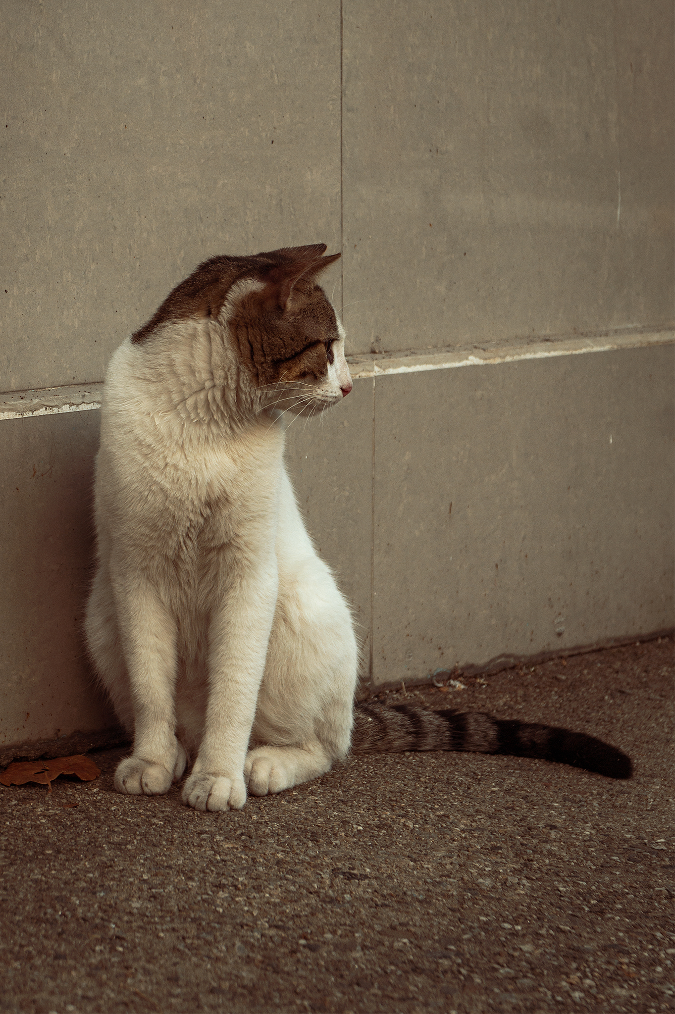 Para el revelado intenté mantener los colores originales; solo tuve que aumentar la exposición y hacer ciertas correcciones de equilibrio, pero de resto, me gustó mucho el escenario, el gato y la luz suave del sitio. Me parece que sin duda captura un buen momento callejero de un gato atento y al mismo tiempo distraído por las cosas que le rodean.