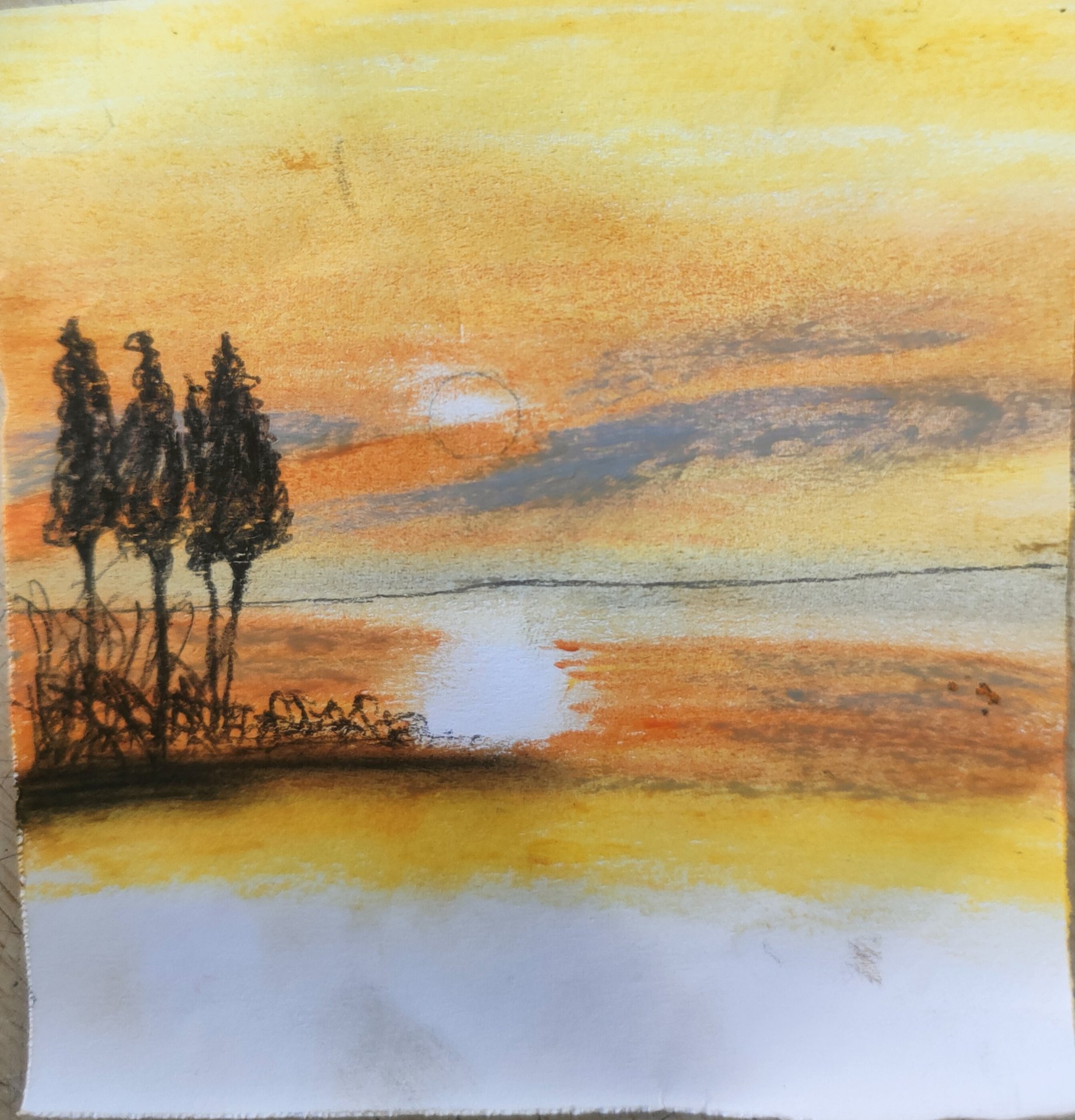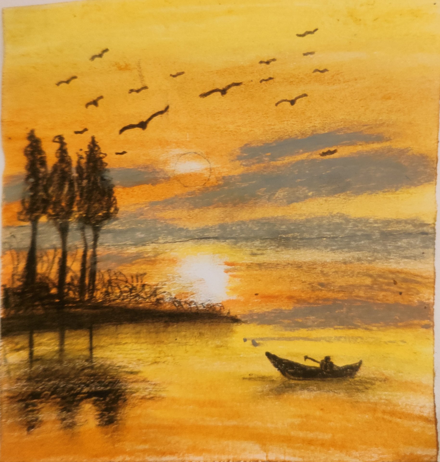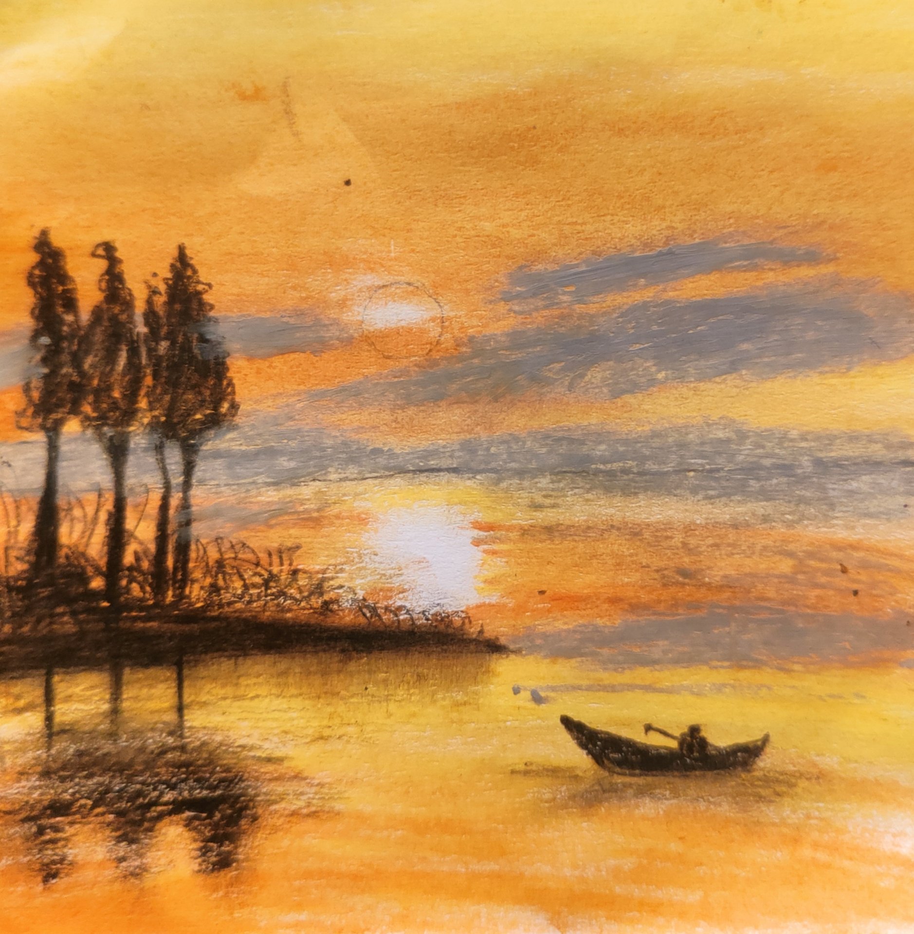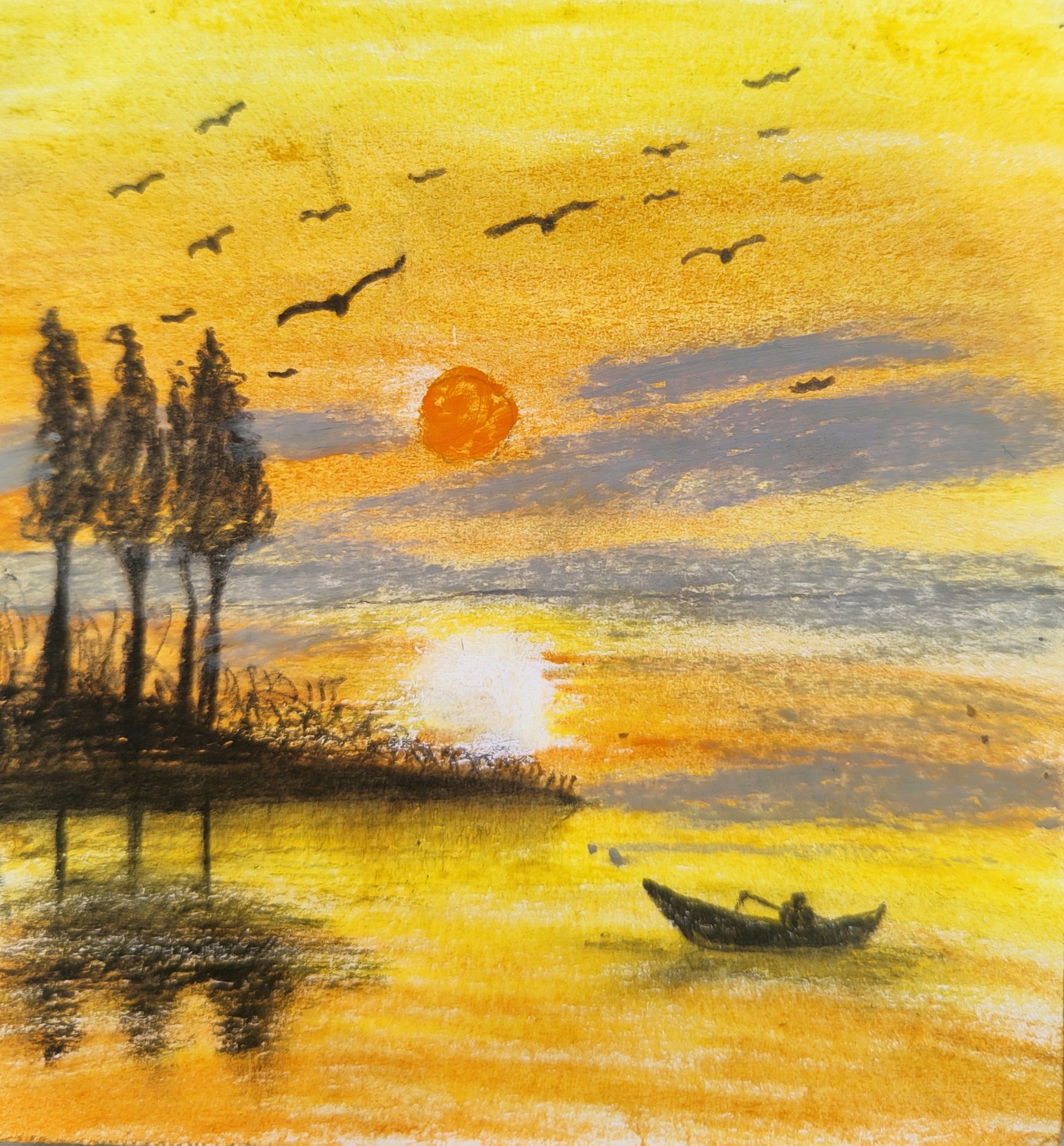 Good Afternoon one and all in this community. I'm very happy to another drawing to my sketch book. Today drawing is sunset painting using oil pastels.