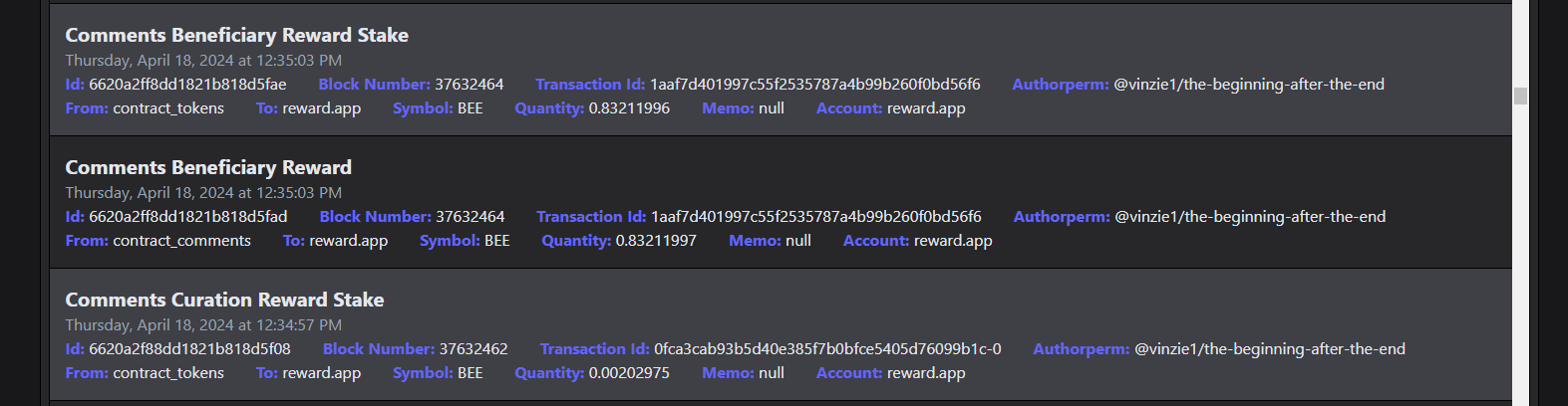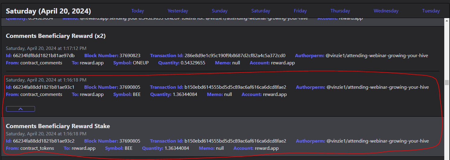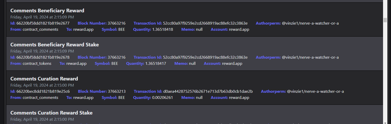 Hello @reward.app , There were a couple of bee tokens were missing and also my recent posts that were not included on receiving bee tokens. I took some photos from hivestats.io for the reference of the missing BEE tokens that were not distributed. You can also checked it below for the bee tokens that were missing. I only add the beneficiary reward stake and beneficiary reward for each post.
