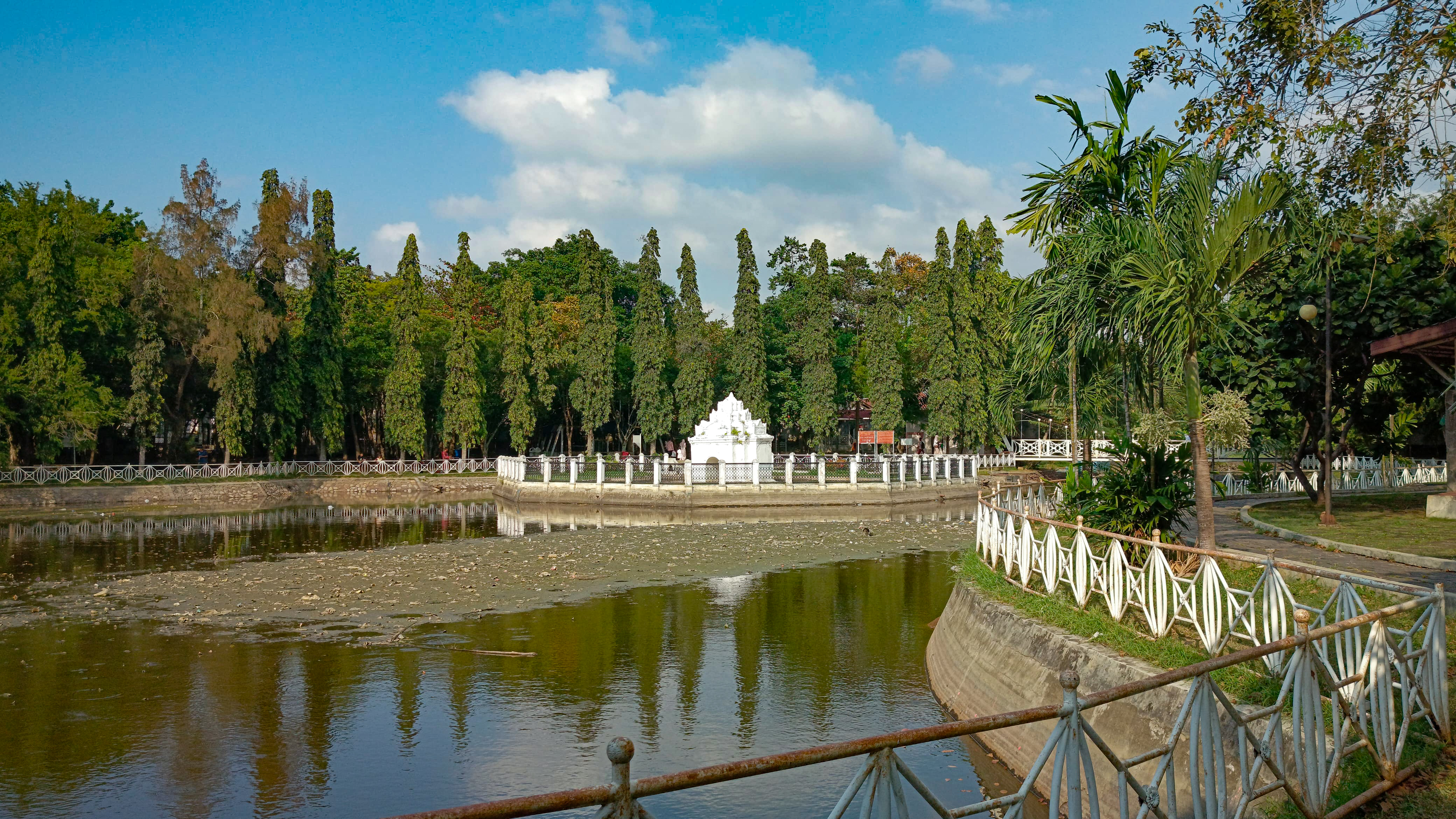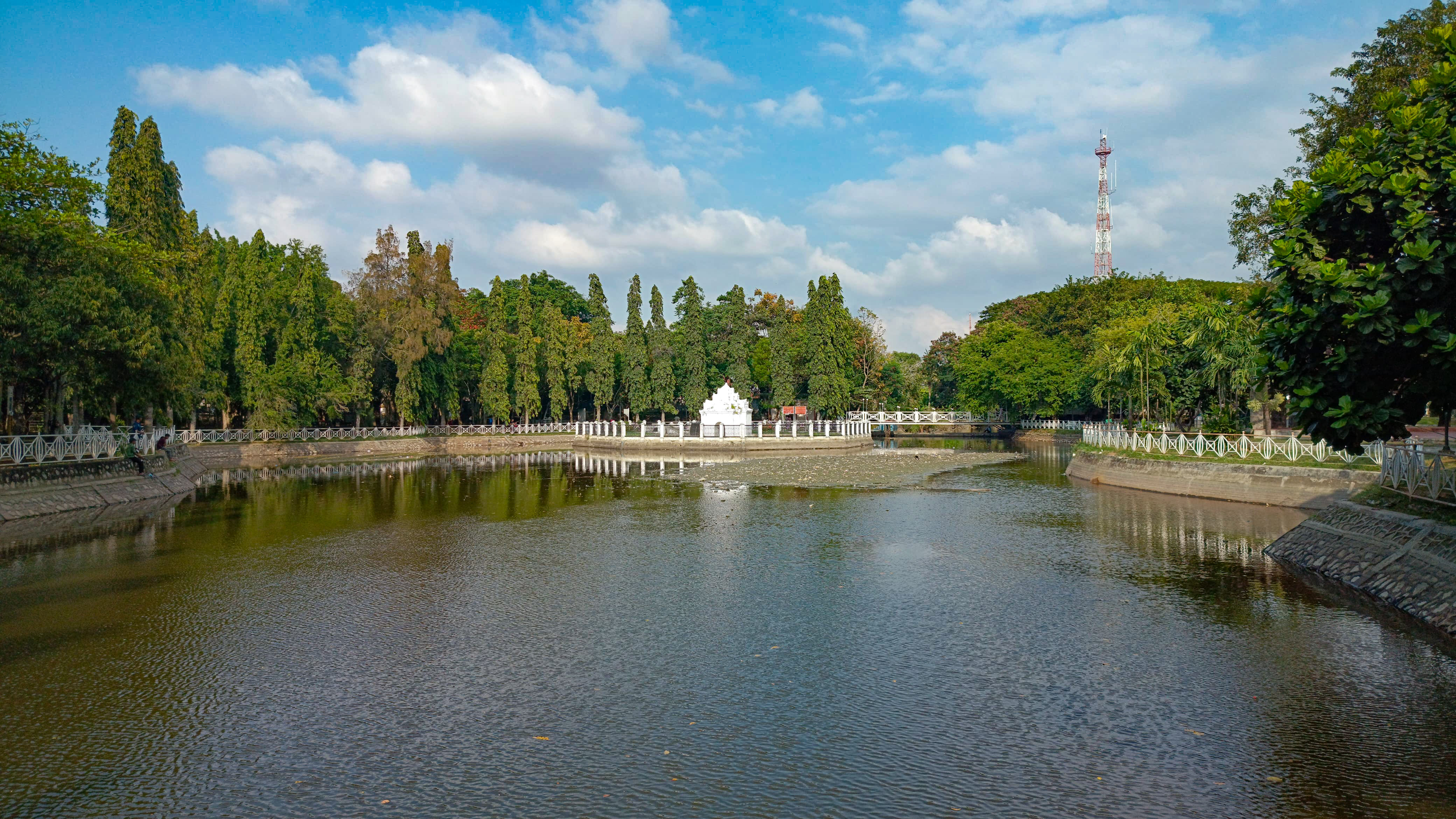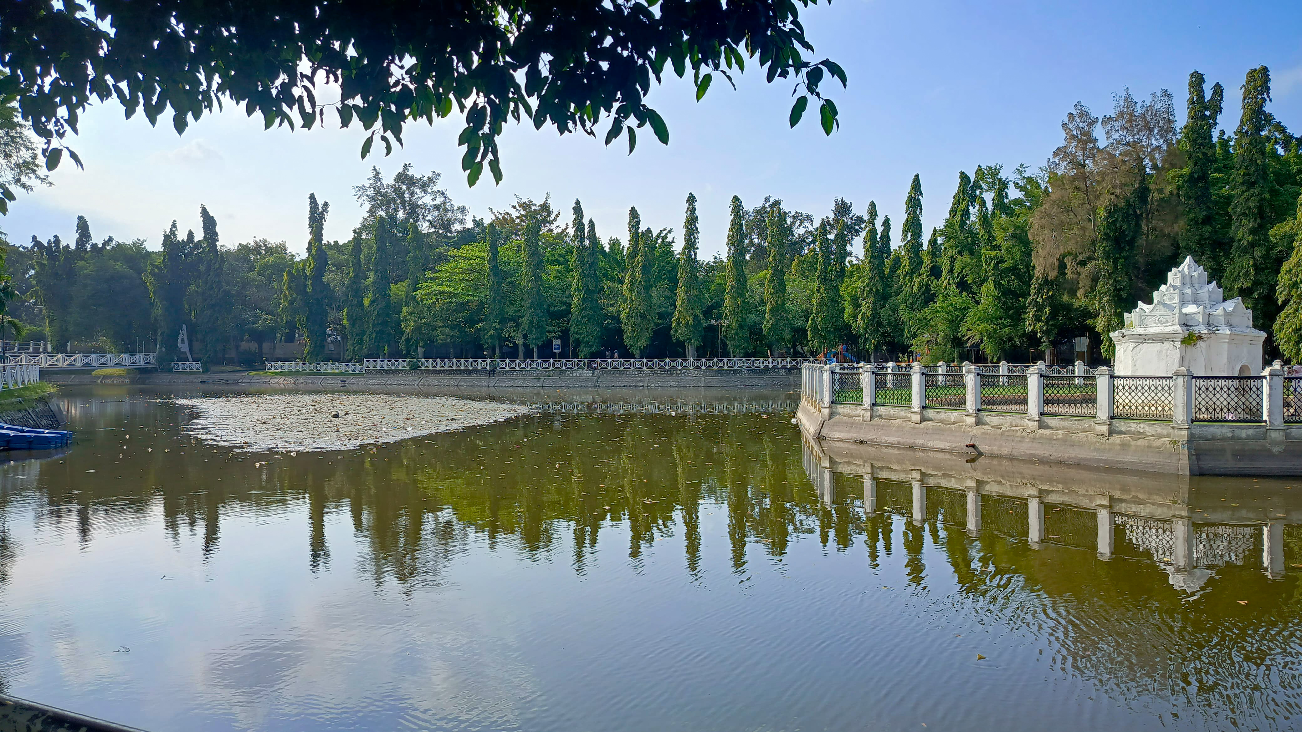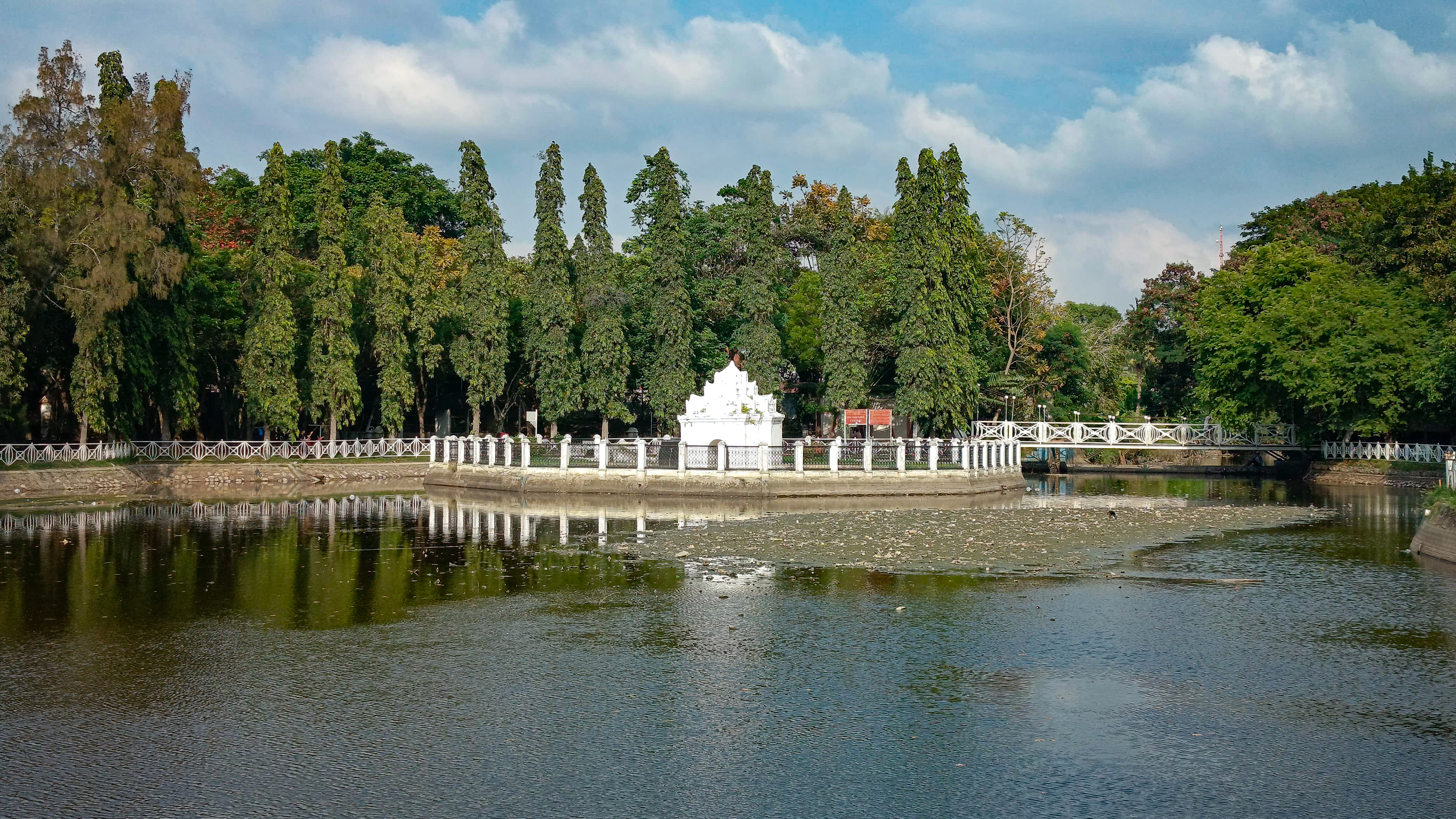 I continued walking and arrived in front of a white bridge which is a connecting bridge to this park, because this park is very large and there is a river in the middle of it so this bridge is a bridge for people who want to cross the river.