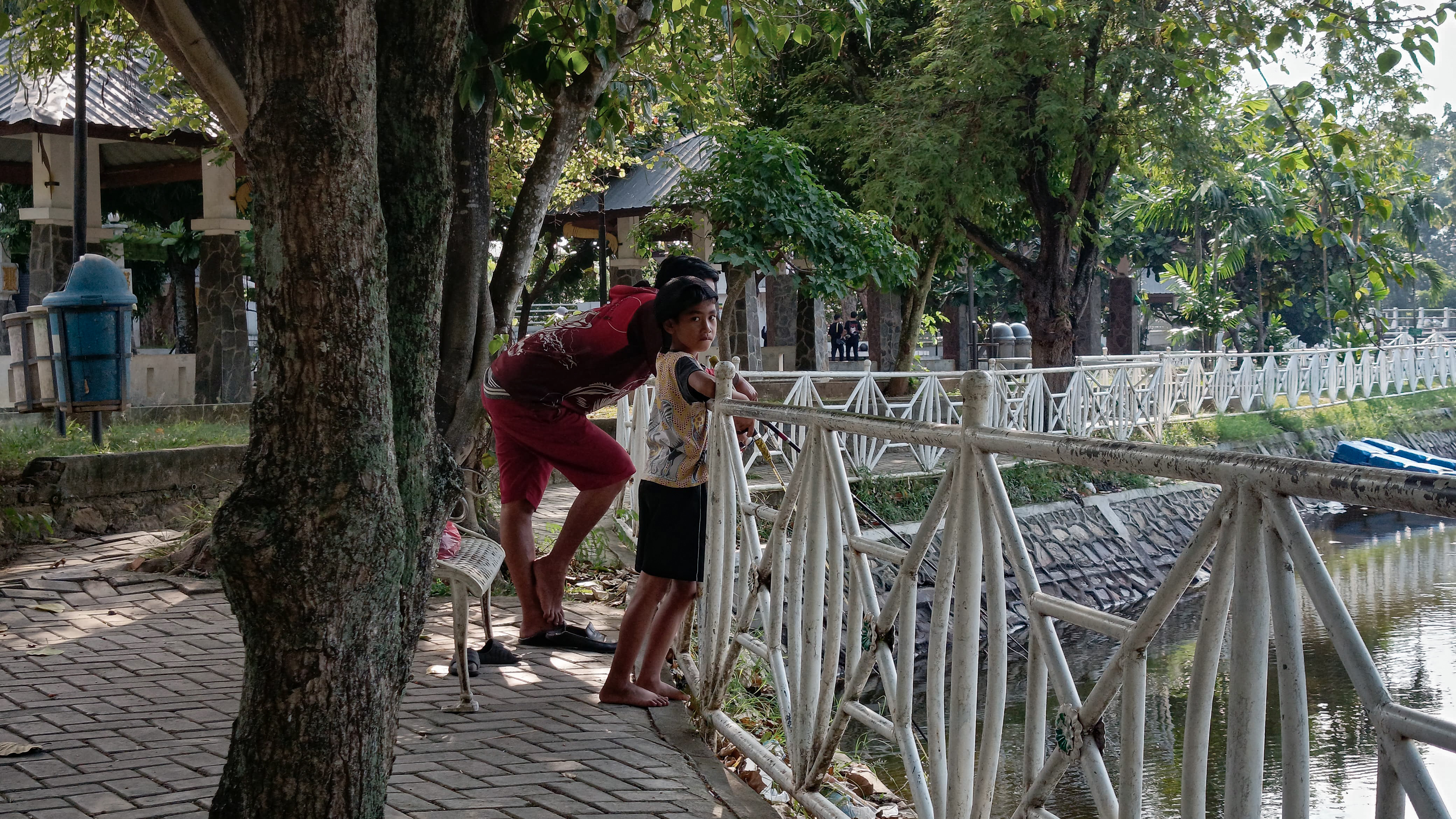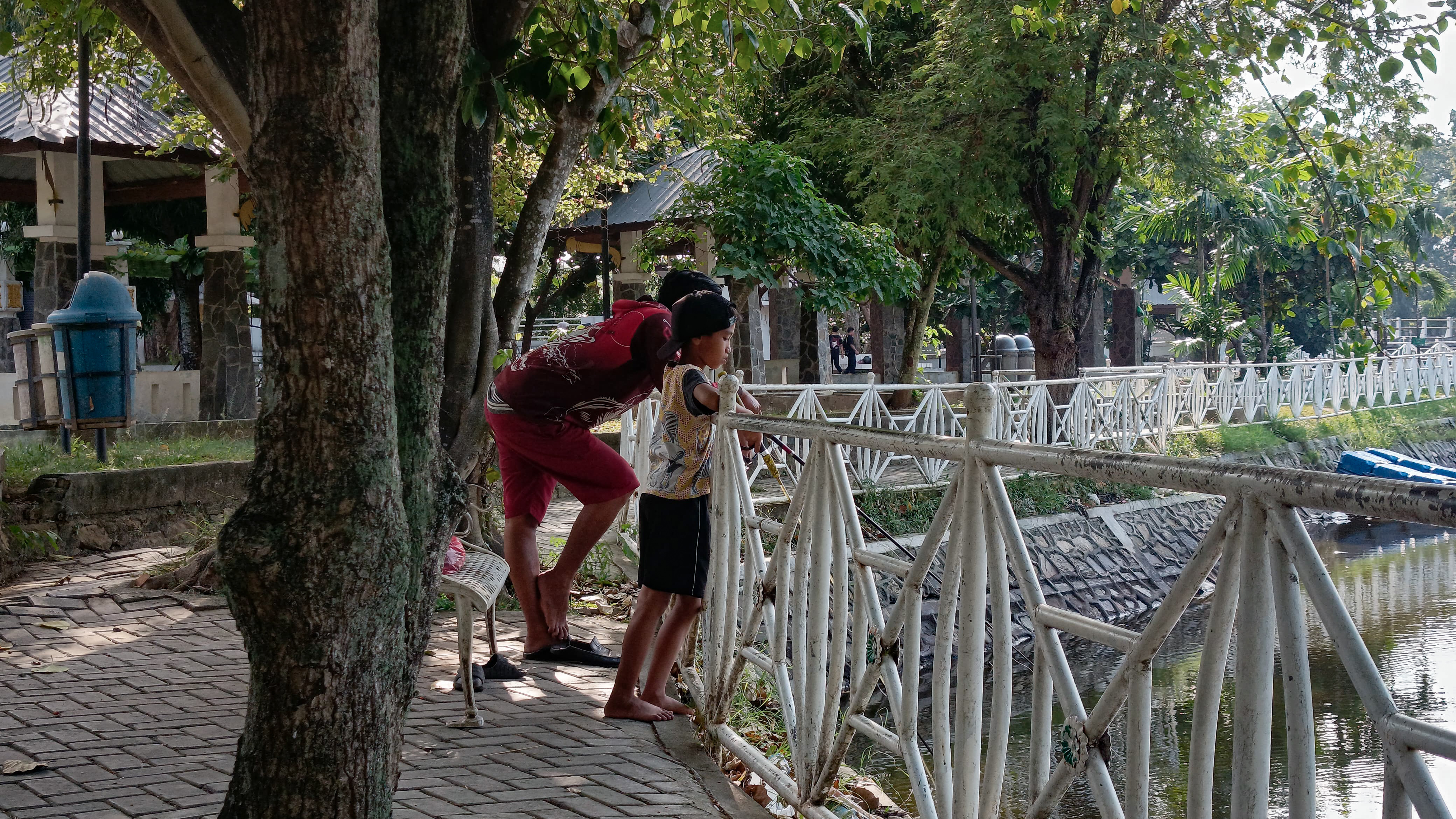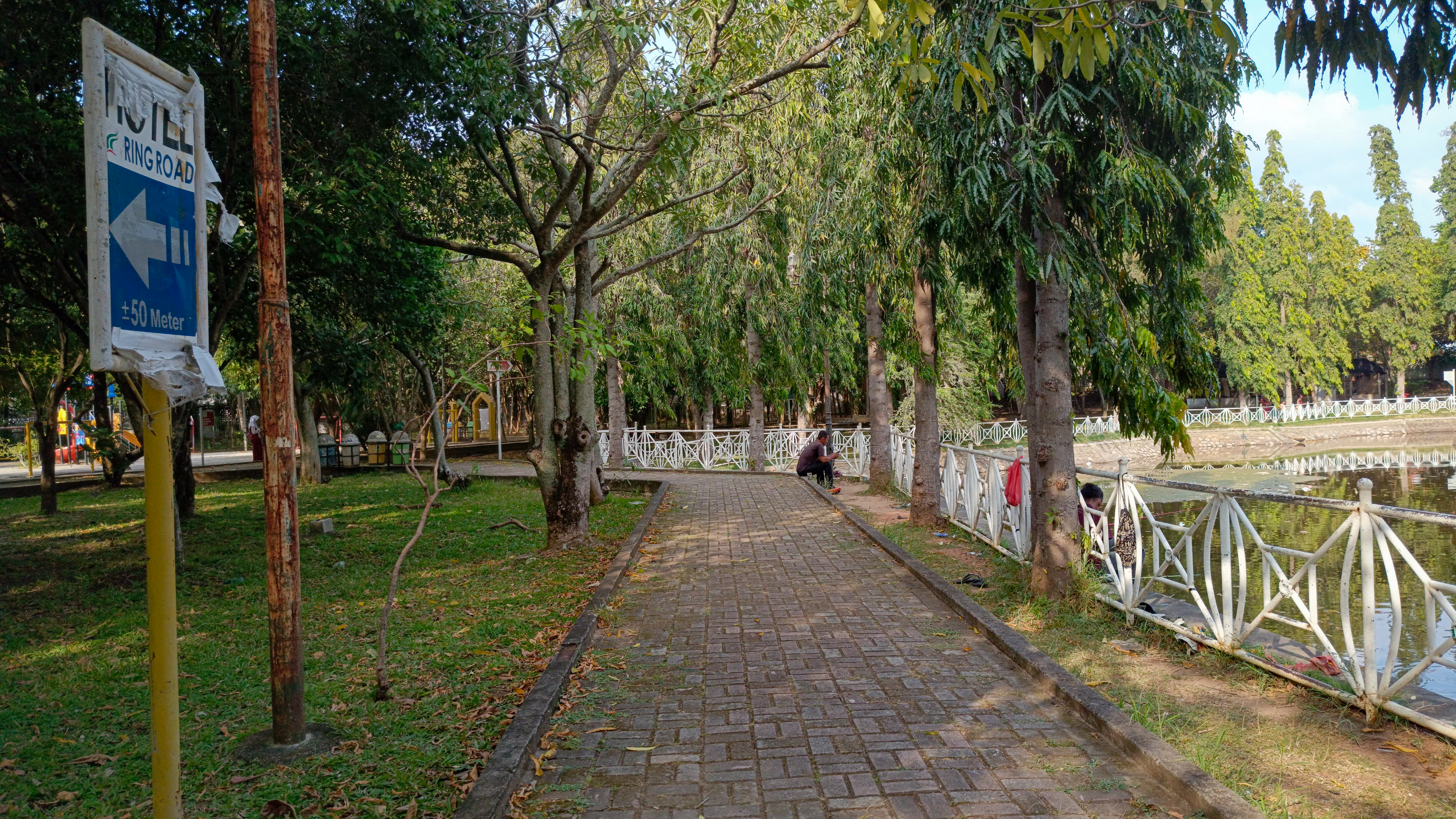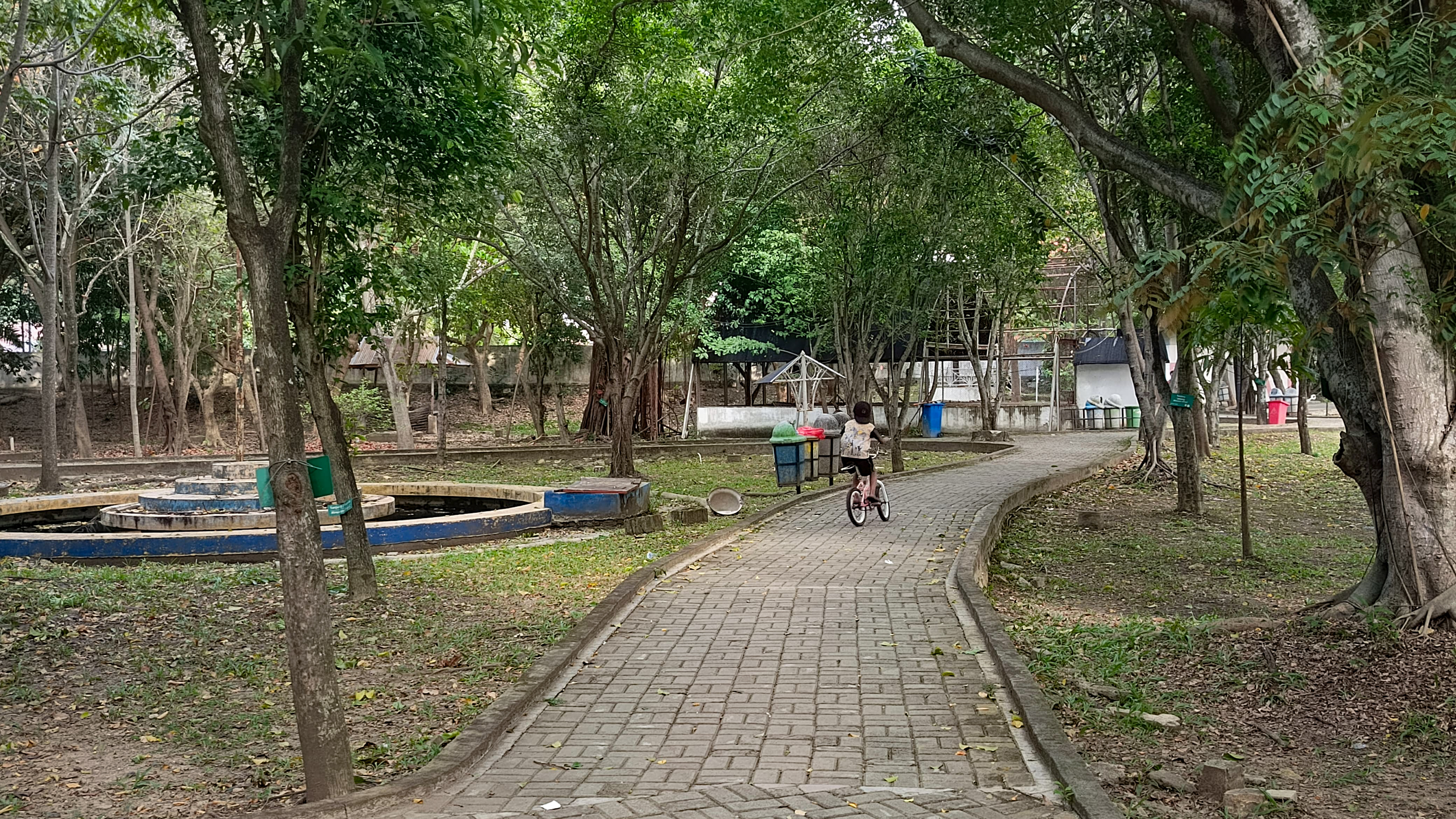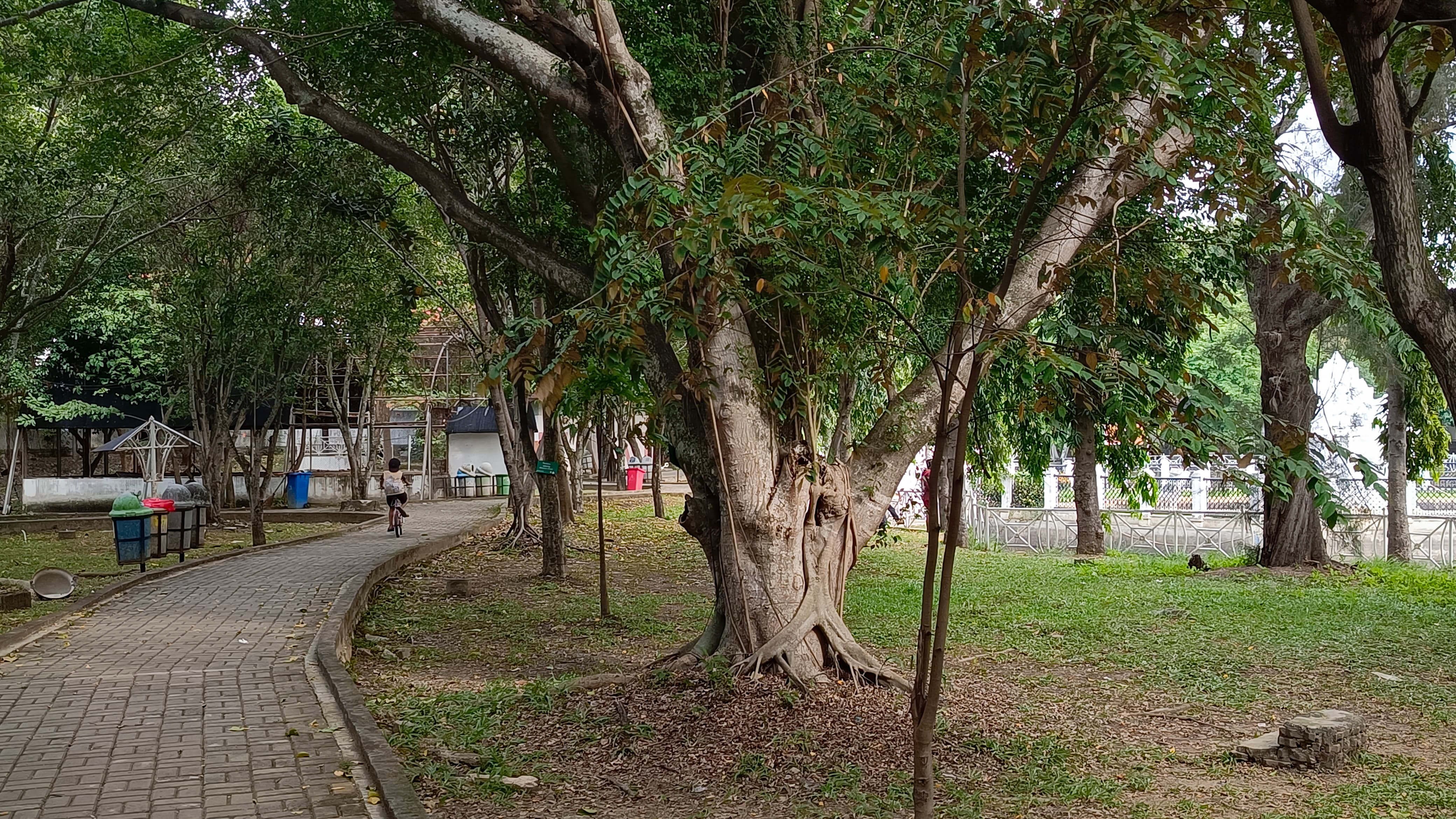 After capturing some of the beauty of the Pintoe Khop monument and the beauty of the river around it, I continued walking and exploring the park, so that I found a branching road again and I could see several activities of visitors in the park, one of which was a small child riding a bicycle at high speed.