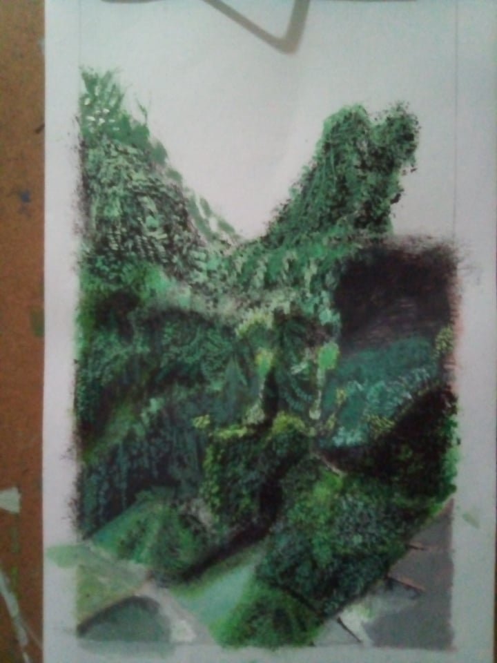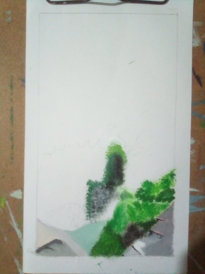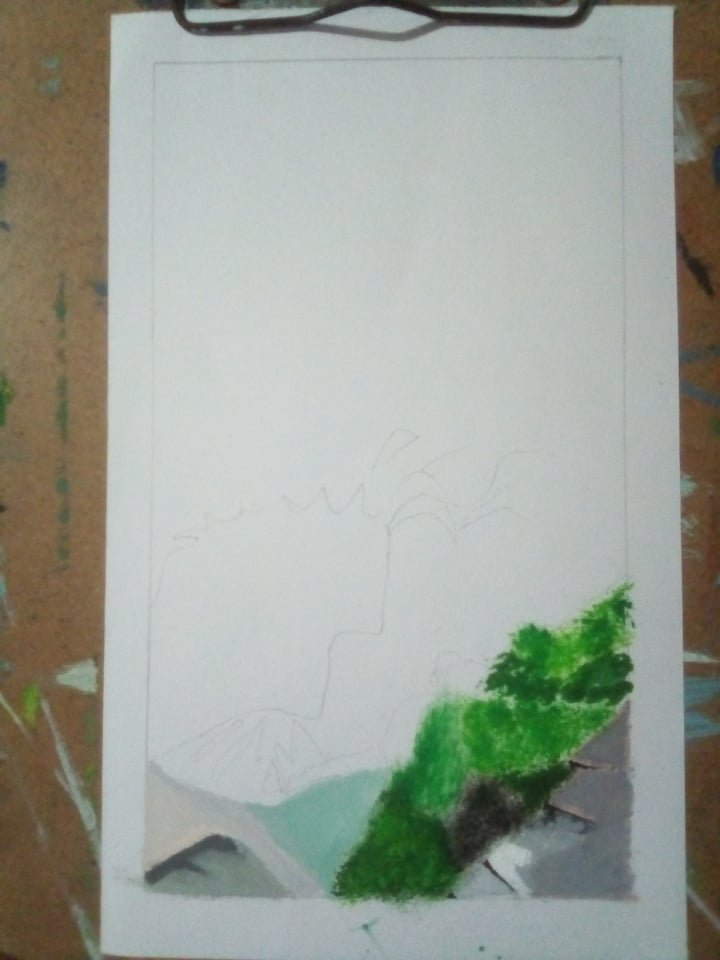 I show that one of cousins and an special photo that I took for drawing. My cousin laughed at me that I could never draw that. I took the challenge and started to draw the scenery.