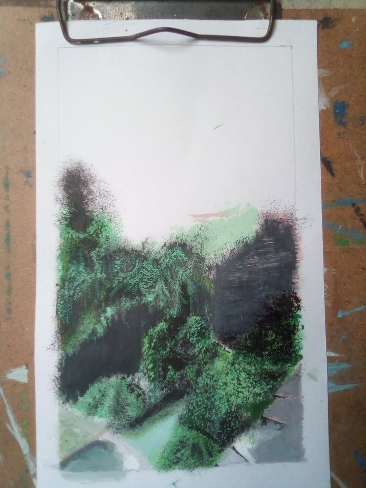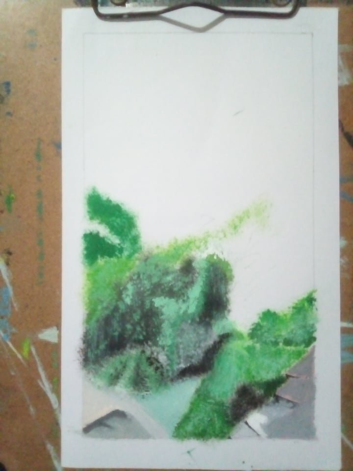 The most difficult part was to draw the bushes top of the building. For more realistic I draw a part of the wall breaks without plaster. It carries the significance of old buildings. After three days hard work I finished the drawing.