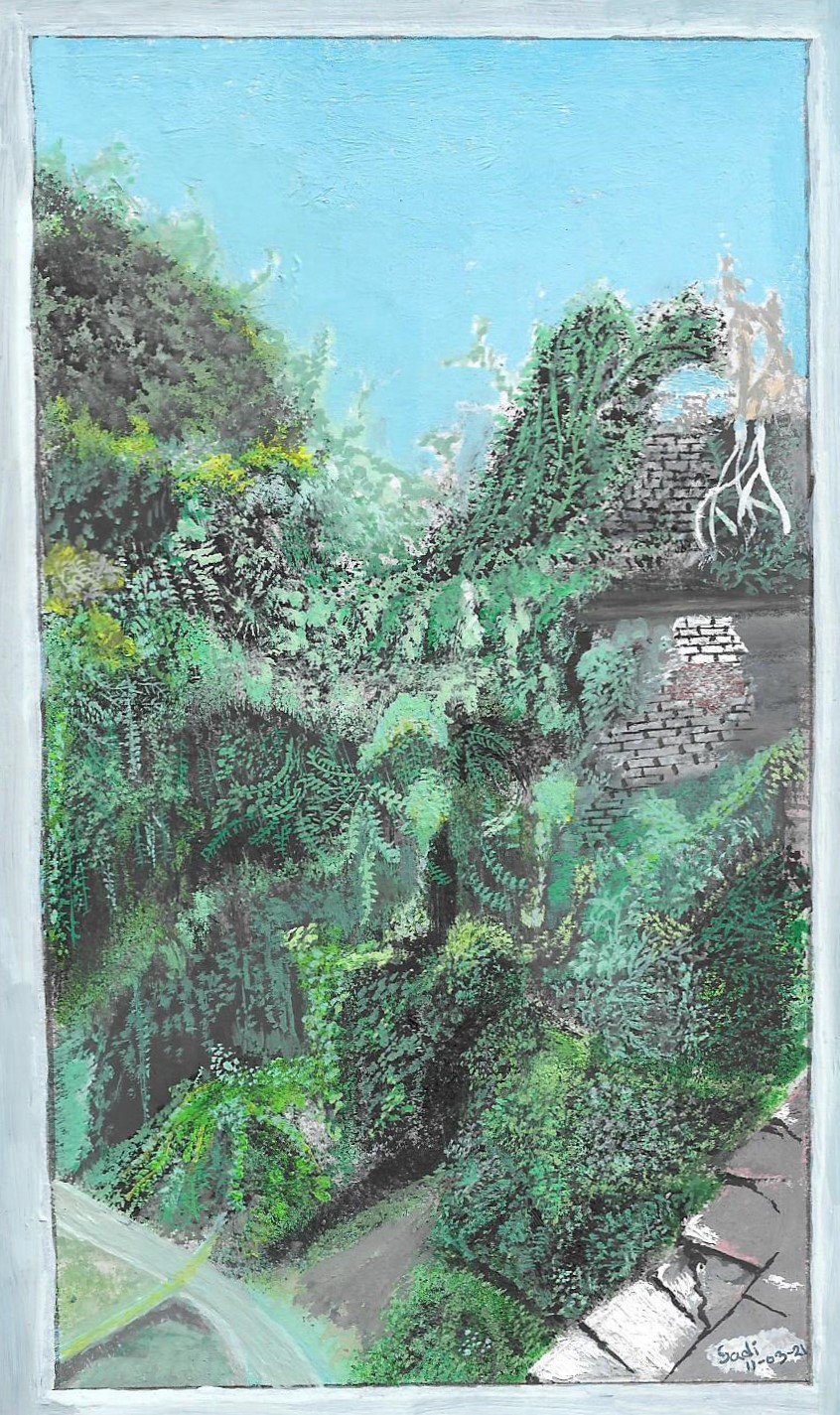 Hi! I draw an old building full of bushes. In 2021 I visited Faridpur District in Bangladesh. There I visited an ancient landlord house called 'Rajbari'. There I took some photos.