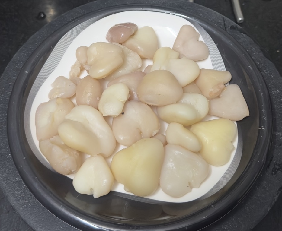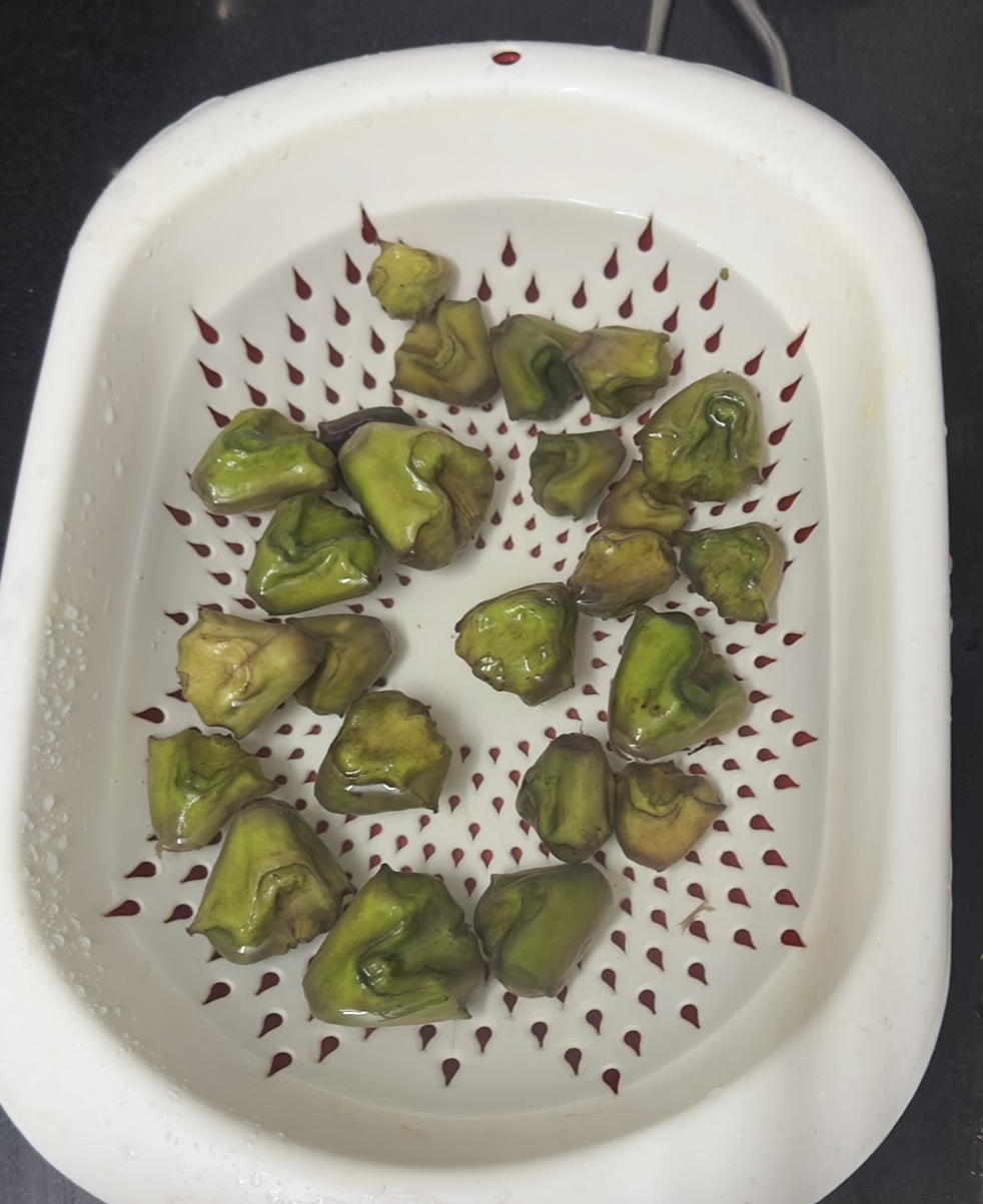 Now, turn off the heat, remove the water chestnuts, peel them, and set them aside.