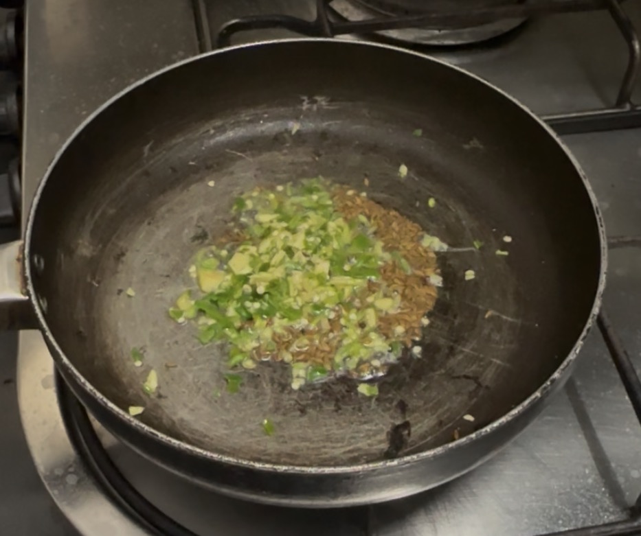 Add the paste of green chilies and ginger.