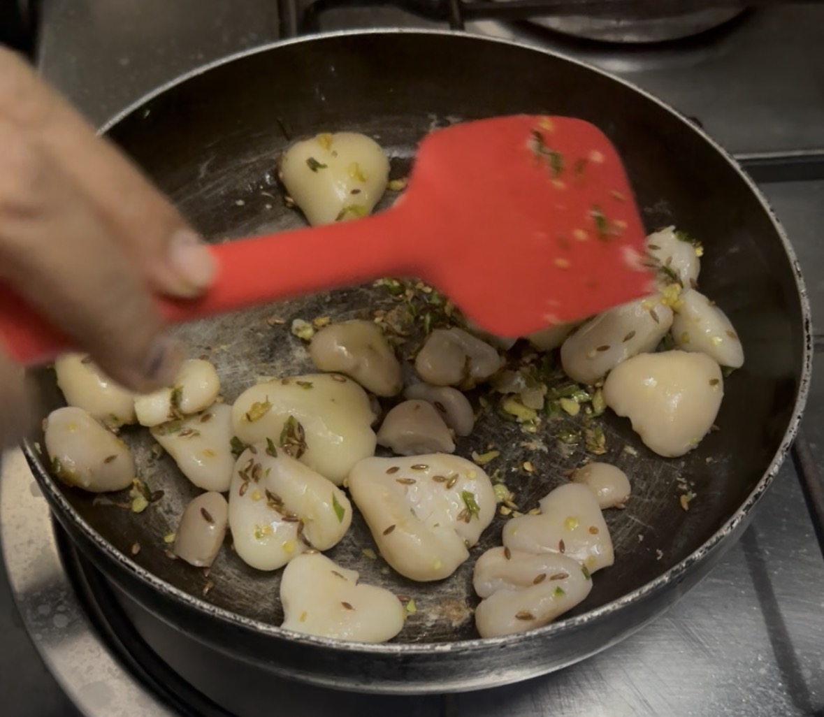 Fry them for 5-6 minutes to make them a little crispy.