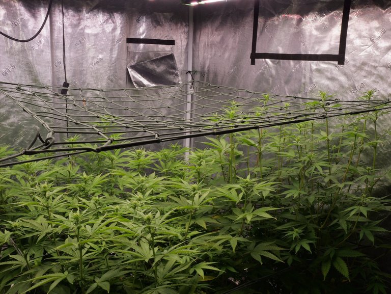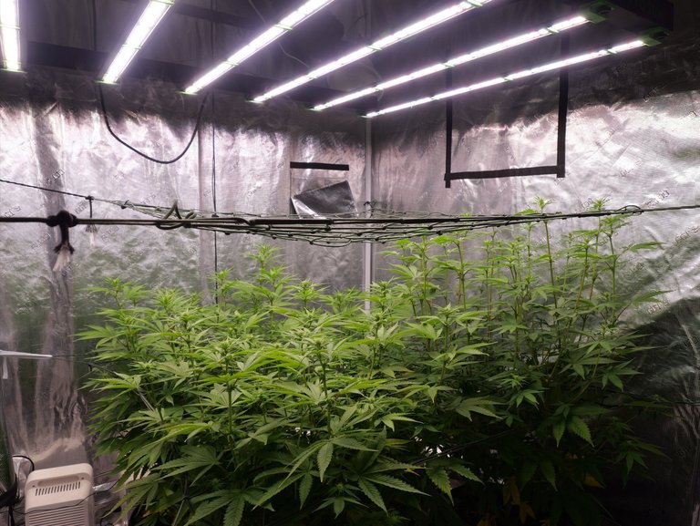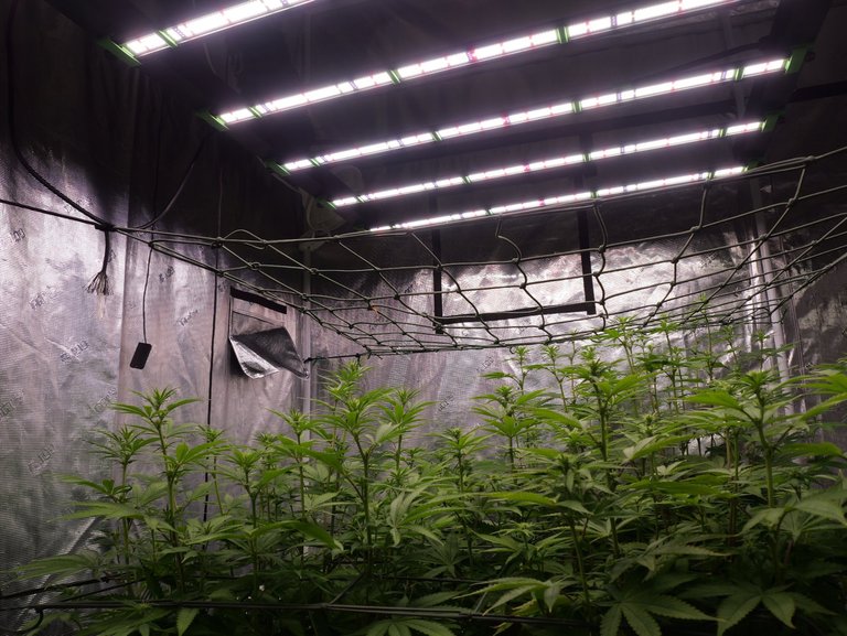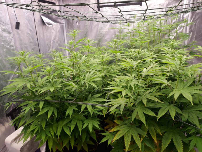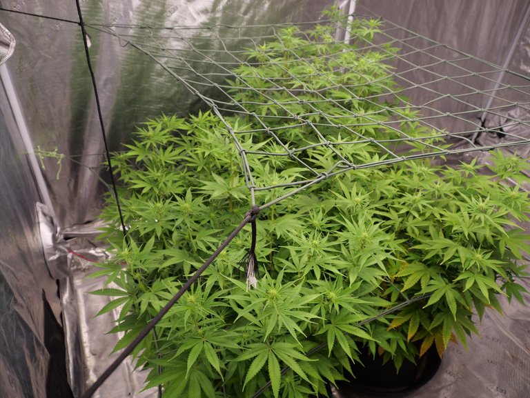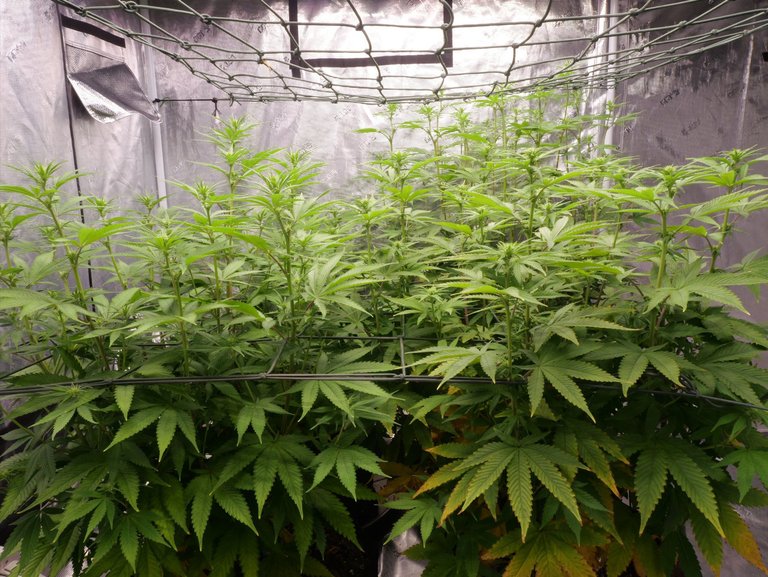 The amount of leaves in this canopy is truly amazing, the plants were topped twice during their vegetative stage giving them many more places to grow new leaf sets.