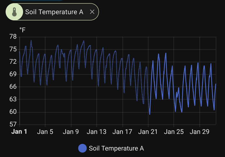 I also have temperature probes that go keep into the seven gallon pots that monitor the current temperature of the soil.