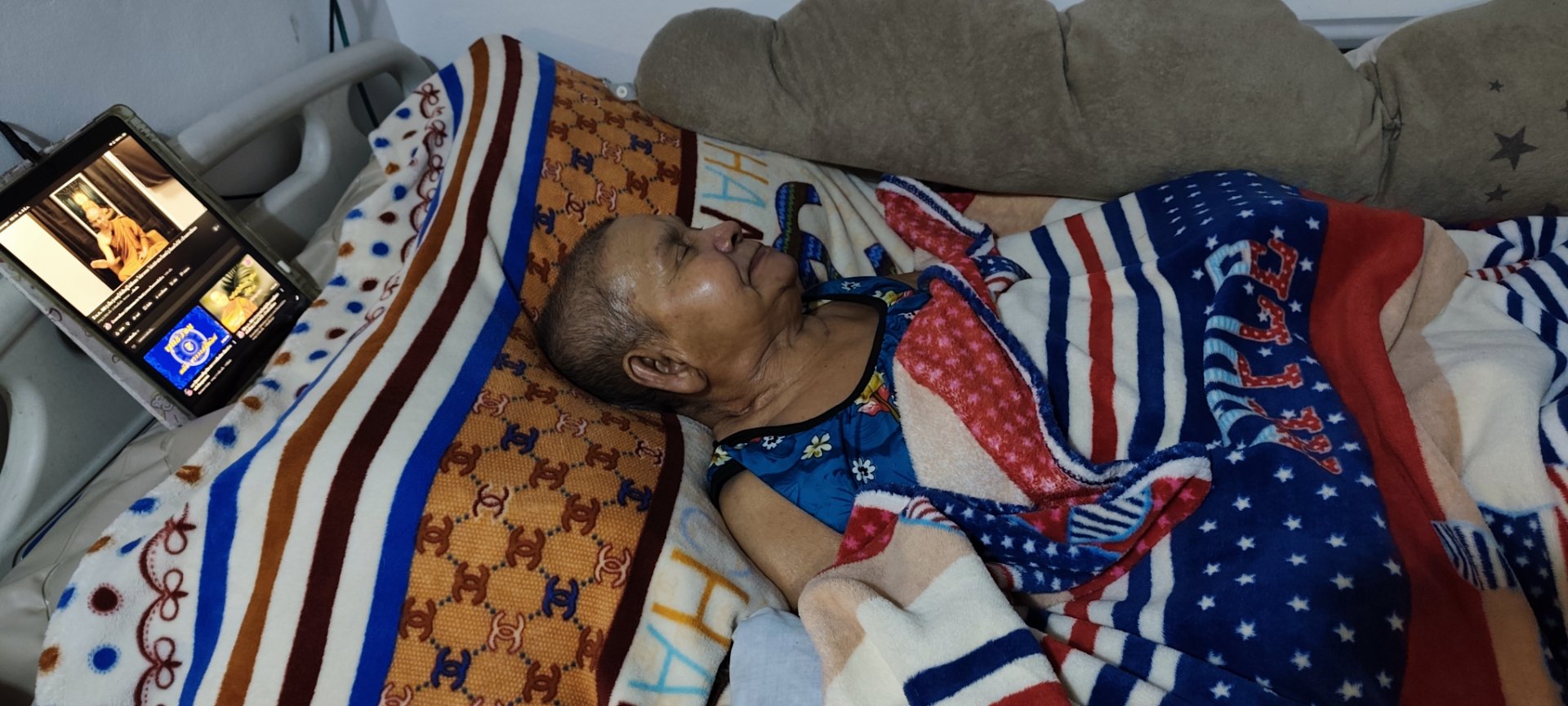 While waiting for the food to cool down, my husband and I skillfully helped bathe my mother-in-law. Even though the weather outside was starting to get hot, she gets cold easily in the mornings like this, so we had to be quick and extra careful. After bathing, I took over, grooming her, applying lotion all over her body, powdering, combing her hair, and dressing her to make her look fresh before feeding her a delicious breakfast followed by milk and warm water to soothe her throat.