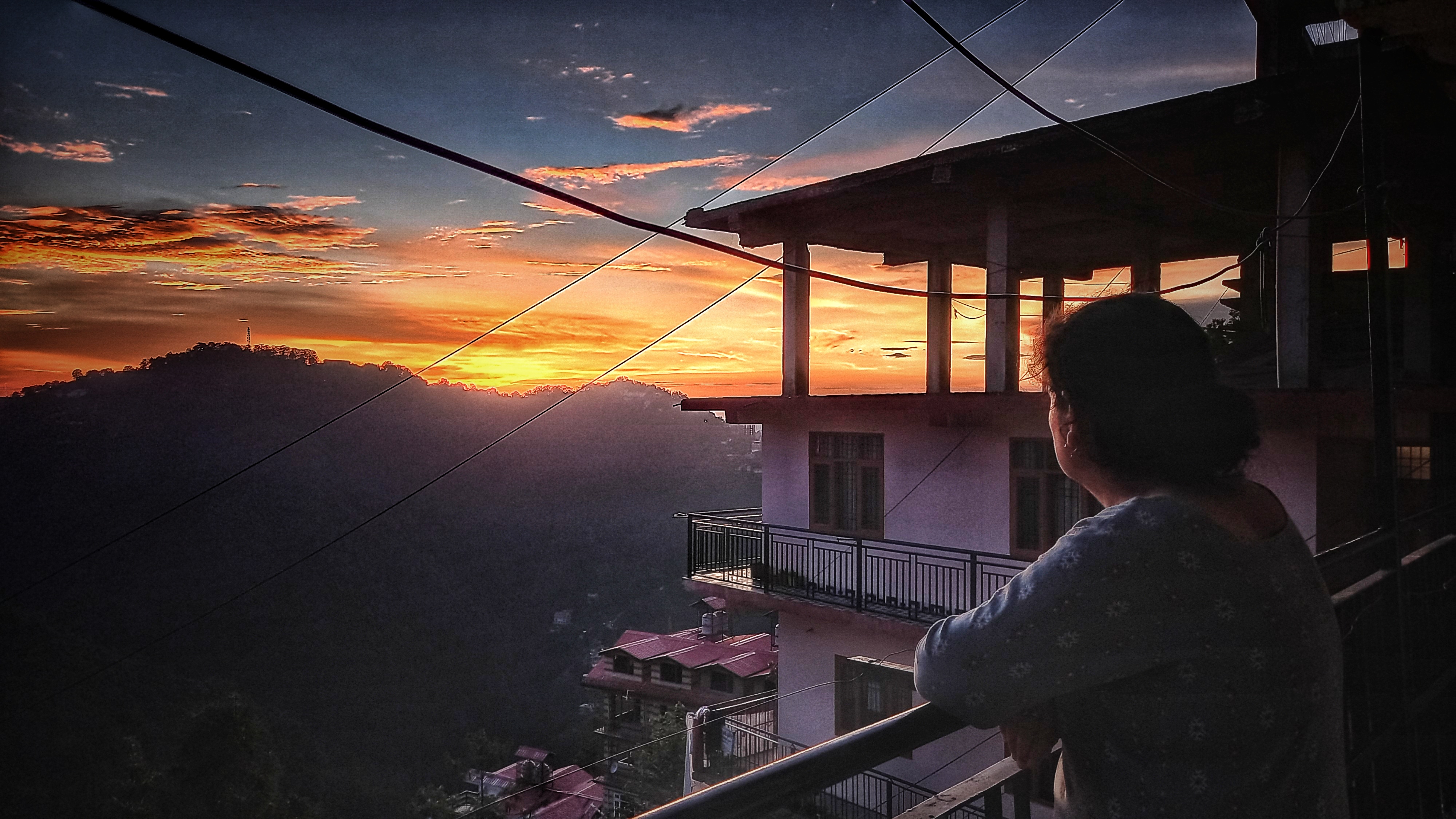 मैं अंदर बैठा था, शाम से ज़्यादा उम्मीद नहीं थी, तभी मेरी नज़र दीवार से परावर्तित एक अजीब सी चमक पर पड़ी। उत्सुकतावश, मैं बालकनी में गया, और वहाँ... पहाड़ियों के पार फैला एक अद्भुत, खुला सूर्यास्त था। मेरी माँ भी बाहर आ गईं। हम दोनों बालकनी की रेलिंग से टिककर बैठ गए, ज़्यादा बात नहीं की, बस चुपचाप नज़ारा देखते रहे।