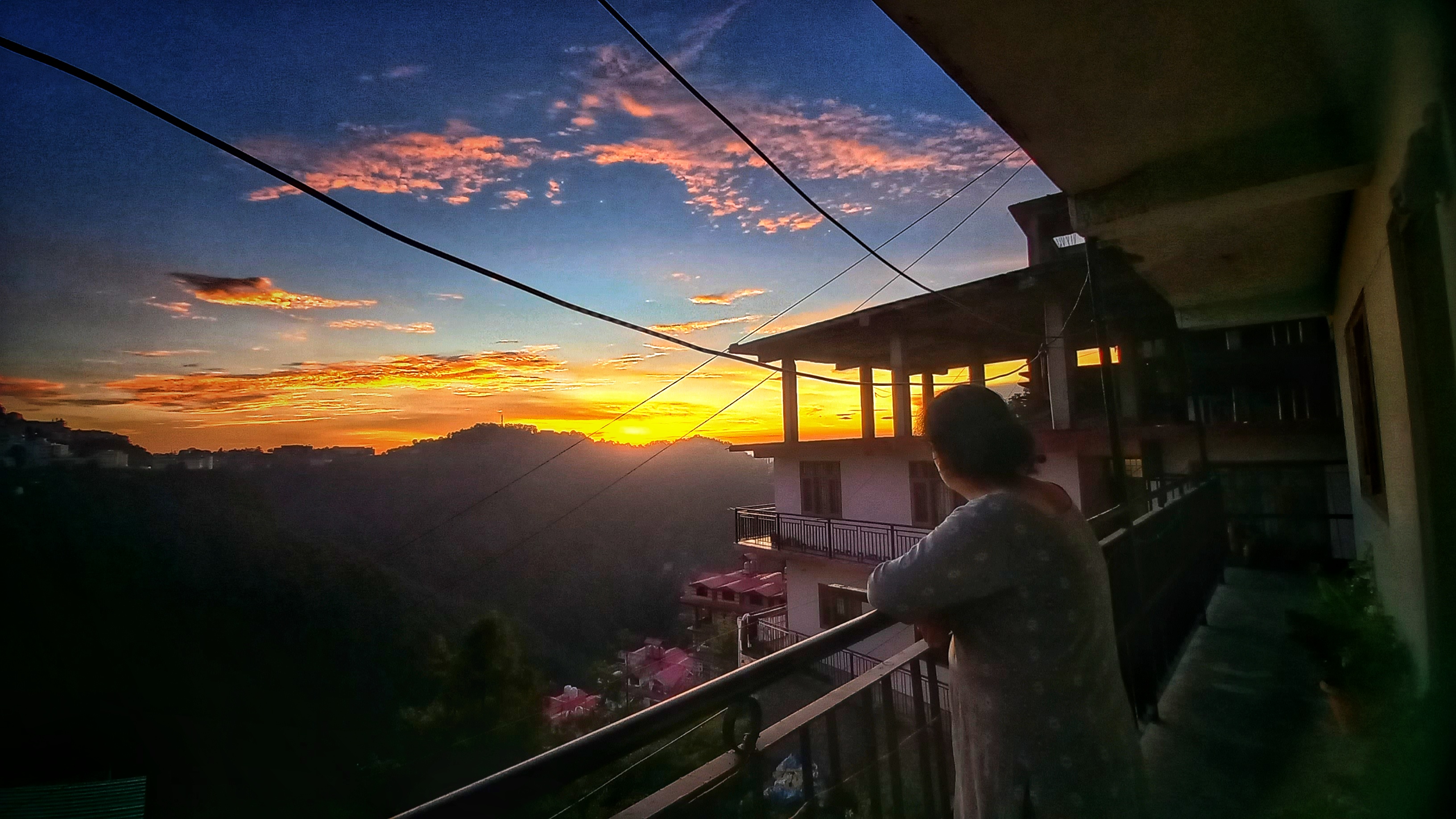 I was just sitting inside, not really expecting much from the evening, when I noticed this strange glow reflecting off the wall. Curious, I walked out to the balcony, and there it was..this stunning, wide-open sunset stretching across the hills.My mom came out too. We both ended up leaning against the balcony railing, not talking much, just quietly looking at the view.