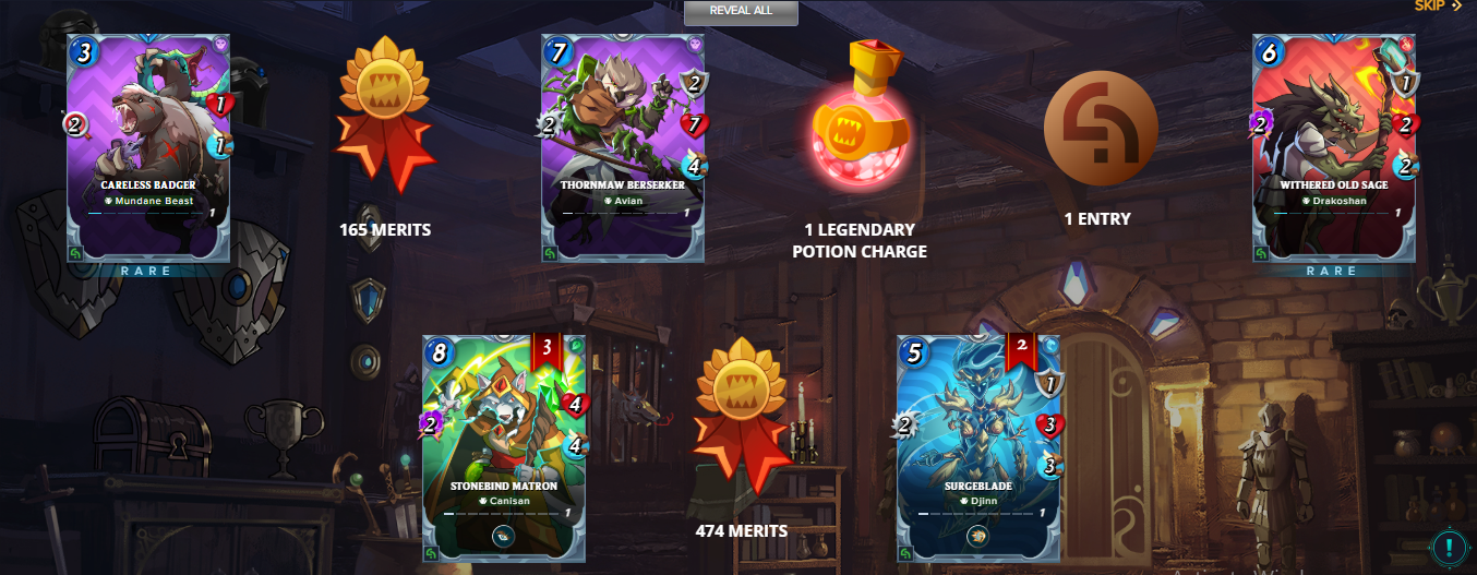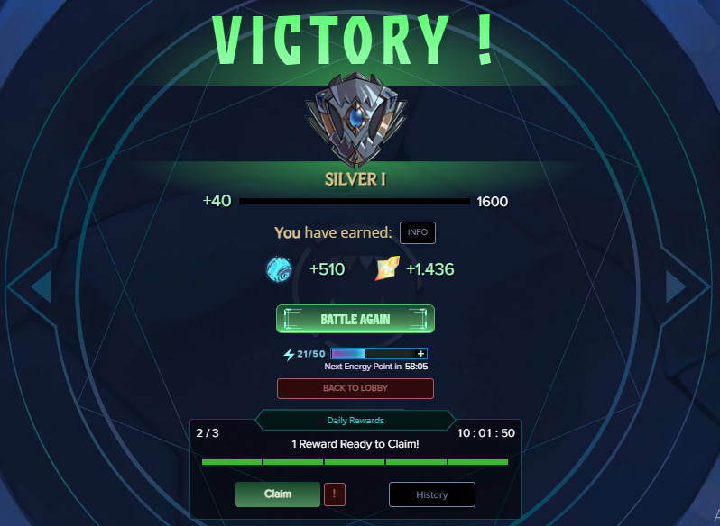 All in all, this was an excellent season, and I would especially like to draw the attention of new players to the screenshot above, as it clearly demonstrates how your in-game rewards improve as you participate in higher-ranked battles. I recall that in the Bronze tier, I never received more than 150–200 Glint and 0.5 SPS. While these rewards do depend on the level, rarity, and foil type of the cards you use, it is generally safe to assume that—since battles become increasingly difficult at higher ranks—you wouldn't even be able to reach those levels without a superior set of cards. However, if you do manage to reach those ranks, your in-game rewards will increase; you can then reinvest these rewards back into the game to upgrade your deck, stake your SPS tokens to earn the best APR, or simply sell them on the open market. The main takeaway is this: the higher the level of cards you use to compete in high-tier battles, the more your rewards will improve. Currently, upon reaching Silver I, I received a reward of 500 Glint and approximately 1.5 SPS; just imagine how substantial these rewards would be when playing in Silver I—and subsequently in the Gold tier!💰