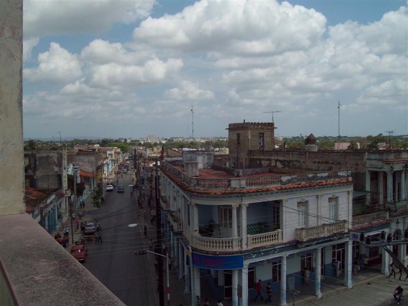 The sky, full of soft clouds, stretches like an immense roof over the city. It gives the feeling that everything moves at a different rhythm here: cars pass slowly, people walk without hurry, and the wind travels through the streets carrying the echo of everyday life.