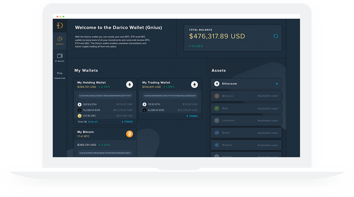Darico's integrated solution, you can monitor, trade, invest and spend your crypto currency assets in one internal Ecosystem. This platform is designed to enhance the ability of ordinary users. This gives you the means to control all your savings, trades, and investments with confidence. Owners of Darico Coin will have special access to the entire Darico Ecosystem, which includes liquidity reserves, index funds, terminals, wallets, debit cards and exchange offices. This platform will provide clients with crypto currency for the necessary investments and spend their own funds. The idea of client interaction with crypto currency will also change.
